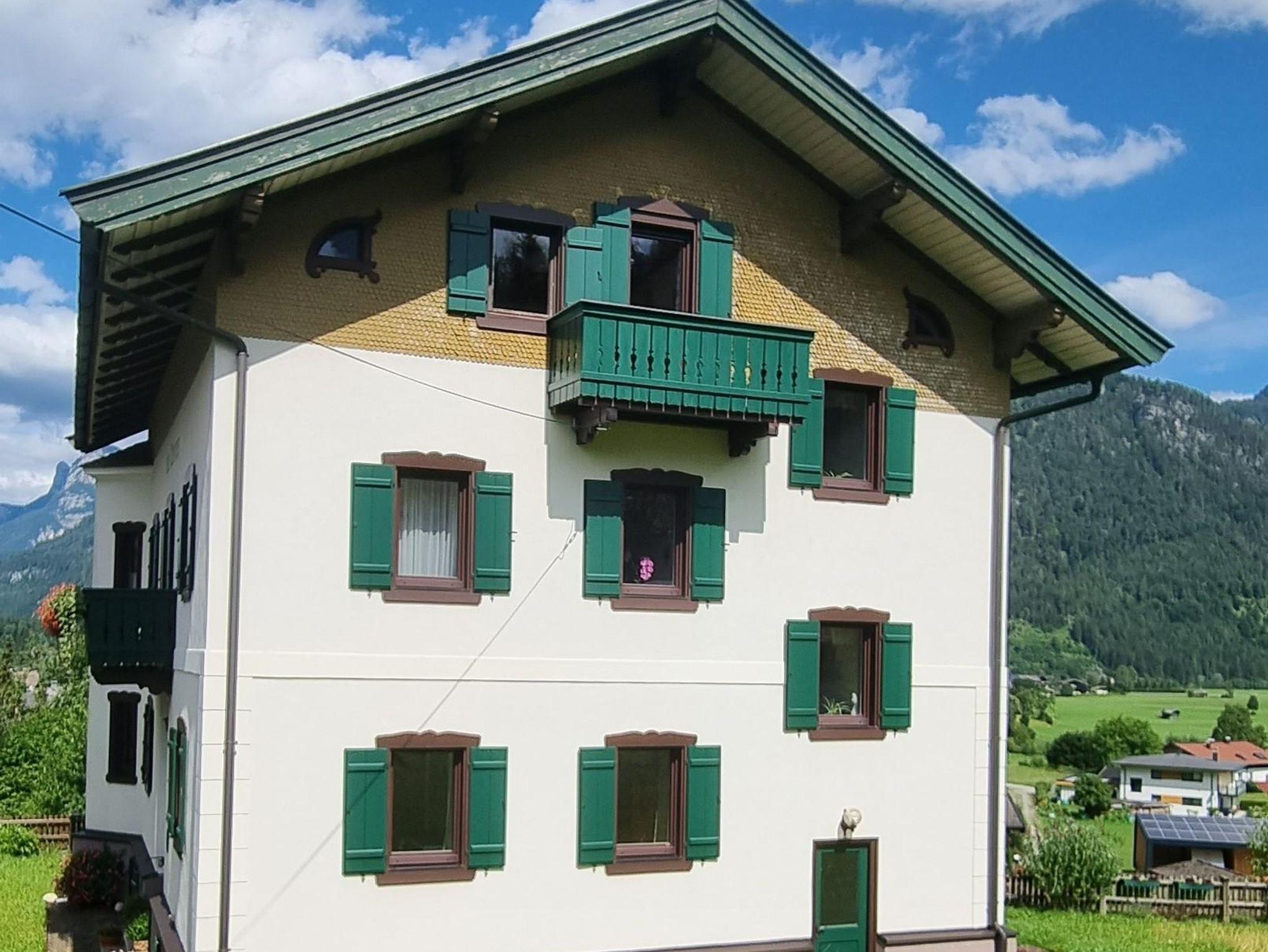 Die FeWo befindet sich im 2. Stock des Hauses Alpenrose. Das Haus liegt auf einer kleinen Anhöhe, direkt am Waldrand im Ortsteil Bachwinkel, mit Blick auf den Ort und die umliegenden Berge. Zum Ortskern (Bergbahn) sind es ca. 10 Geh-Minuten. Bis zum Freibad sind es ca. 5 Geh-Minuten.