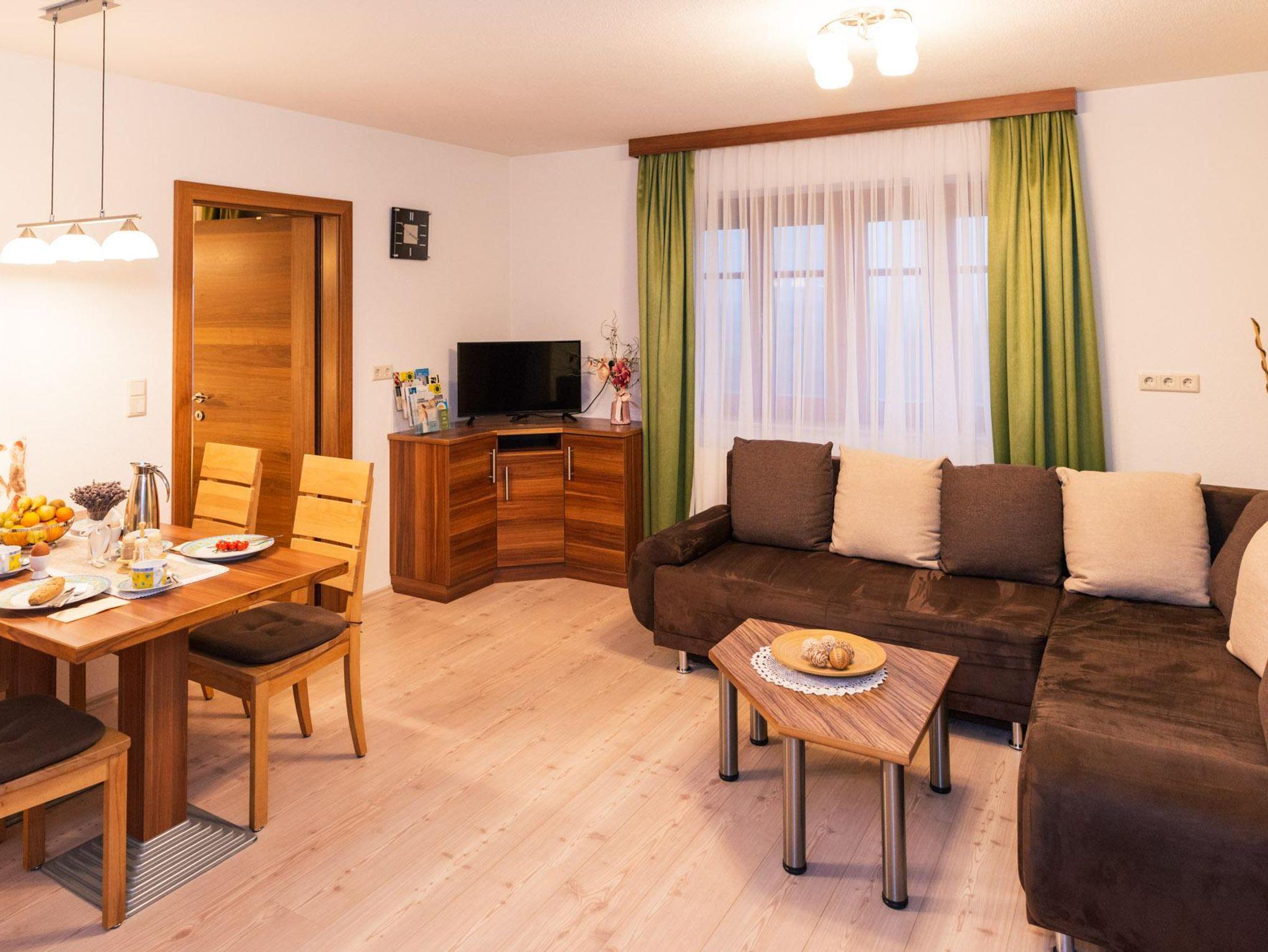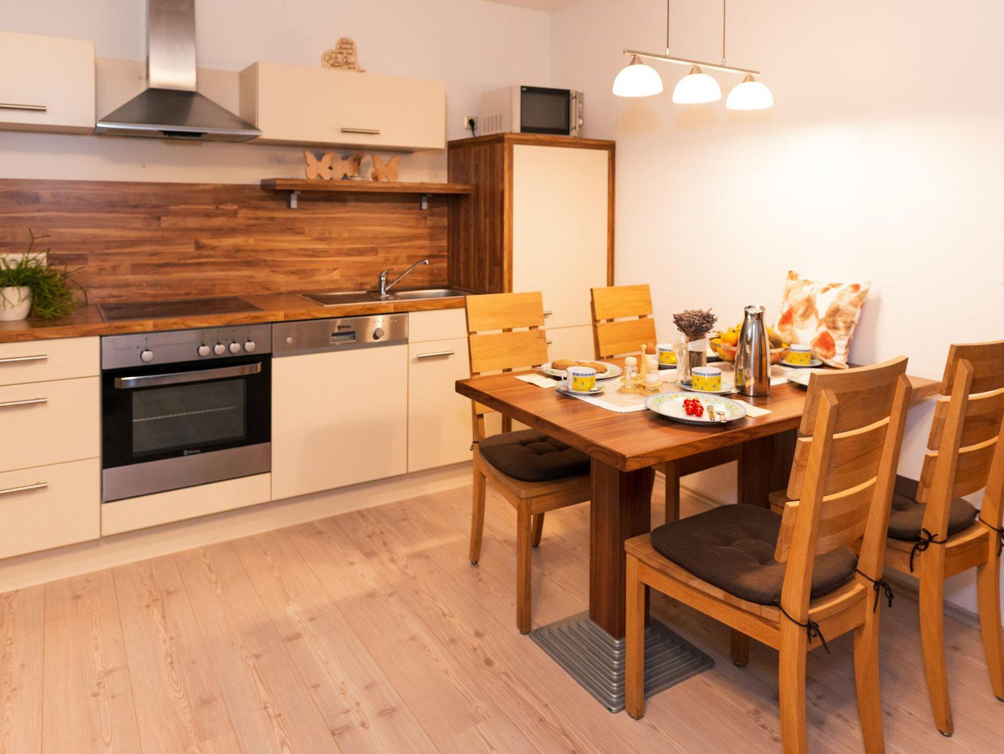 Die gemütliche Ferienwohnung bietet Ihnen auf 50 m² die schönste Möglichkeit, hier zu wohnen! Sie ist mit Massivholzmöbeln eingerichtet und mit eigenem Vorraum, Bad mit Dusche & WC, einer Wohnküche mit SAT-TV, WLAN und einer kompletten Küchenzeile mit Kühlschrank inkl. Gefrierfach, Mikrowelle und Geschirrspüler ausgestattet. Das ausziehbare Sofa bietet zusätzlichen Platz zum Schlafen für 2 Personen.