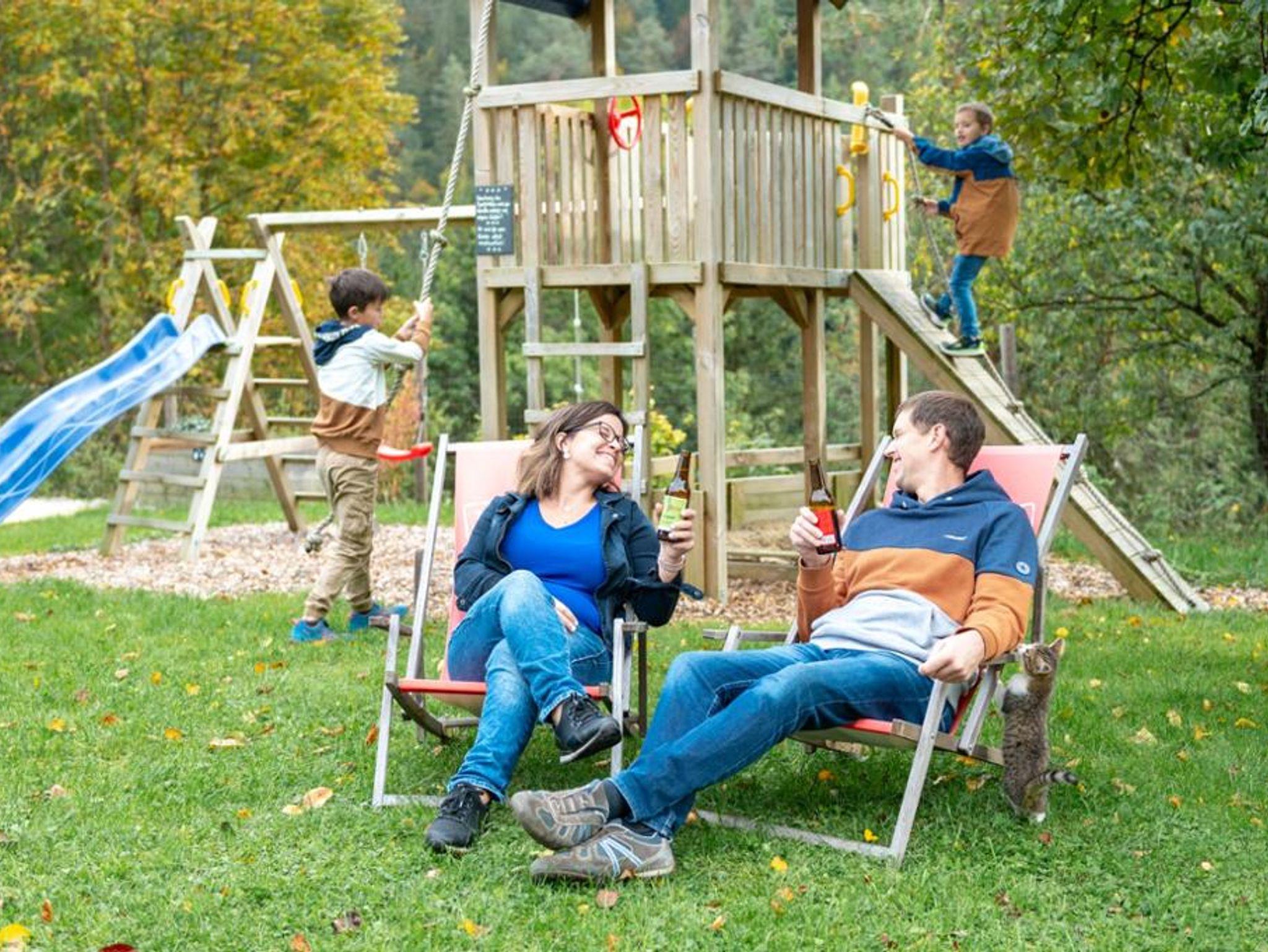 Eigener Gästegarten mit überdachter Sitzmöglichkeit, für unsere kleinen Gäste gibt es außerdem einen Spielplatz im Freien mit Schaukeln, großem Trampolin, Kinderfahrzeugen, Sandkiste, Parkplatz vorm Haus,...
