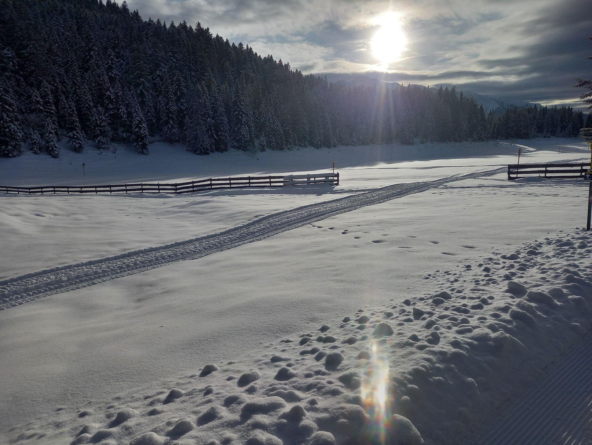 Unser Haus liegt eingebettet zwischen Wiesen und Lärchenwälder. Fernab von Straßenverkehr und Lärm, können Sie die Ruhe genießen.