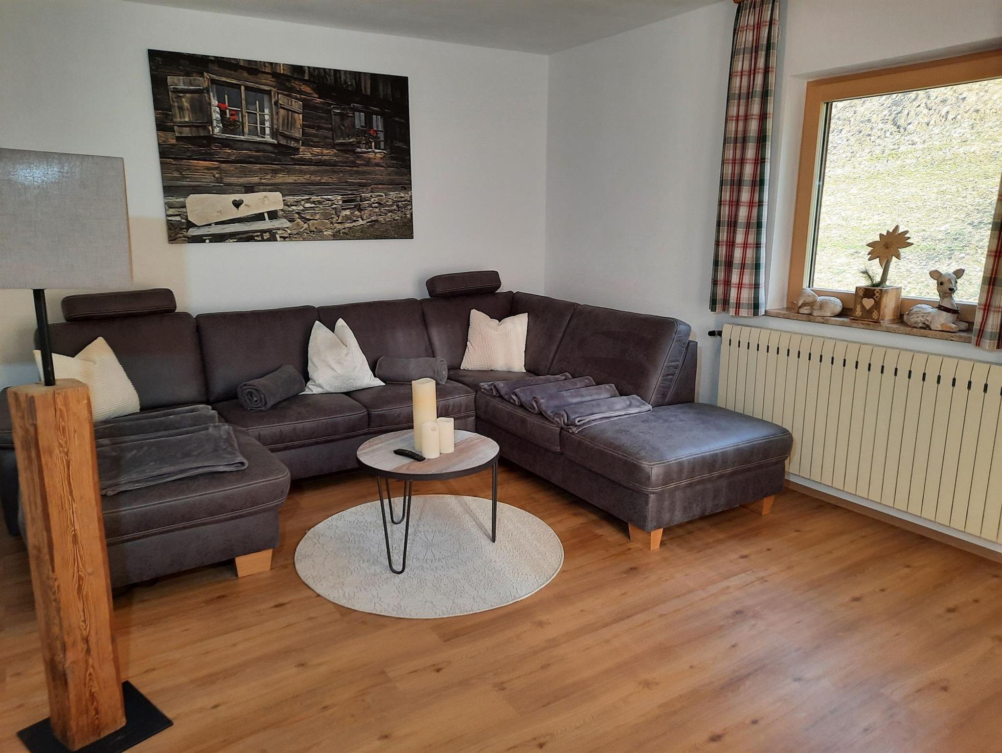 Wohnzimmer mit Smart TV und großer Couch