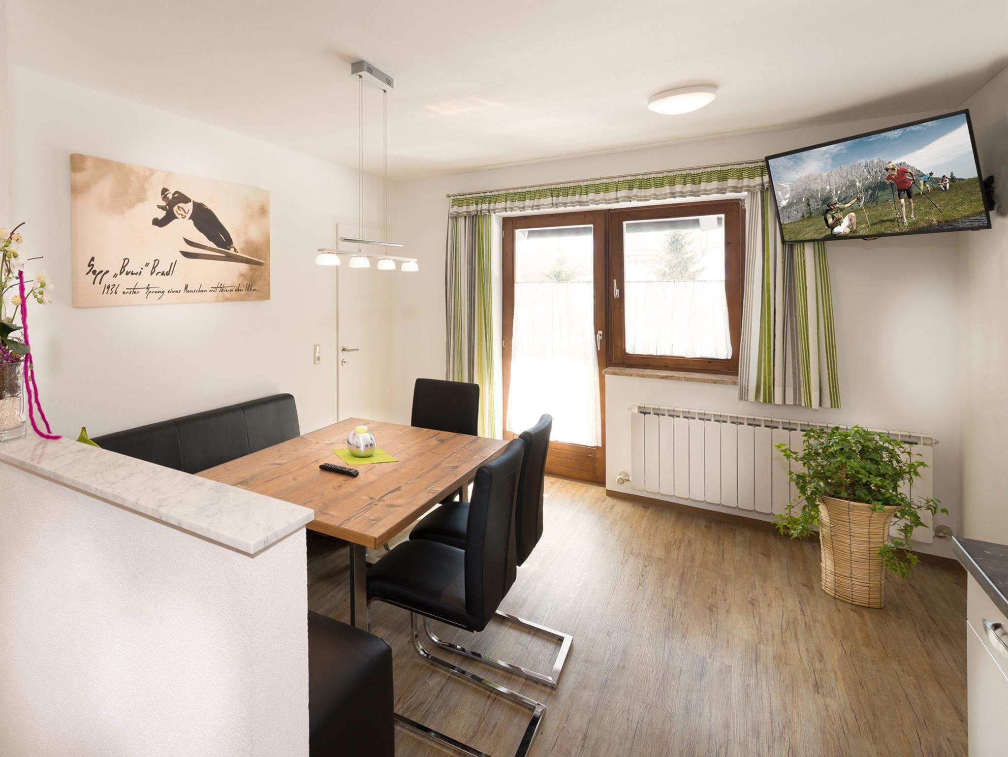 Unser Appartement2 für 4 bis 6 Personen verfügt über ein Schlafzimmer, Wohnzimmer, Küche mit Sitzecke, Bad & Duche, seperates WC, sowie eine angrenzendes Doppelzimmer mit Dusche & WC und einen großen Balkon mit Blick auf den Hochkönig.
