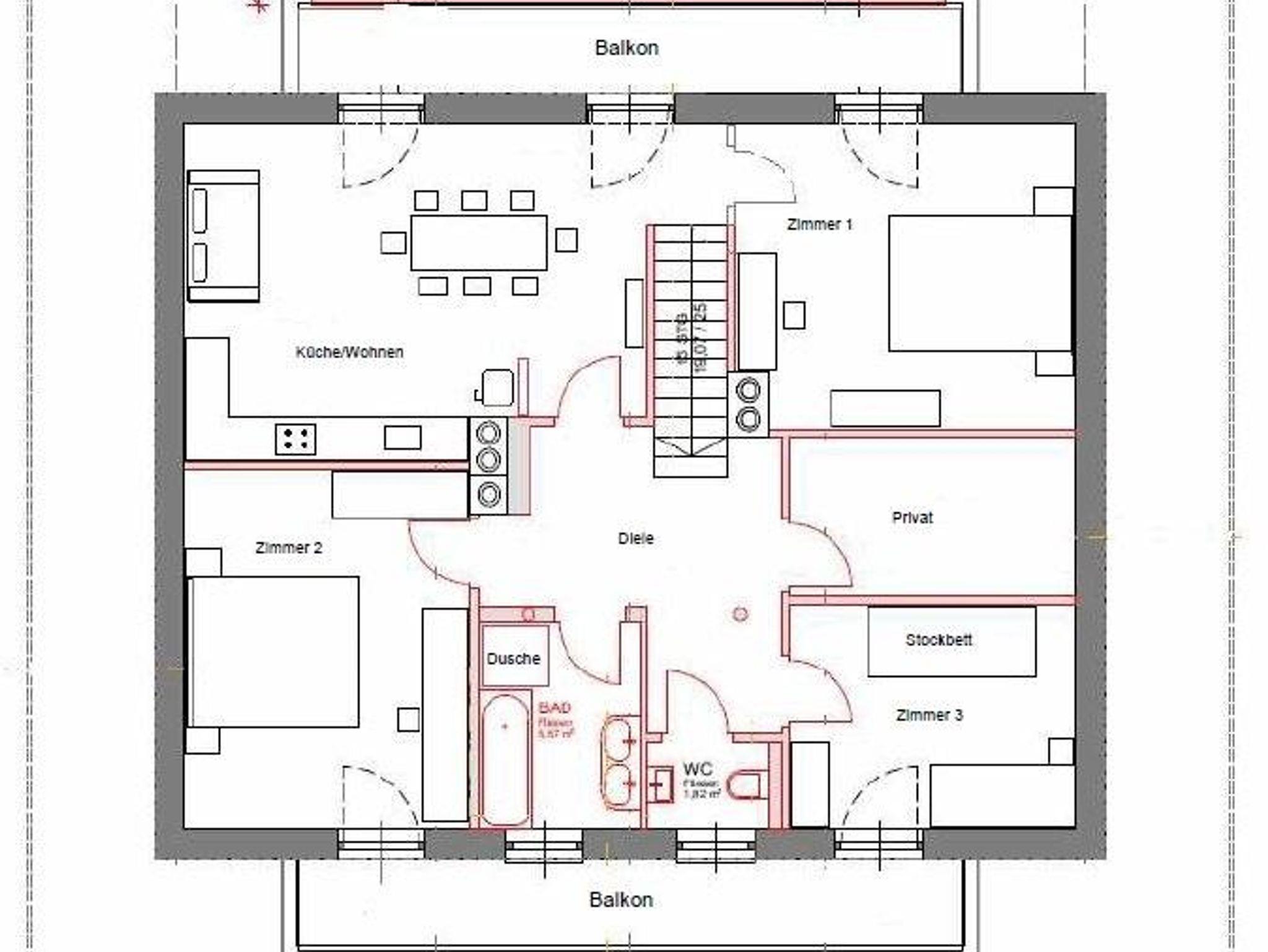 Im Haus befindet sich ein neu renoviertes Appartment mit seperatem Aufgang. Das Appartement mit Echtholzboden ist 92m² groß und bietet Platz für 2- 7 Personen. Es beinhaltet zwei getrennte Schlafzimmer mit einem Doppelbett und ein Zimmer mit einem Einzelbett und einem Stockbett. Zudem gibt es eine große geräumige Wohnküche mit SAT- TV und einer gemütlichen Couch. Bad und WC sind getrennt.