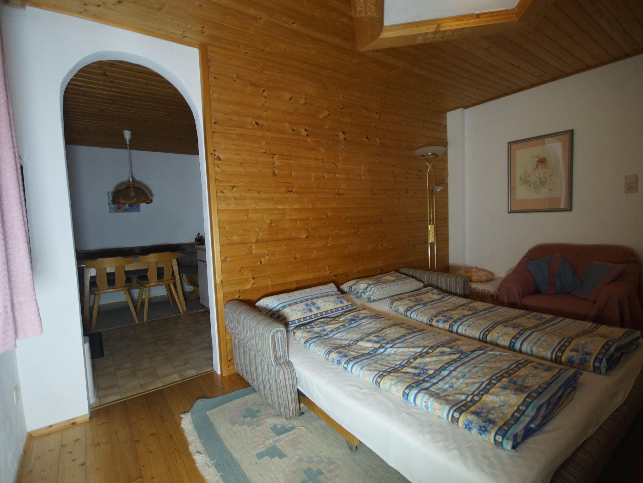 2 getrennte Schlafräume, ein Schlafzimmer mit Doppelbett und ausziehbarem Zusatzbett, ein Wohnschlafraum mit grosser, ausziehbarer Doppelbettcouch (1,75x2,00m) und offener Zugang zur Ess-Küche, Bad mit Dusche u. WC.