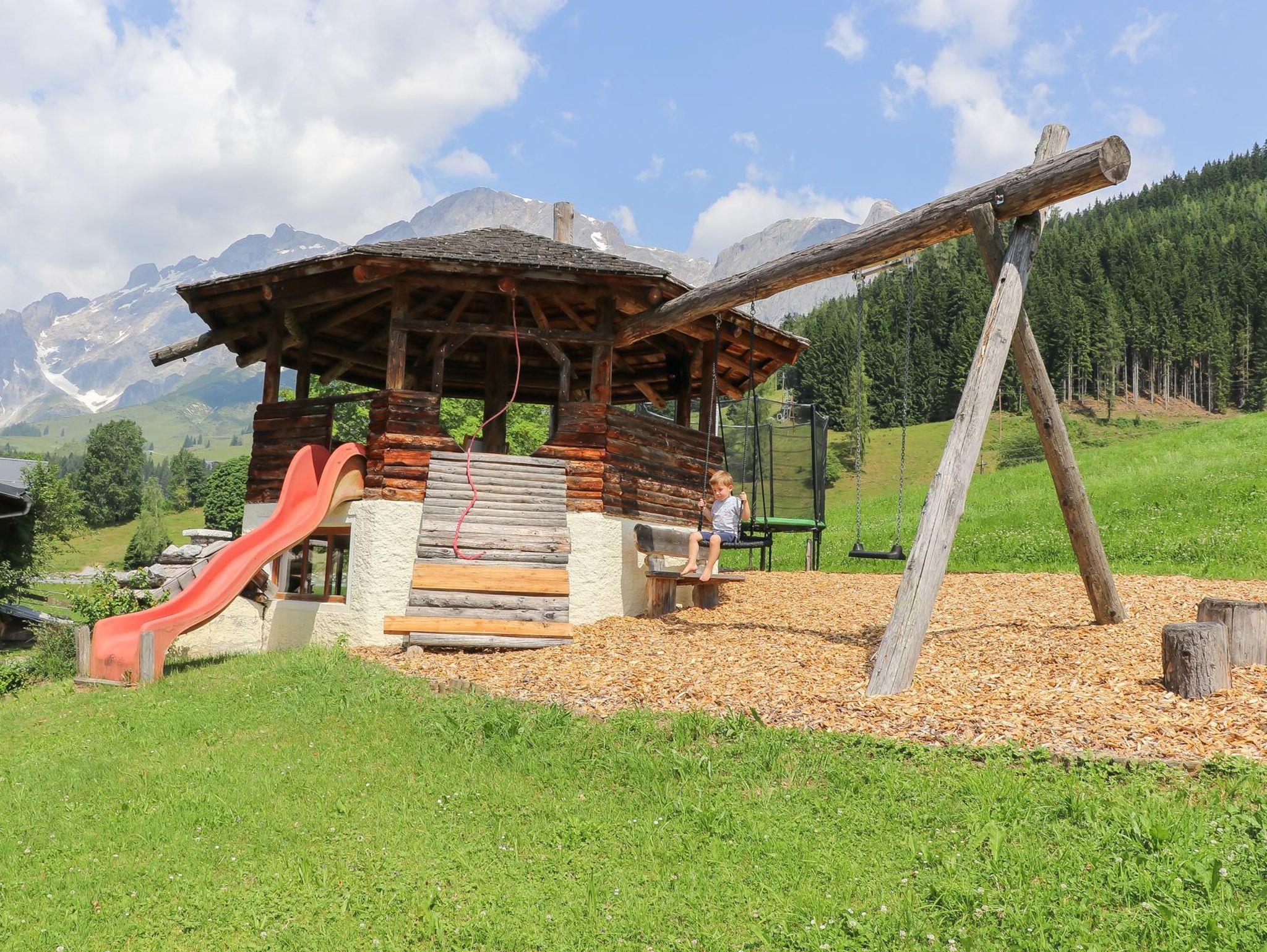 Erlebnisspielplatz für unsere Kid`s mit Höhle, Trampolin, Affenrutsche, Gokart´s, Schaukel, Sandkasten und vieles mehr.