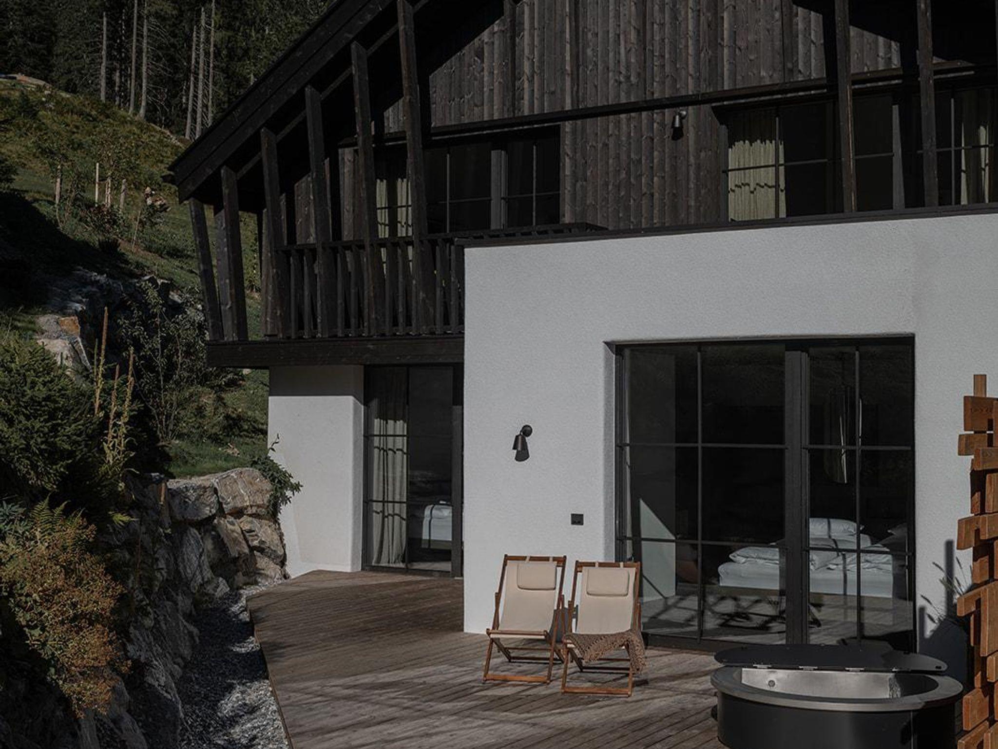 Das Chalet Goldlärche bietet einen Ort, wo man die Zeit vergisst. Durch die Kombination von Design und Handwerk strahlt das Chalet Geborgenheit und Ruhe aus. Die Wärme des Kaminofen und die Aussicht auf die Natur lassen dich EINFACH SEIN. DETAILLIERTE AUSSTATTUNG: 120 m² auf 2 Etagen, Masterbedroom mit offenem integriertem Badezimmer und XL-Dusche, Schlafzimmer mit Badezimmer, gemütlicher Wohnbereich mit Kaminofen, vollausgestattete Küche mit Weinschrank, privater Garten mit Outdoor-Sauna, Hot-Pot und herrlichem Blick auf die umliegende Bergwelt.