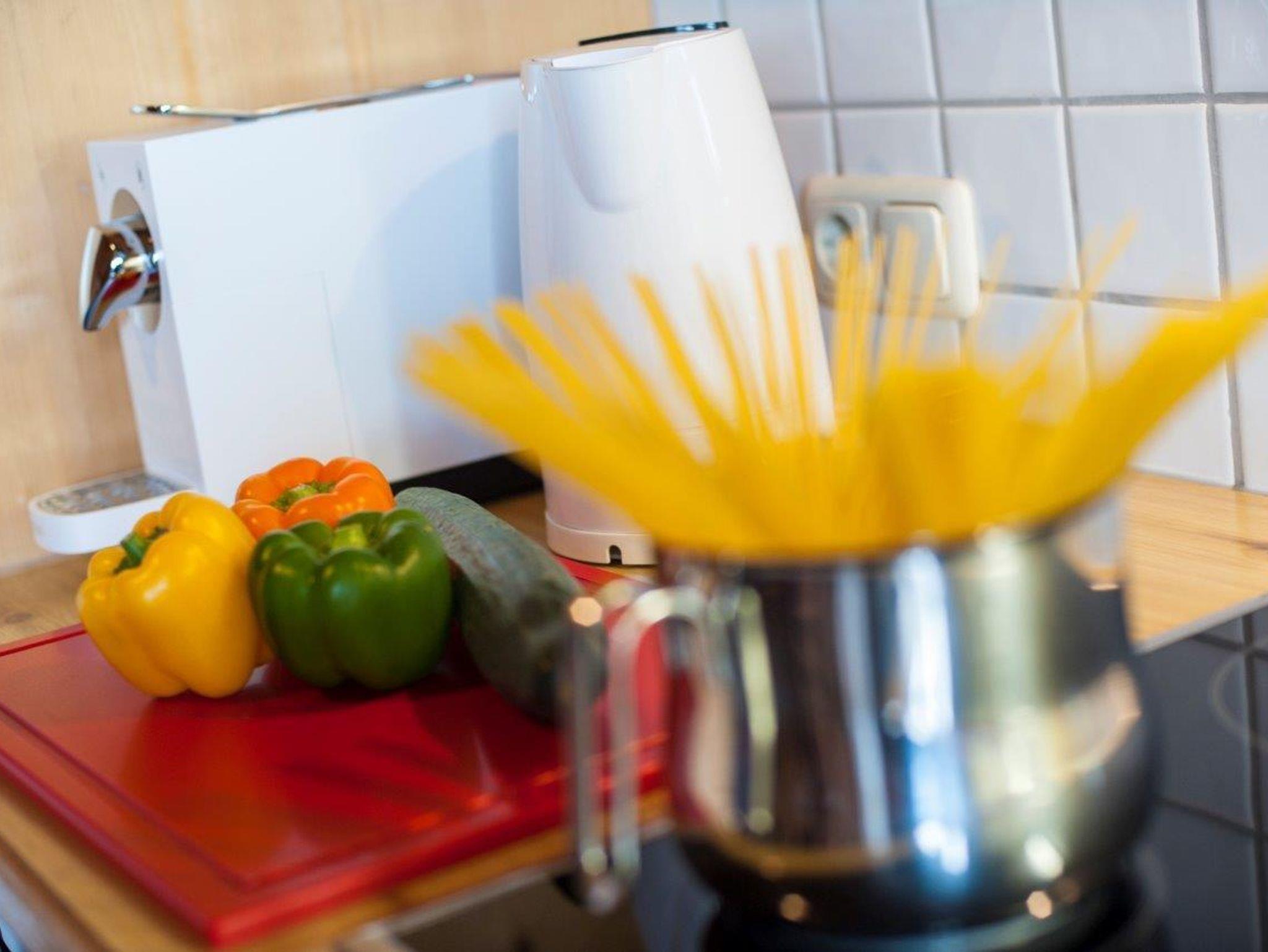 Die Wohnküche ist mit Geschirrspüler, Backherd, Kühlschrank, Mikrowelle, Toaster, Mixer, Wasserkocher, Kaffeemaschine und komplettem Kücheninventar ausgestattet. Bettwäsche inkludiert