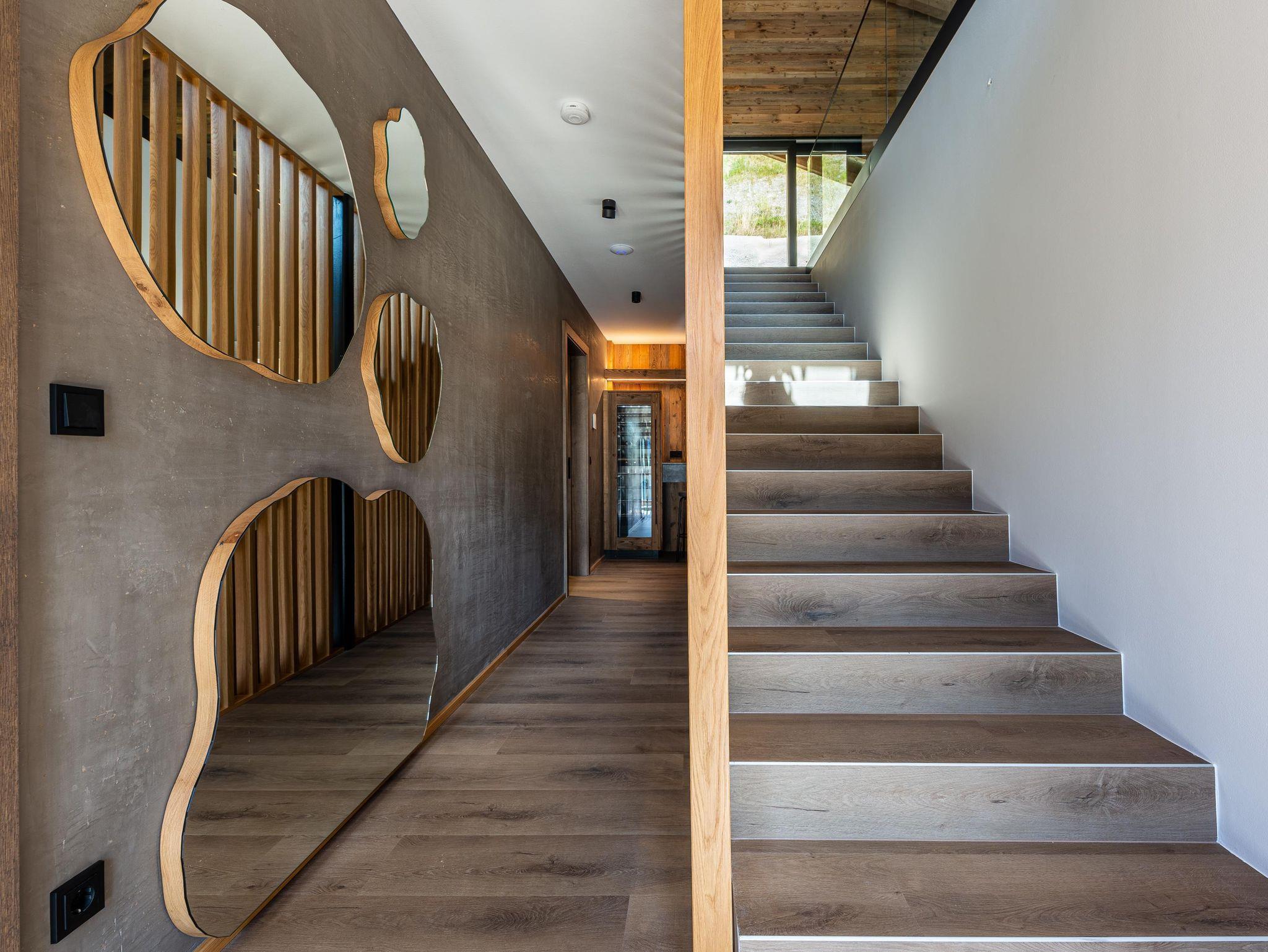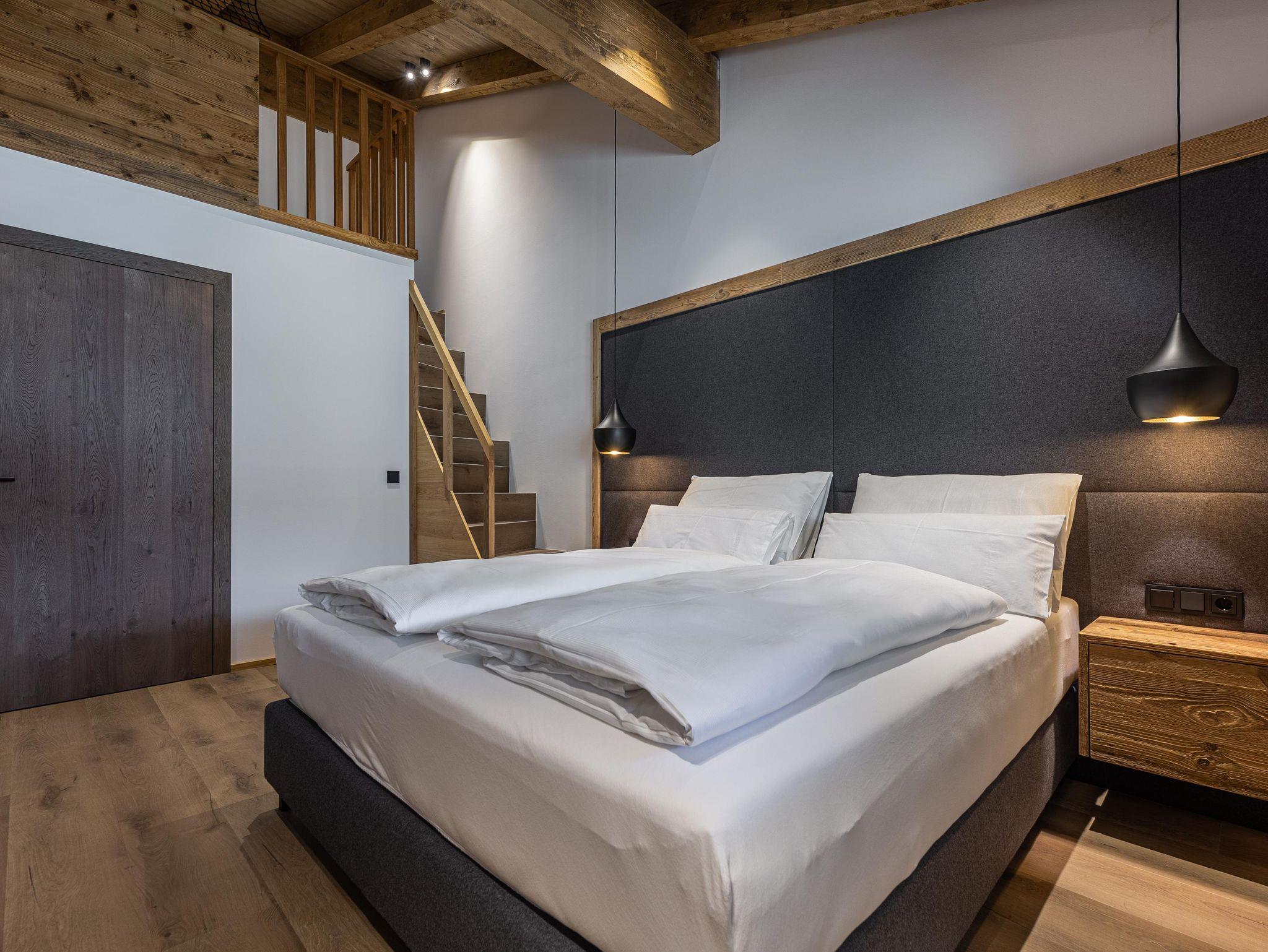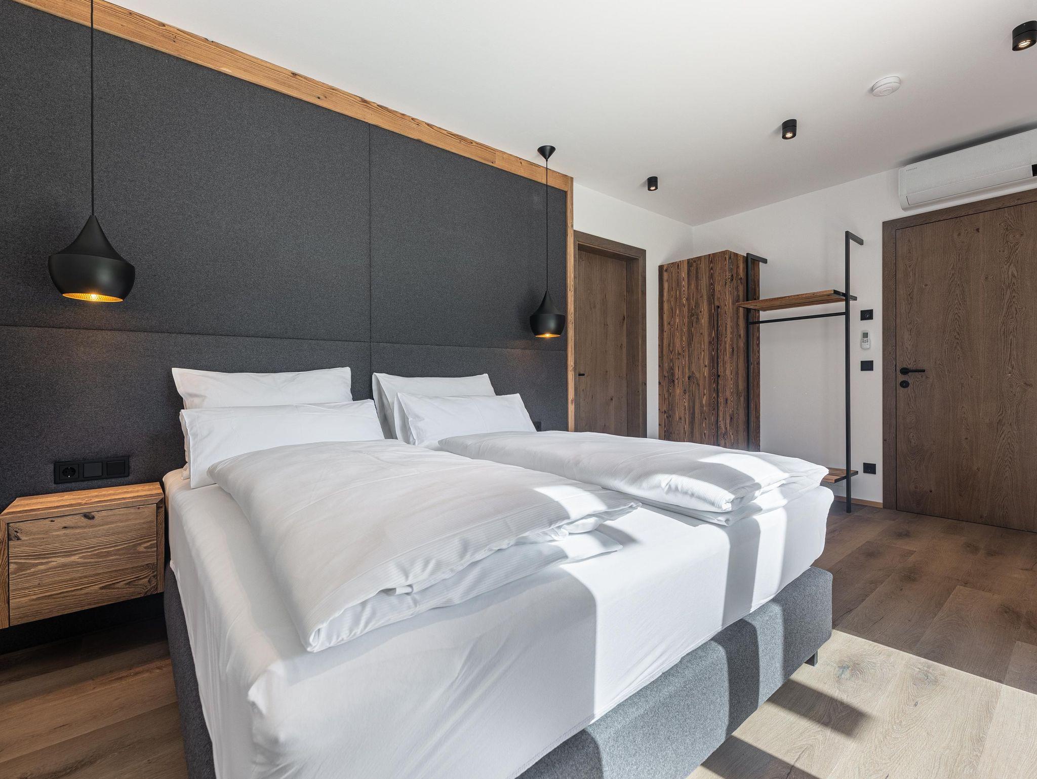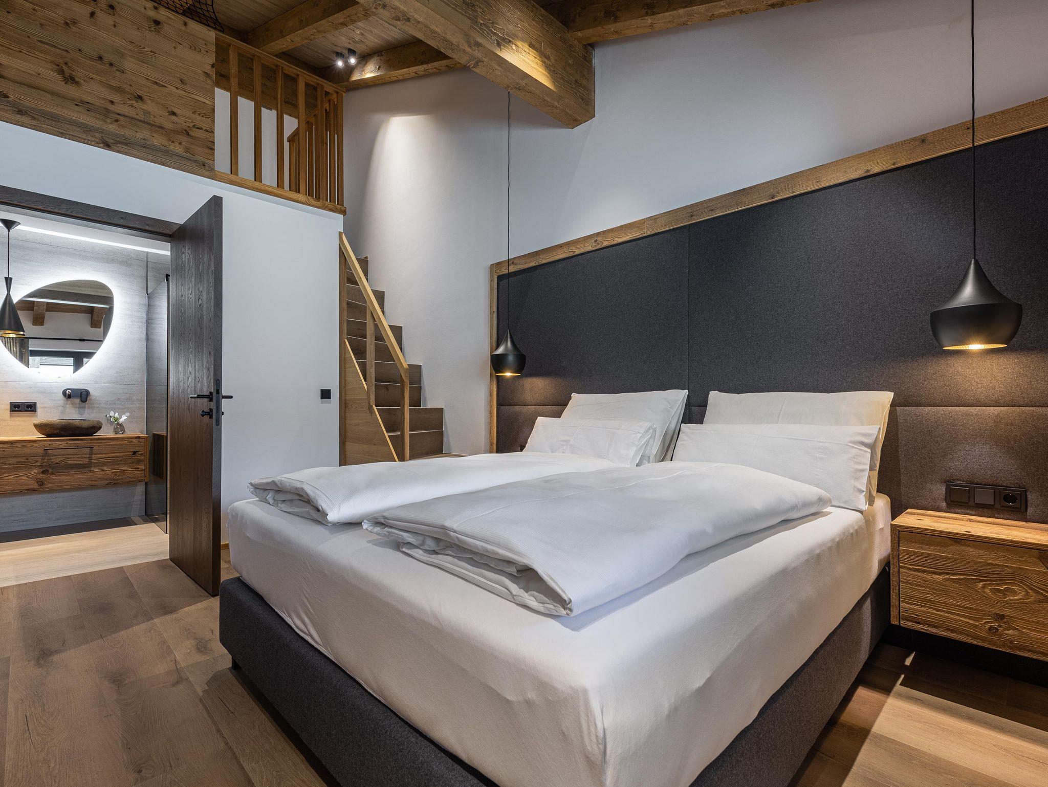 Die Chalets FRITZ und FRIEDA bestechen durch eine alpin-moderne Einrichtung, gemütliche Wohnbereiche mit Kamin und Panorama-Fenster sowie voll ausgestattete Küchen. Während das Chalet FRITZ mit 310 m² Wohnfläche 5 Schlafzimmer mit eigenen Bädern bietet, verfügt das Chalet FRIEDA auf 270 m² über 4 Schlafzimmer, ebenfalls mit privaten Bädern. Beide Chalets laden mit privaten Wellnessbereichen zum Entspannen ein: Im Chalet FRITZ erwartet Sie eine Sauna mit Relax-Ruheraum und eine großzügige Sonnenterrasse mit Talblick. Das Chalet FRIEDA bietet einen Relax-Garten mit Panorama-Sauna.