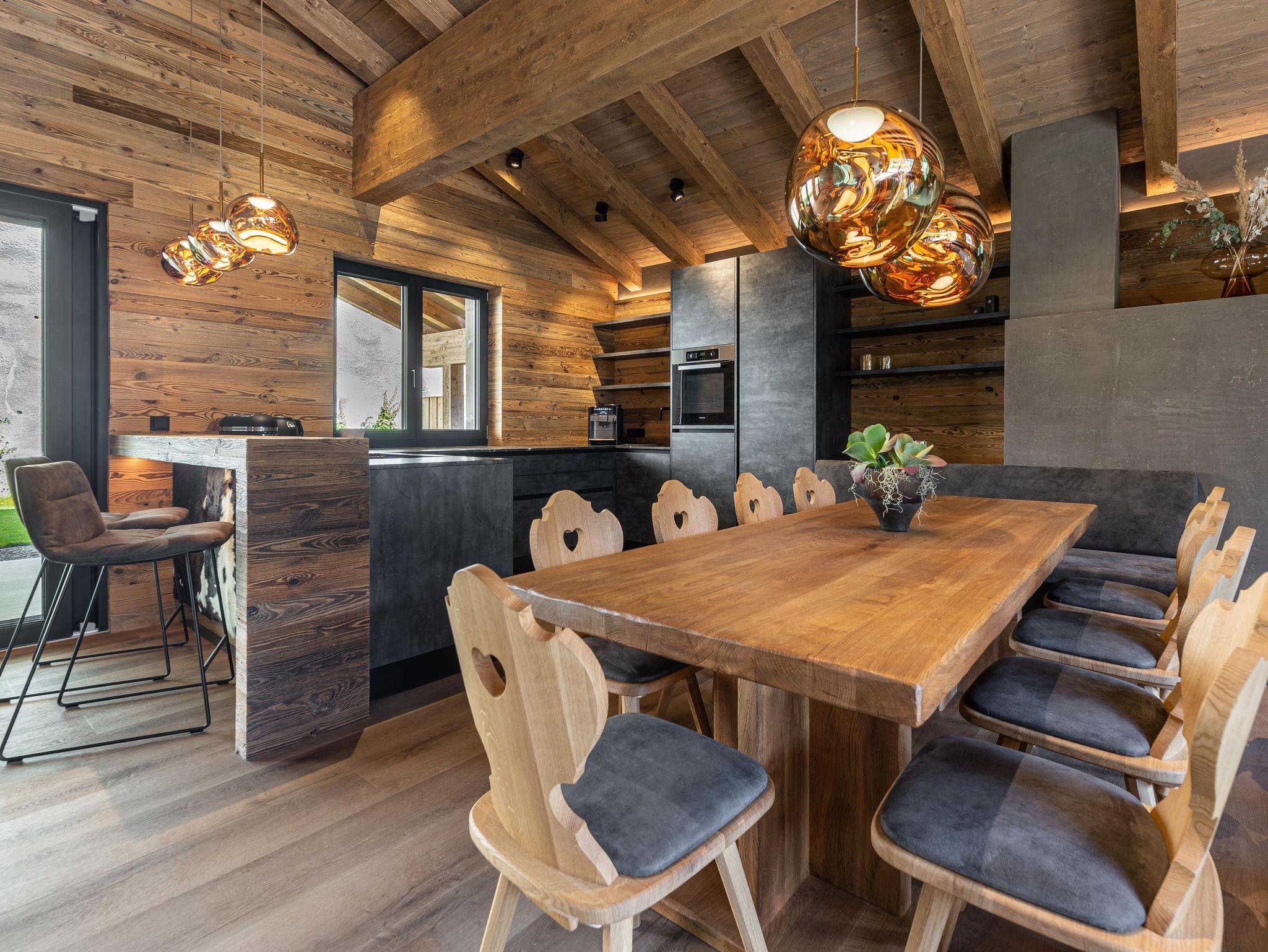 Willkommen im Kellnergut Chalet FRIEDA. Dieses exklusive Privatchalet mit 270 m² Wohnfläche bietet Platz für bis zu 12 Personen in 4 Schlafzimmern mit eigenen Bädern. Entspannen Sie im privaten Relax-Garten mit Panorama Sauna. Die alpin-moderne Einrichtung mit Sichtdachstuhl, der gemütliche Wohnbereich mit Kamin und Panorama-Fenster sowie die hochwertig ausgestattete Küche lassen keine Wünsche offen.