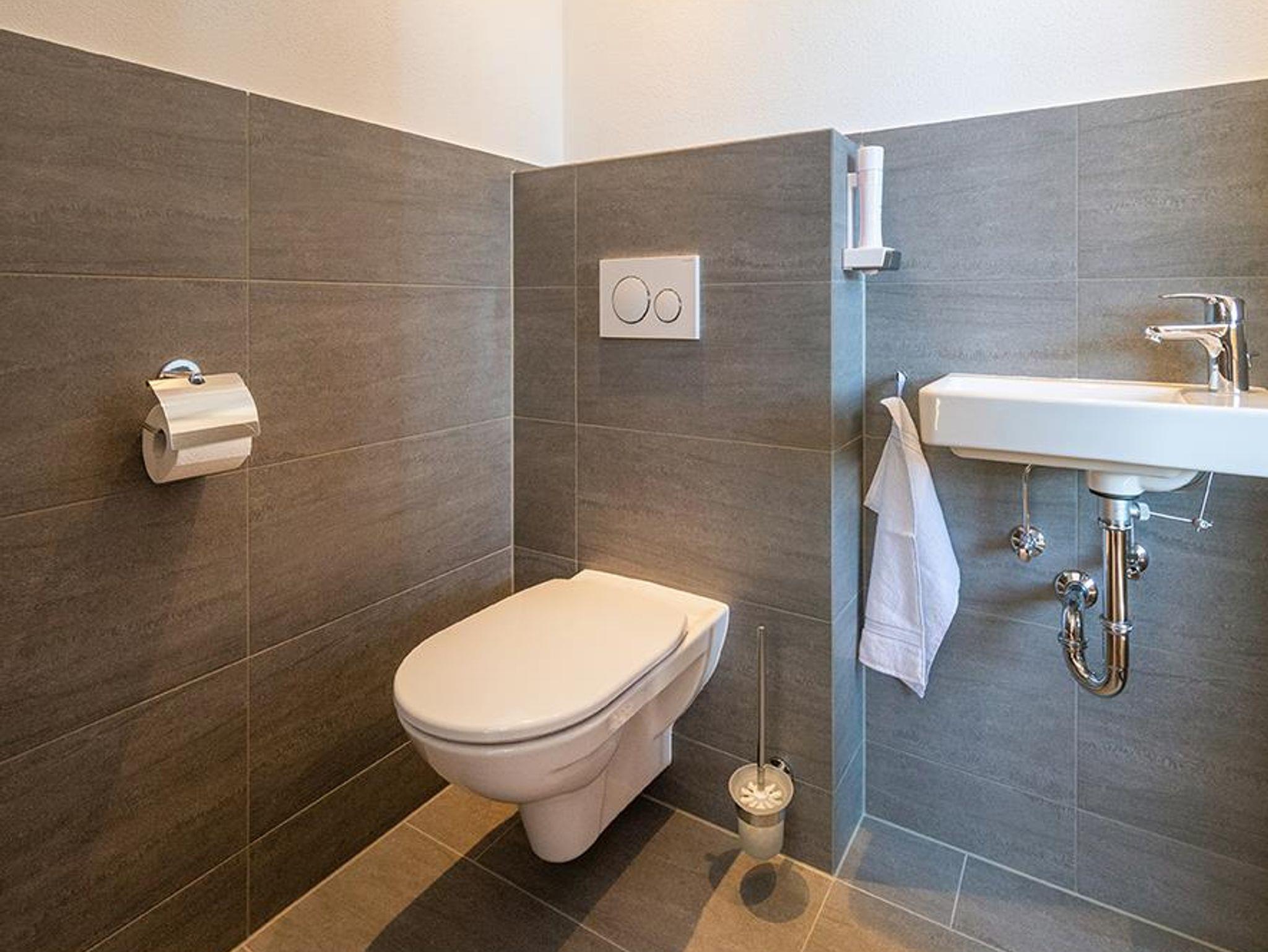 Das Badezimmer verfügt über eine separate Toilette.