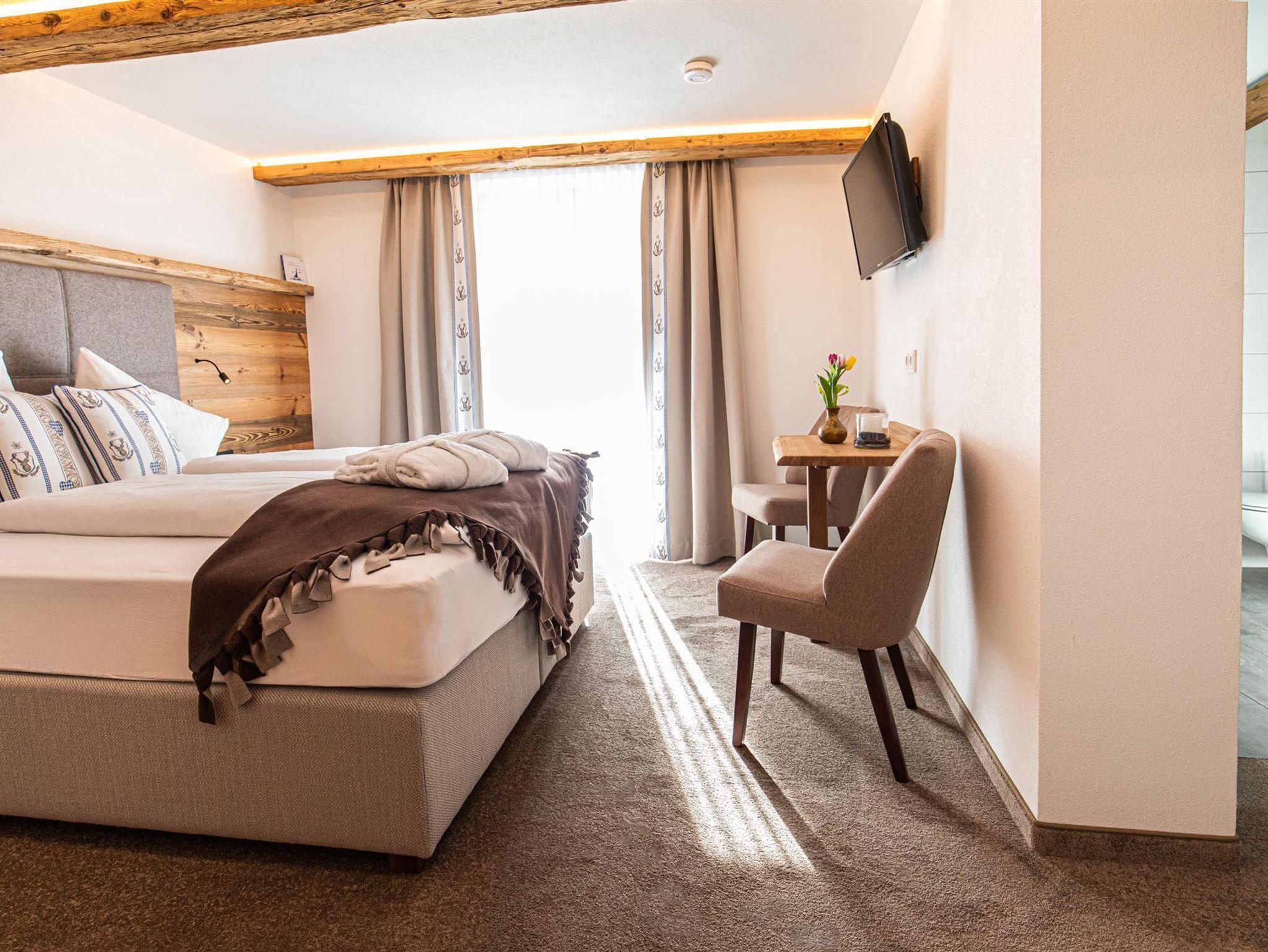 Gemütliches Familienzimmer, optisch getrennt, keine getrennten Zimmer mit hellem Bad.