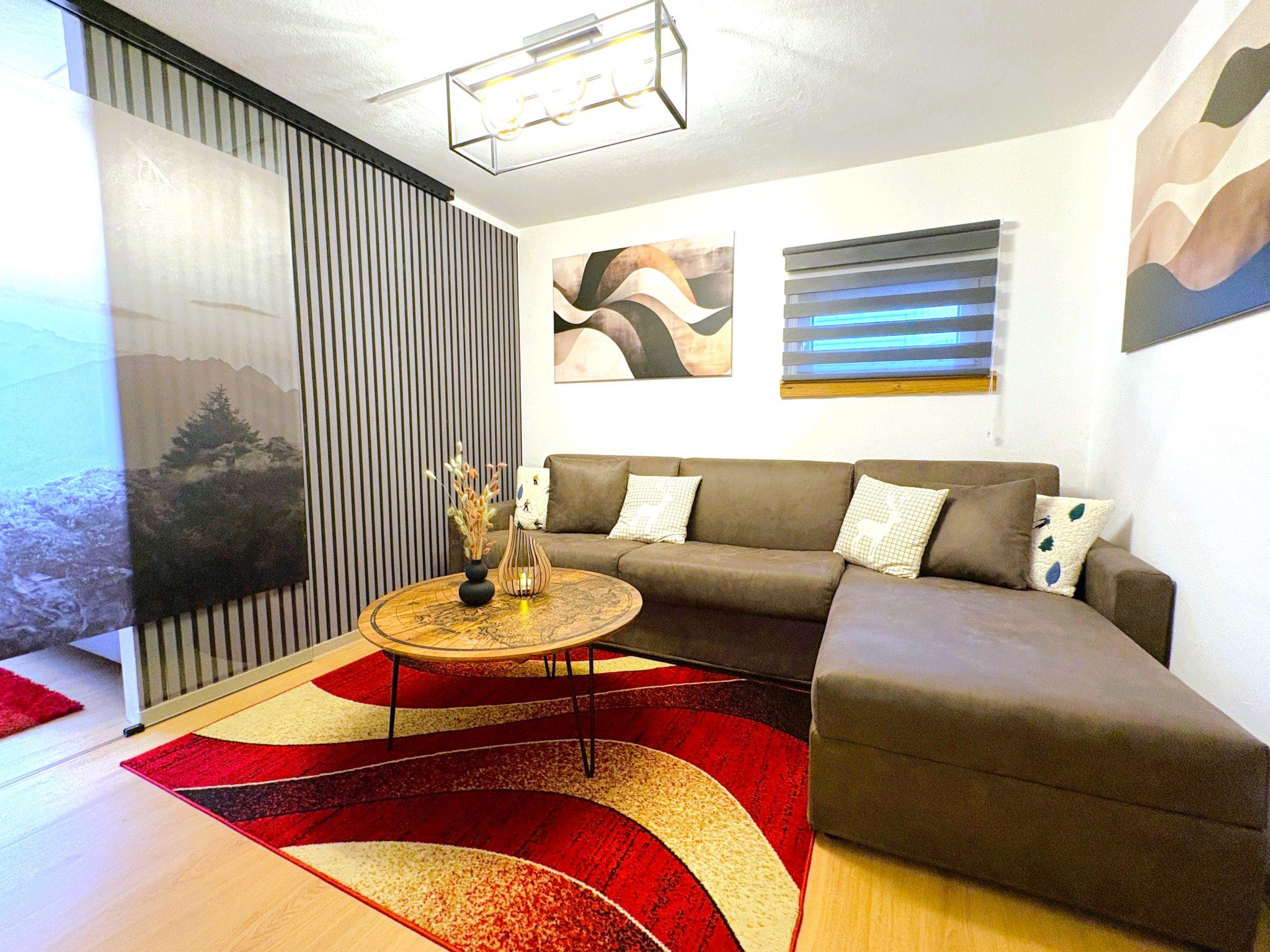 "Apartment Anneliese", 3-room apartment 77 m2, on the ground floor. Very modern and stylish furnishings: entrance hall. Living room with 1 double sofabed (180 cm, length 200 cm), Scandinavian wood stove (only for decoration), flat screen. 1 double bedroom with TV. 1 room with 1 bed (90 cm, length 200 cm), 1 double bed and TV. Large kitchen (oven, 4 induction hot plates, toaster, kettle, microwave, electric coffee machine) with dining table. Exit to the terrace. Bath/shower, sep. WC. Floor heating. Parquet floors. Terrace 30 m2. Terrace furniture. Beautiful panoramic view of the mountains and the valley. Facilities: Internet (WiFi). Parking at the house. Please note: non-smokers only. Smoke alarm. 50611-003991-2025