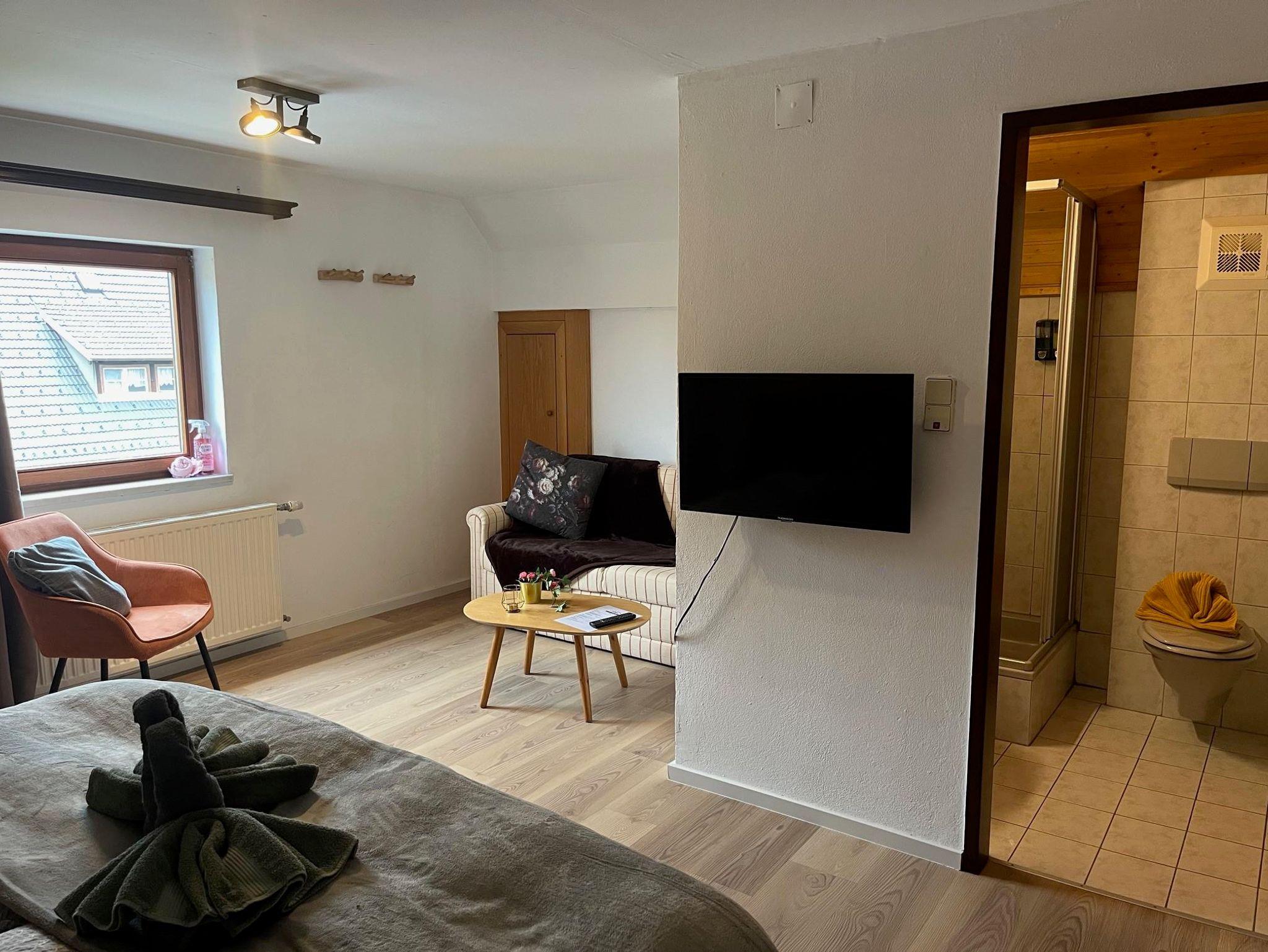 Doppelzimmer, auch als Dreibettzimmer zu nutzen, mit Dusche –Wc/ Kabel- Tv