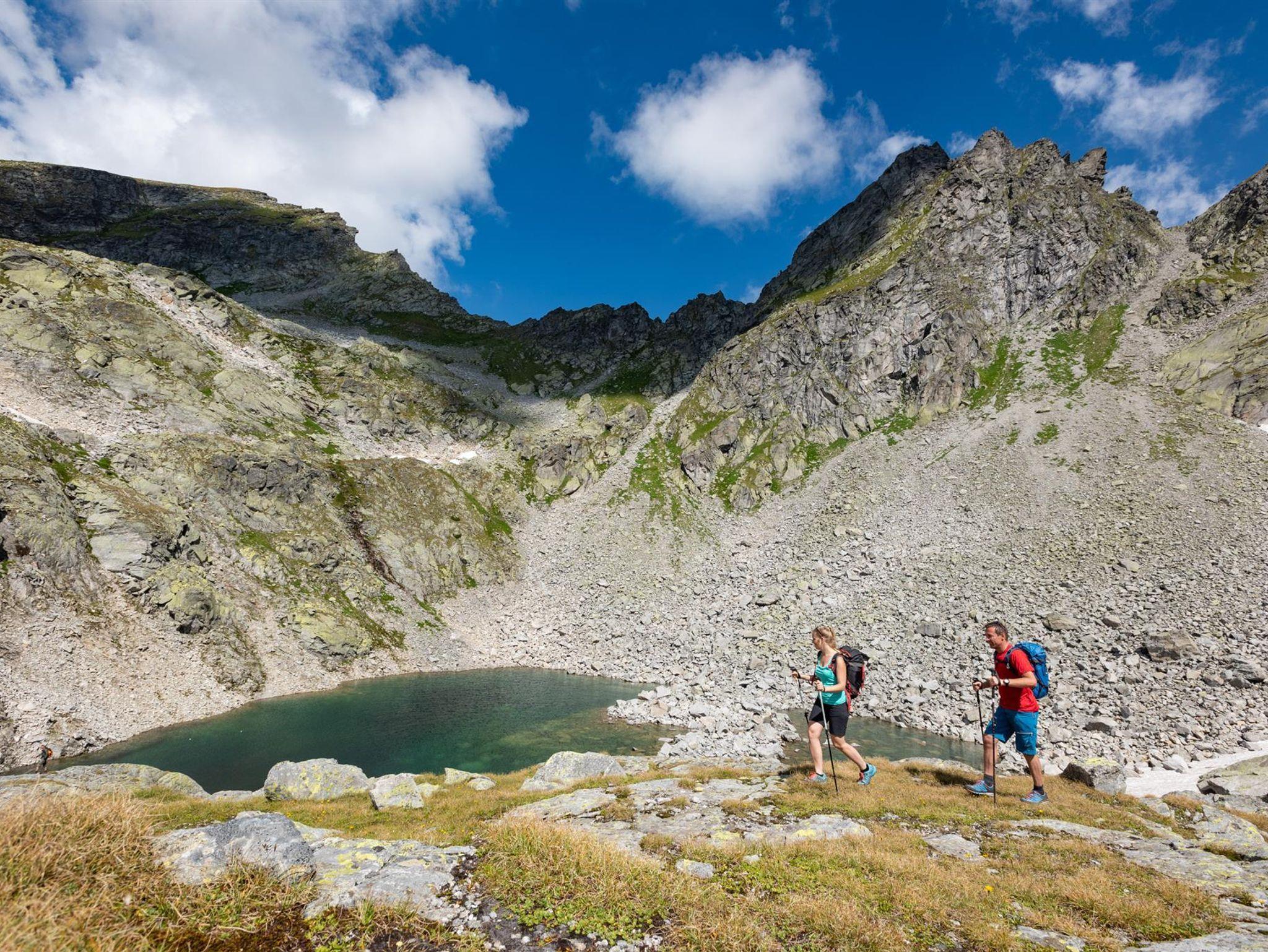 Ein Alpensommer - kühl, angenehm. Der Hitze im Tal entkommen und die würzige, frische Luft genießen. Den Gedanken freien Lauf lassen. Die Welt erwandern. Pause machen, dort wo der Bergsee glitzert und die Berge bezwingbar erscheinen.