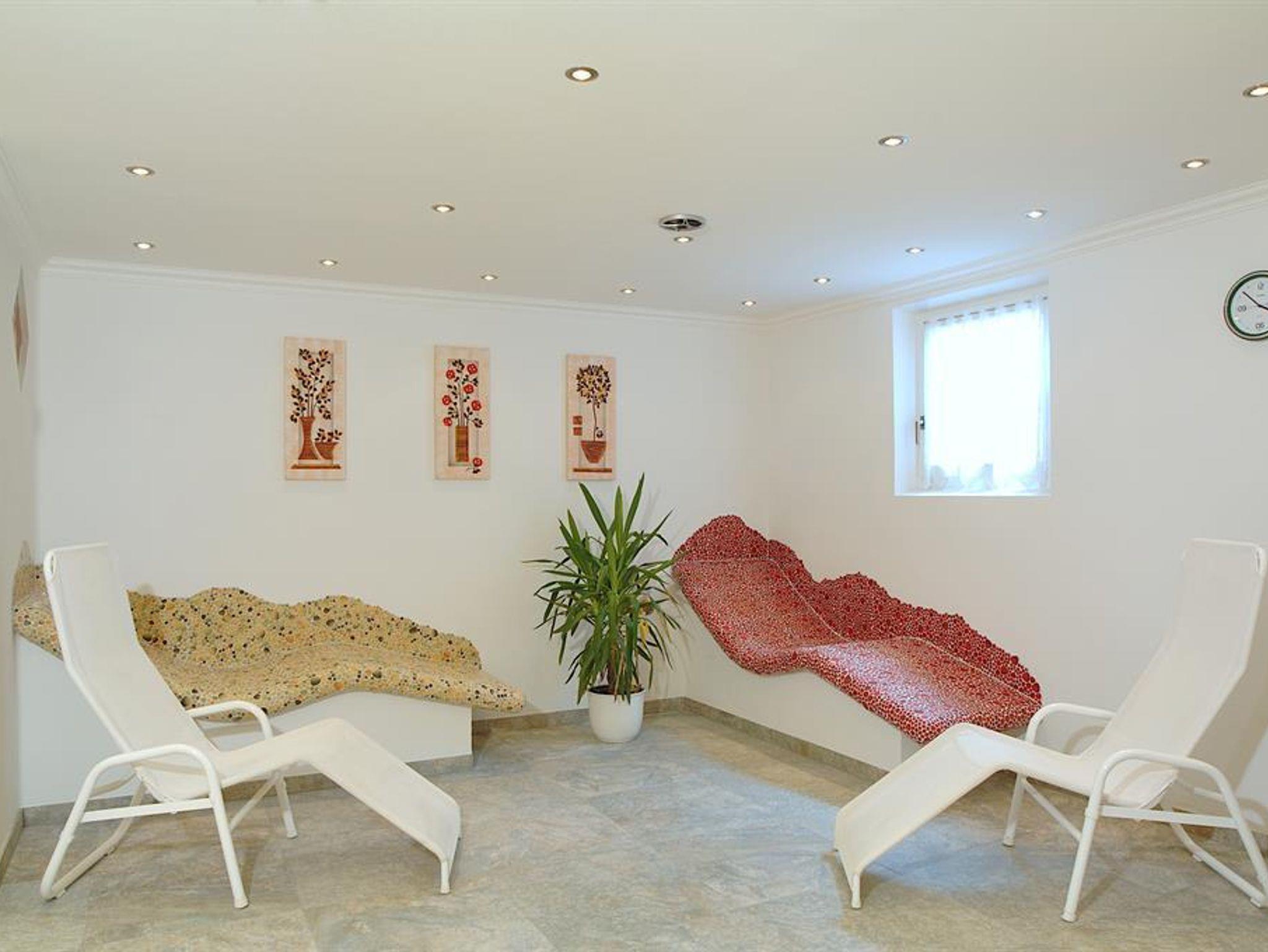 Weiters wird Ihnen geboten: eine große Sonnenterrasse, ein einladender Aufenthaltsraum mit TV und Kamin, Gästekühlschrank, zum Wohlfühlen ein Wellnessbereich (Sauna,IR-Kabine, Wärmeliegen) Tischtennis sowie ein toller Spielraum für die Kleinen. Außerdem befinden sich sowohl die Ski Pisten als auch Langlaufloipen, Ski Bushaltestelle in unmittelbarer Nähe.