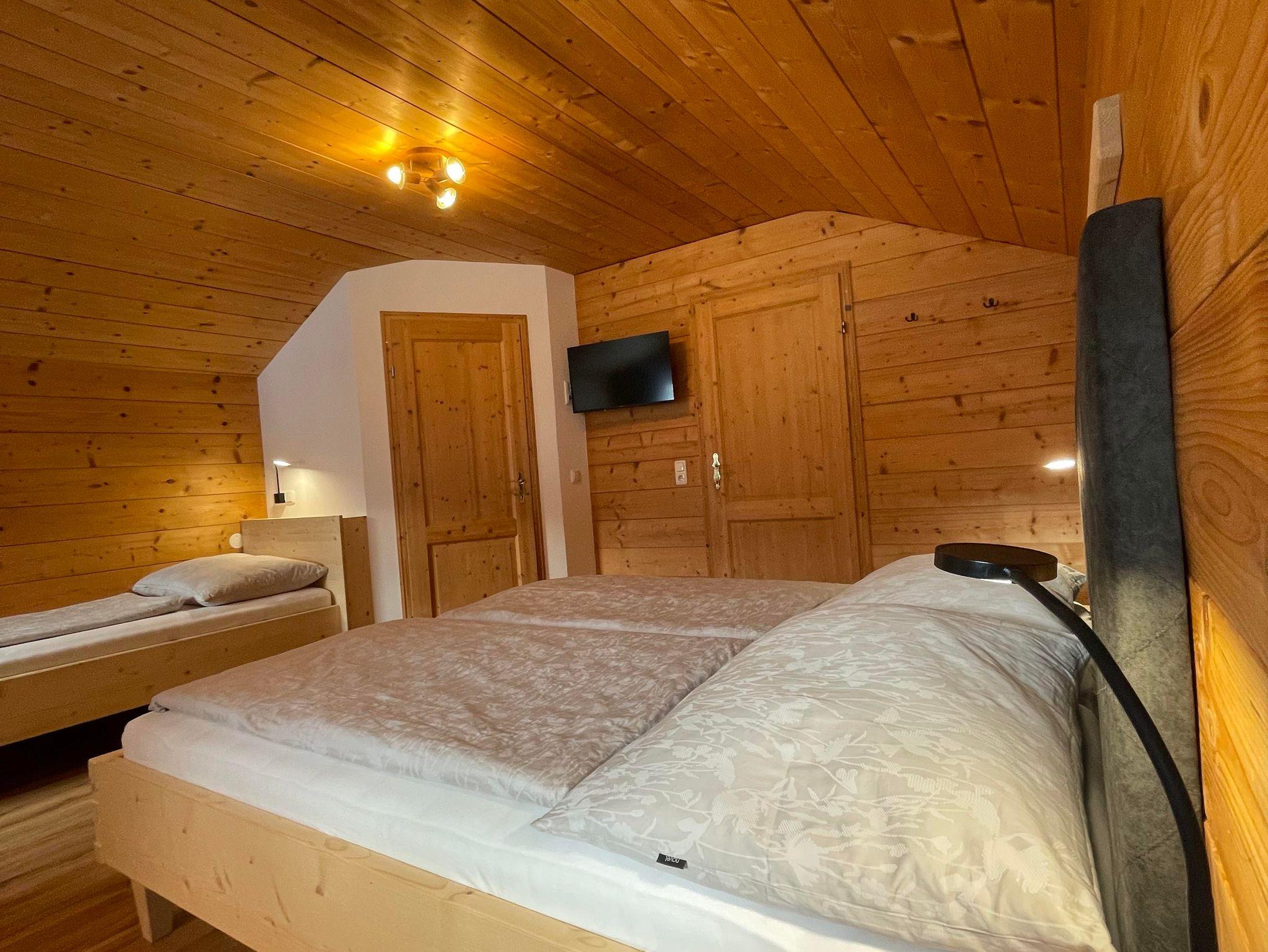 • 1 Familienzimmer im OG mit Doppelbett, Einzelbett und Ausziehcouch mit Fernseher