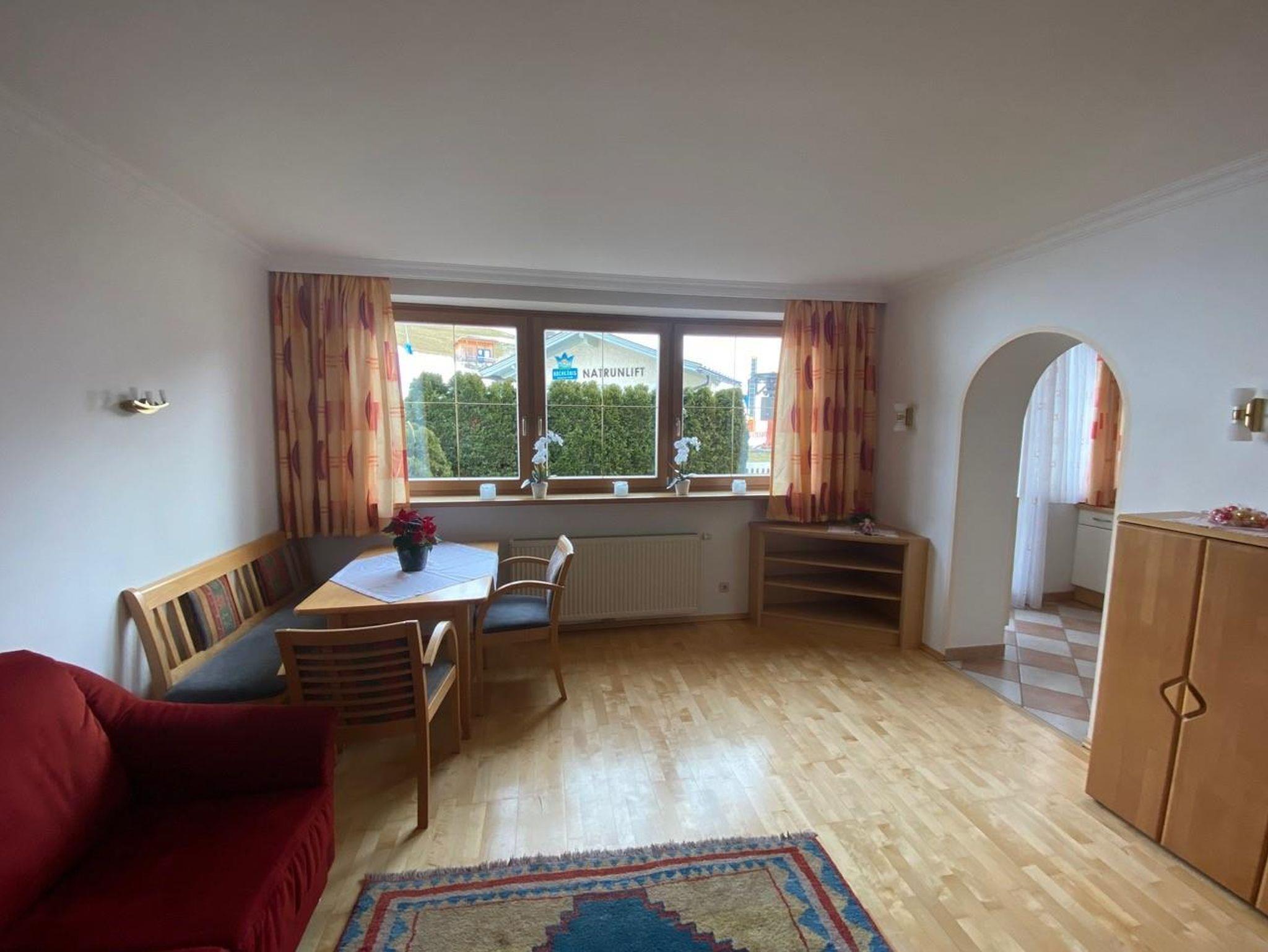 Gemütliche Ferienwohnung 65m2, direkt gegenüber dem Skilift in Maria Alm und nur 5 Gehminuten vom Ortszentrum entfernt. Die Ferienwohnung hat 1 Schlafzimmer, einen großen Wohnbereich mit Schlafsofa und ist ebenfalls mit einer geräumigen Küche sowie Badezimmer mit Dusche ausgestattet. WC separat.WIFI. Versperrbares Kellerabteil und eigenes Carport sind ebenfalls vorhanden.