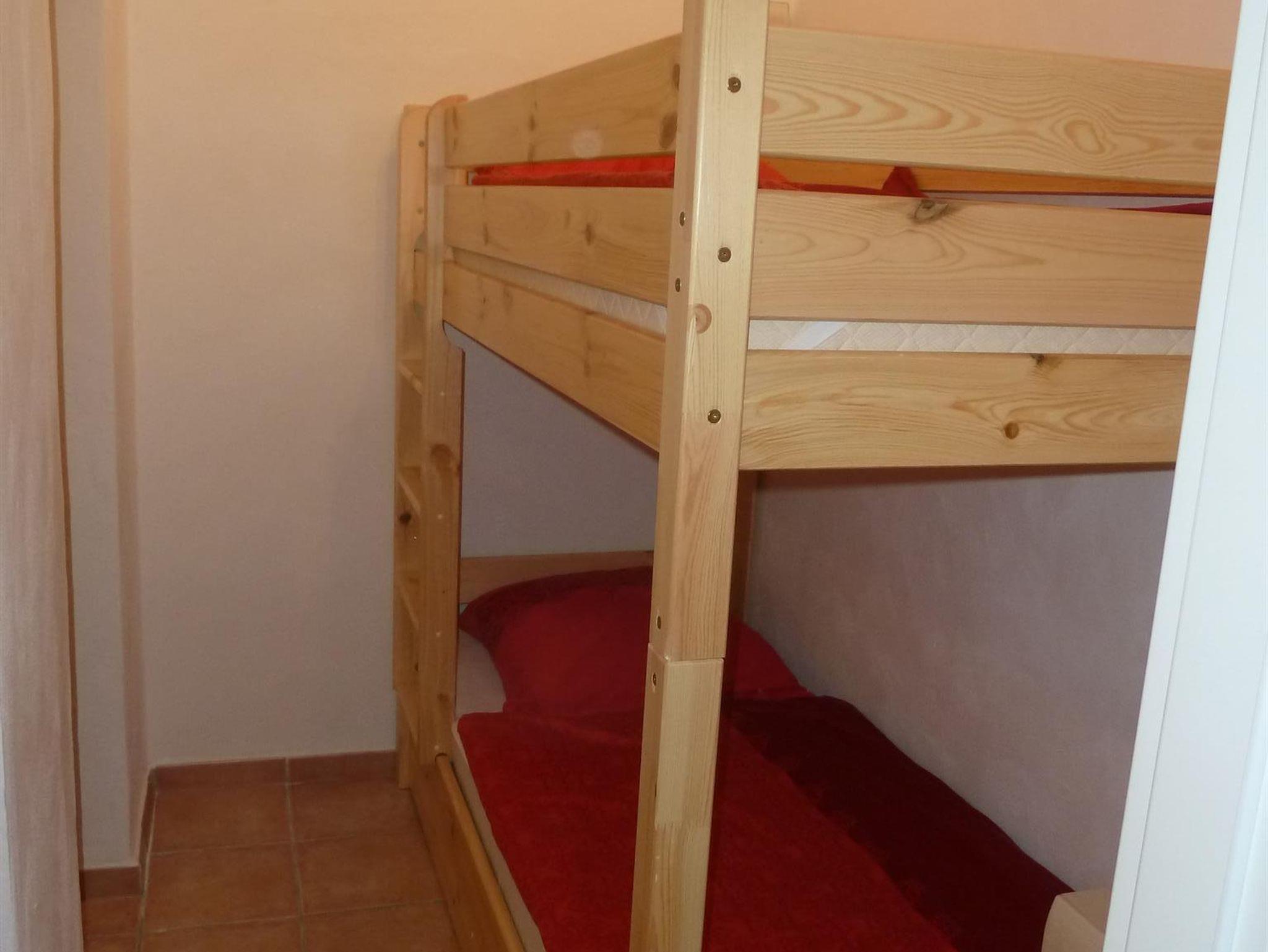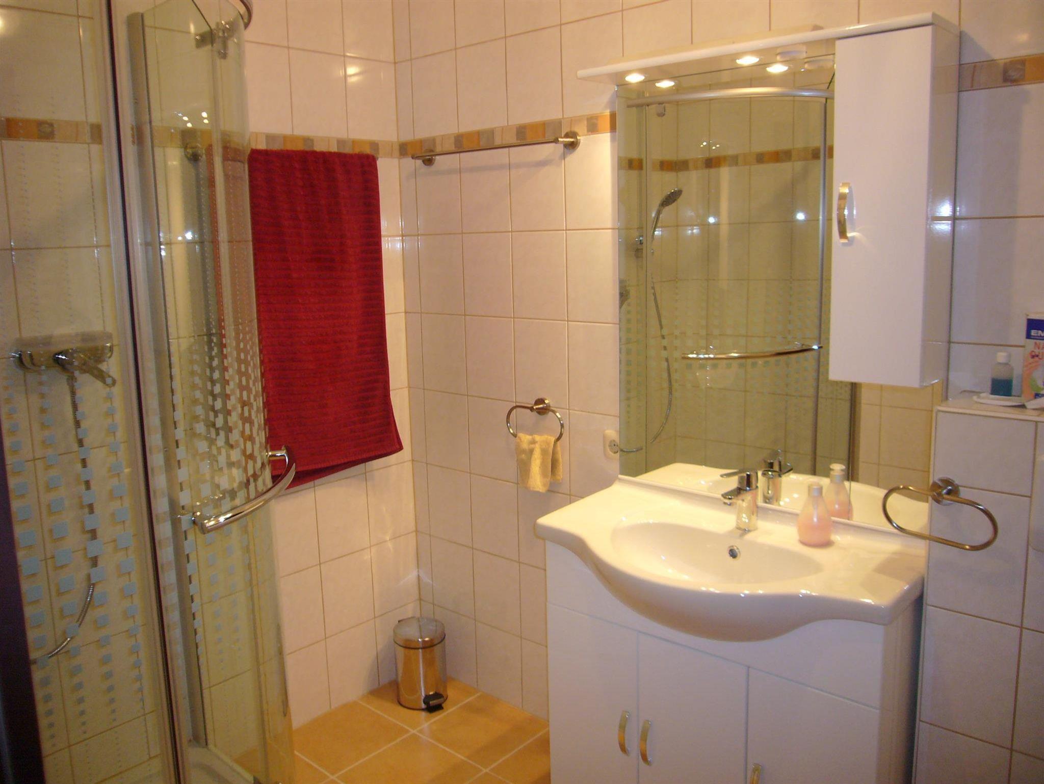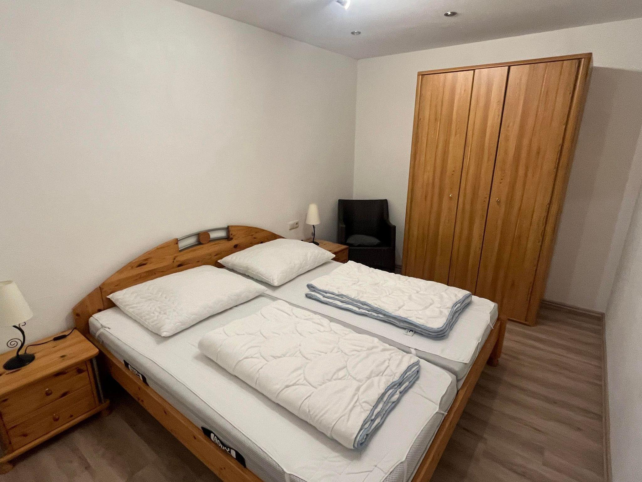 Gemütlich ausgestattete Ferienwohnung im EG. 1 Schlafzimmer mit Doppelbett (180x200) und Schrank, 1 kleines Schlafzimmer mit Stockbett (2 Betten 90x200) und Schrank, 1 Wohnschlafraum mit zwei Schlafgelegenheiten auf einer ausziehbaren Couch. Die voll ausgestattete Küchenzeile und Essecke grenzen an den Wohn-Schlafbereich an. TV, schöne Terrasse mit Möbeln und Gasgrill, Bad/WC, ein separates WC, Diele mit Garderobe.