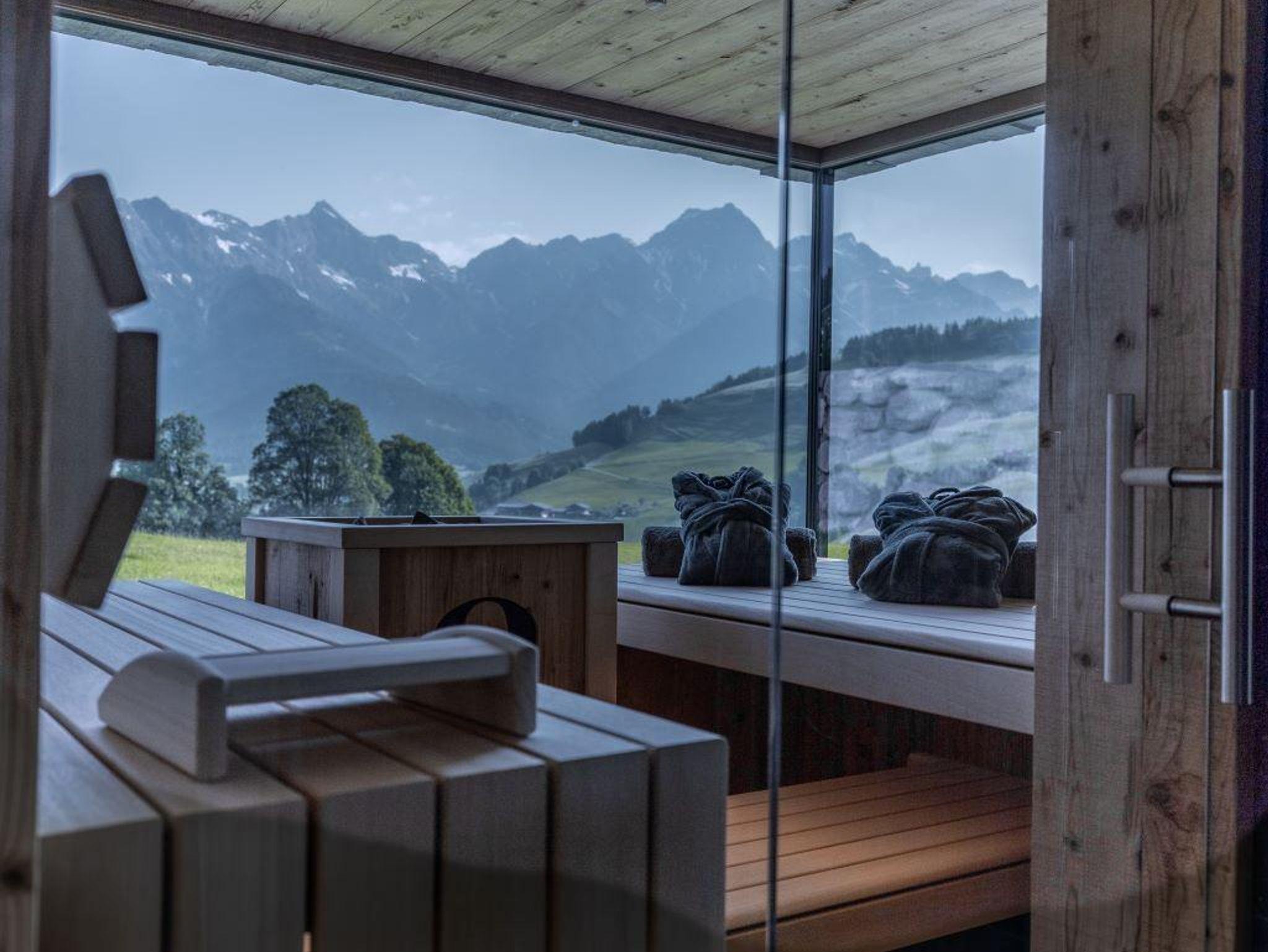 Genieße die Bergwelt der Hochkönigregion von der gemütlichen Panoramabadewanne aus oder entspanne nach einer anstrengenden Wanderung in der apartmenteigenen Sauna.