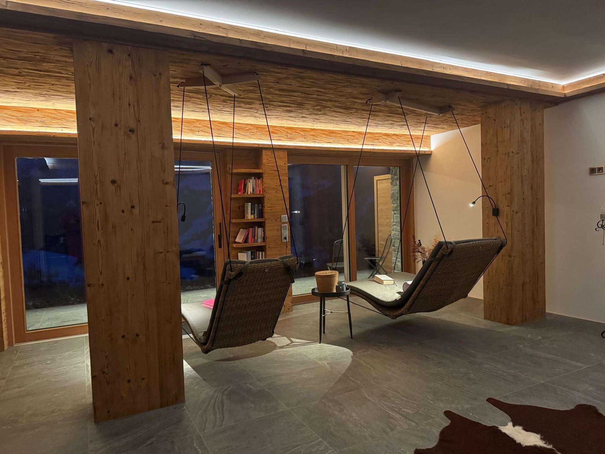 Auf der Sonnenseite vom Natrun! Willkommen in der Lions Lodge direkt an der Skipiste Sonnbergbahn (Ski in/Ski out), 1130m Höhe, 5 Gehminuten zur beliebten TOM-Almhütte. Unser Gästeappartment ist der perfekte Ausgangspunkt für Skifahrer/Rodler/Wanderer und Faulenzer in jedem Alter. In 2 hochwertig ausgestatteten nach Süden ausgerichteten Zirbenzimmern (WLAN/TV) mit jeweils eigenem Bad (Dusche/WC) können bis zu 6 Personen schlafen. (Doppelbett + Leiterbett). Im gemütlichen Wohn-/ Essraum ist die vollwertig ausgestattete Küche integriert (Kühl-Tiefkühlkombi/Induktionsherd/Backofen/Spülmaschine/Dunstabzug/Nespresso/Sodaclub). Die eigene Sonnenterrasse mit freiem Blick auf hohe Gipfel und ins Tal verführt zum Verweilen statt Eilen. Im komfortablen Wellnessbereich mit großer Panoramasauna und Whirlpool finden Körper und Seele die wohlverdiente Entspannung. Garage mit Lift. Beheizte Garderobe/Skischuhraum. Wallbox für EV.
