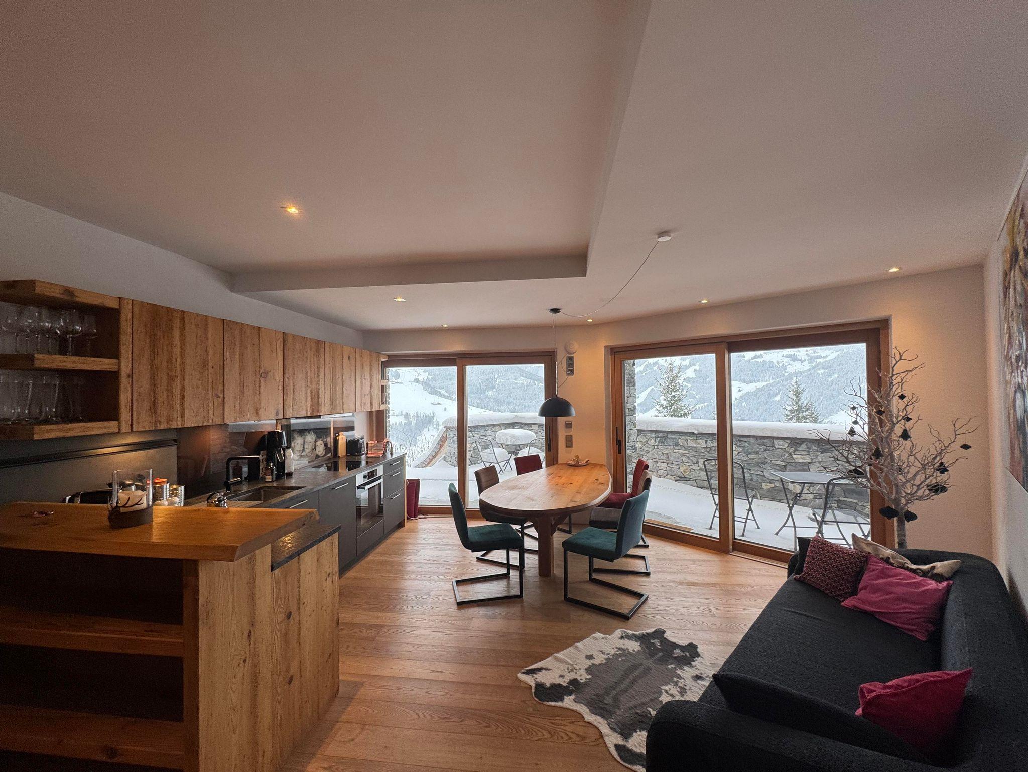 • Wohn-Esszimmer mit integrierter, hochwertig ausgestatteter Küche