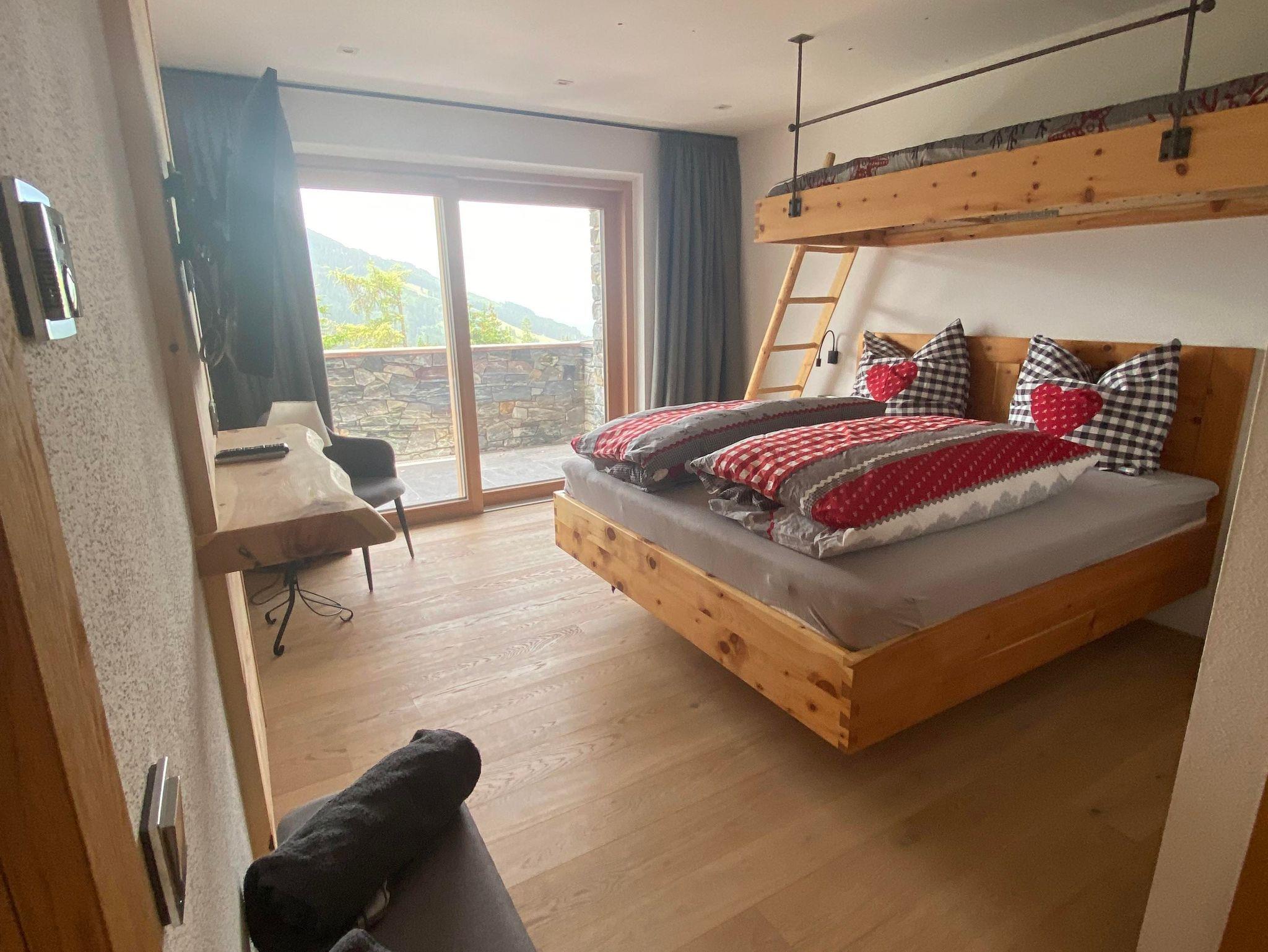 • 2 hochwertige Zirbenholz-Schlafzimmer mit jeweils 1 Doppelbett und 1 Einzel-Leiterbett