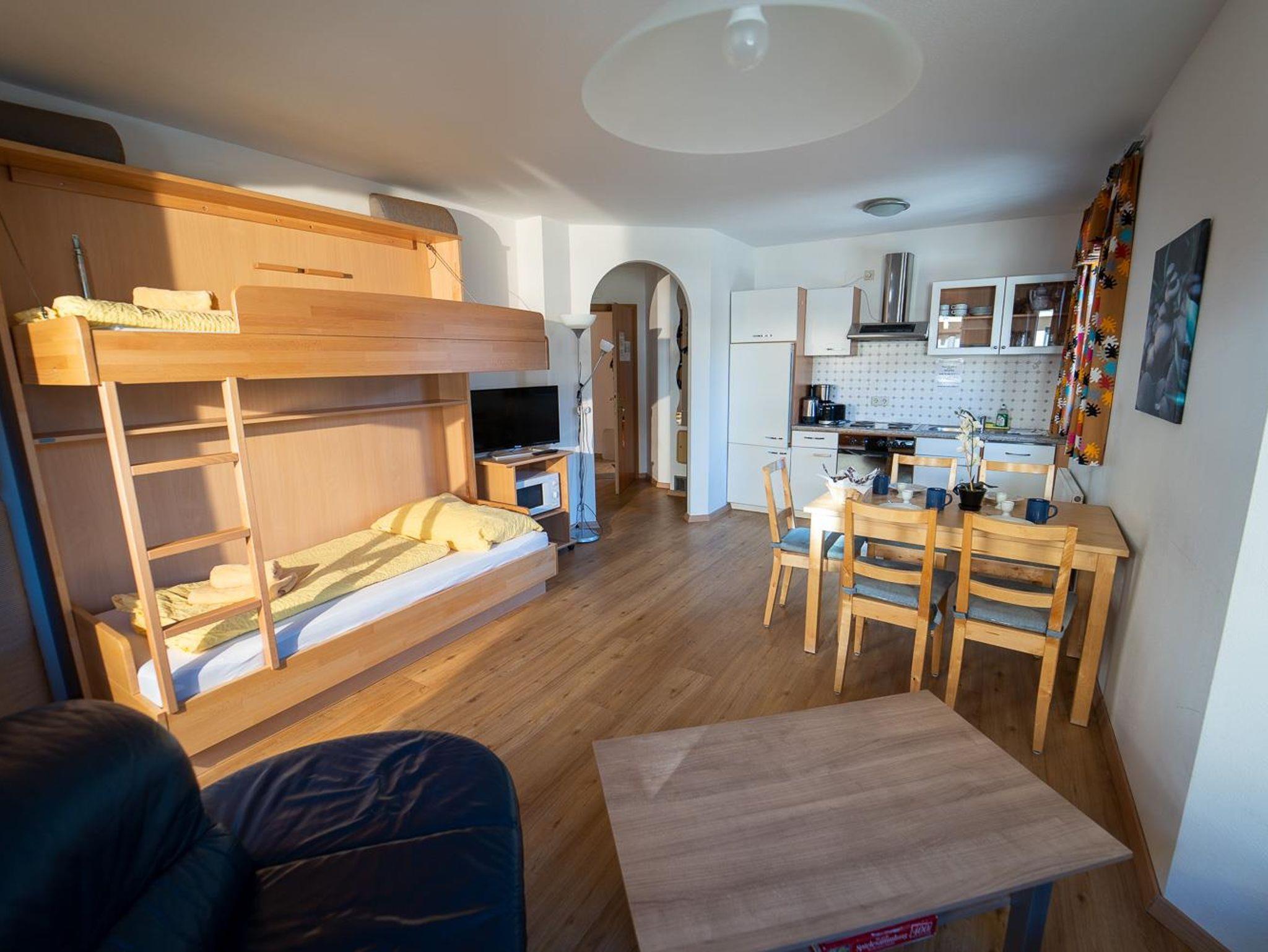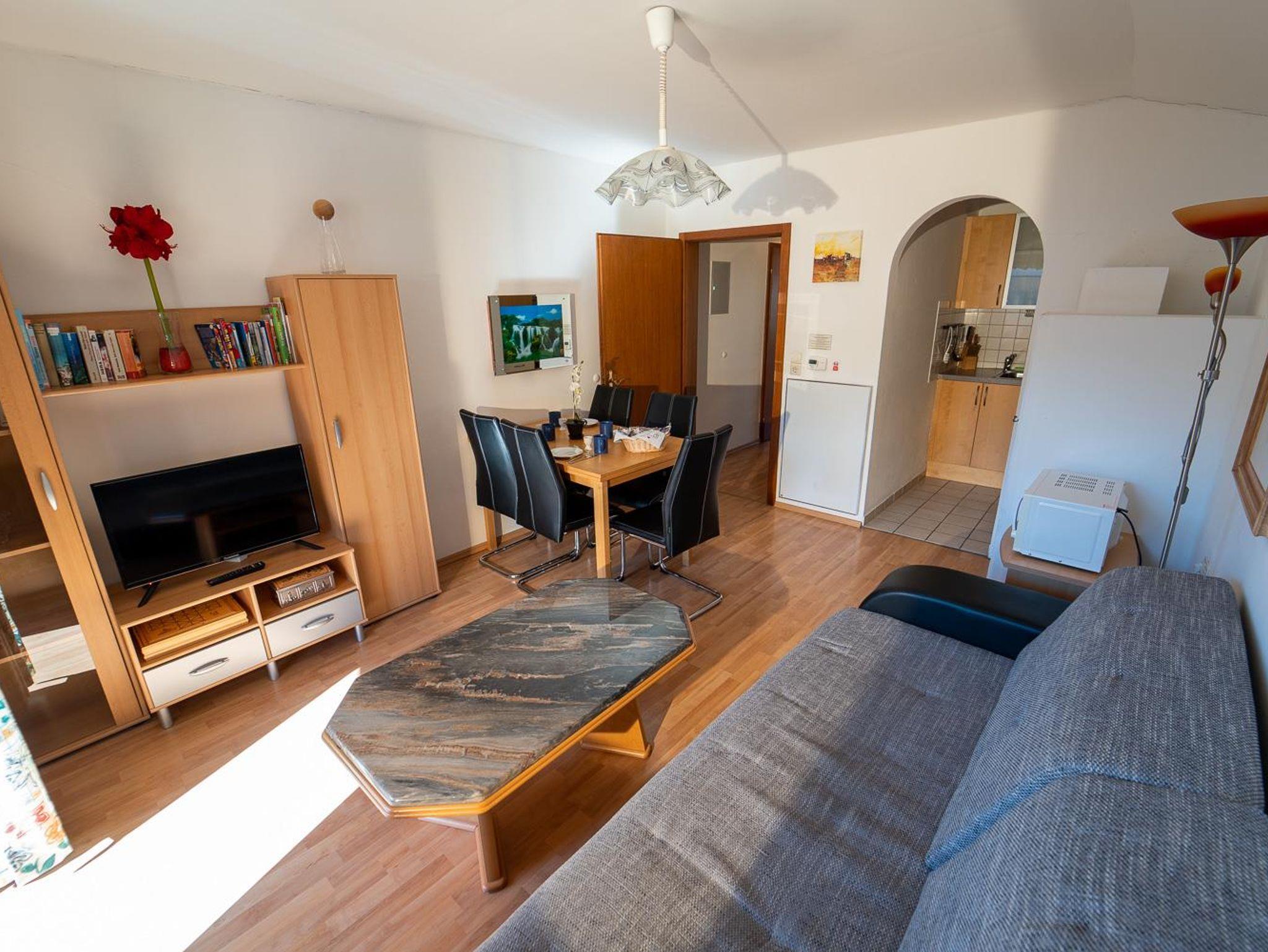 . Wohnküche mit Flexinno-Bett-System (eine Kombination aus Sitz-Couch am Tag und ausklappbar zu 1 oder 2 Betten zum schlafen) und gemütlicher Eckbank, LCD-Kabel-TV