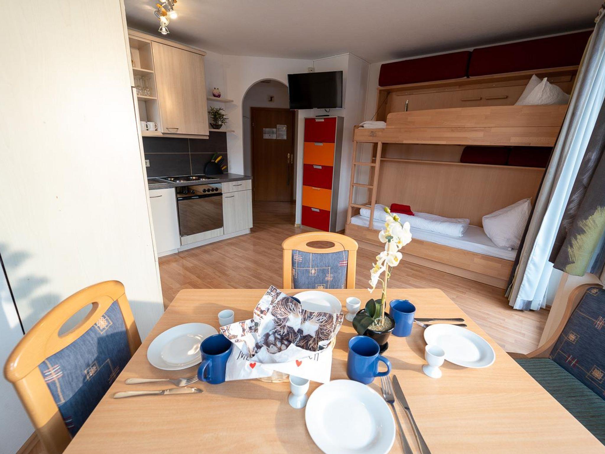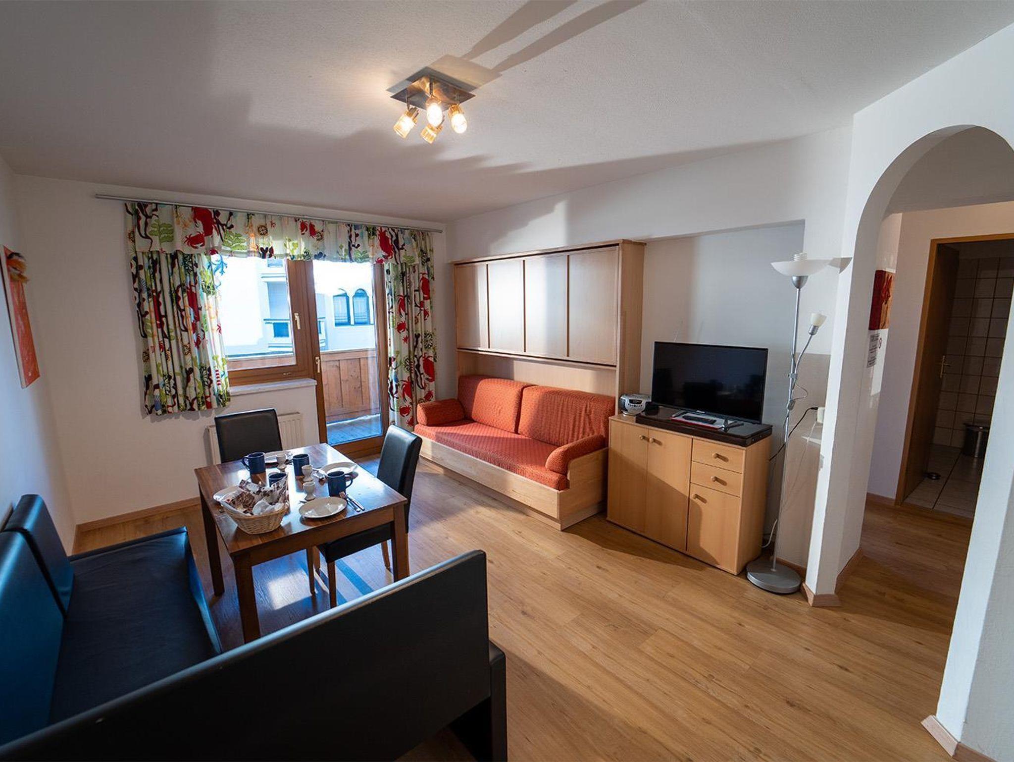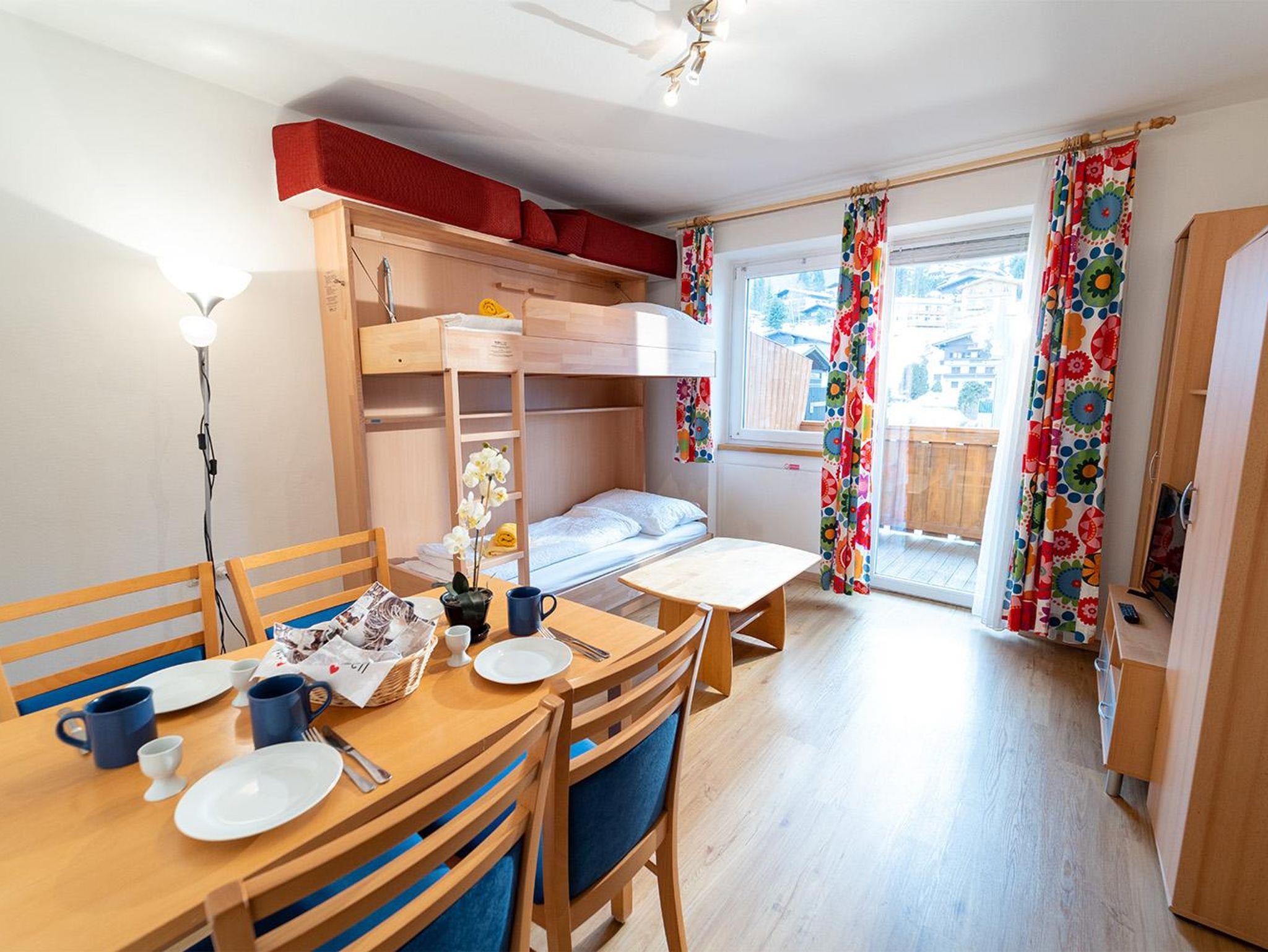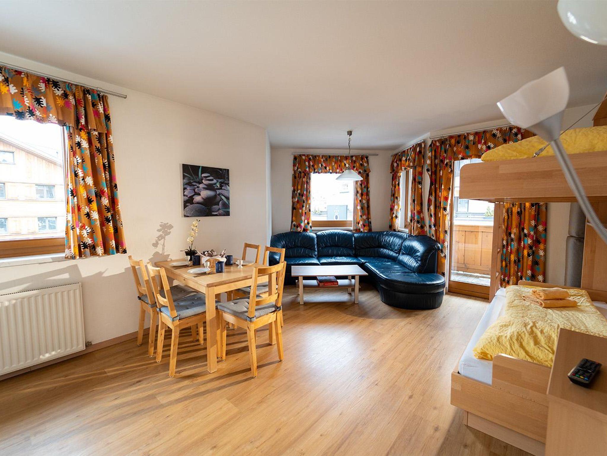. alle Komfort Apartments verfügen über einen Balkon entweder zur sonnigen süd-west Seite oder zur ruhigen Dorfseite mit Bergpanorama'