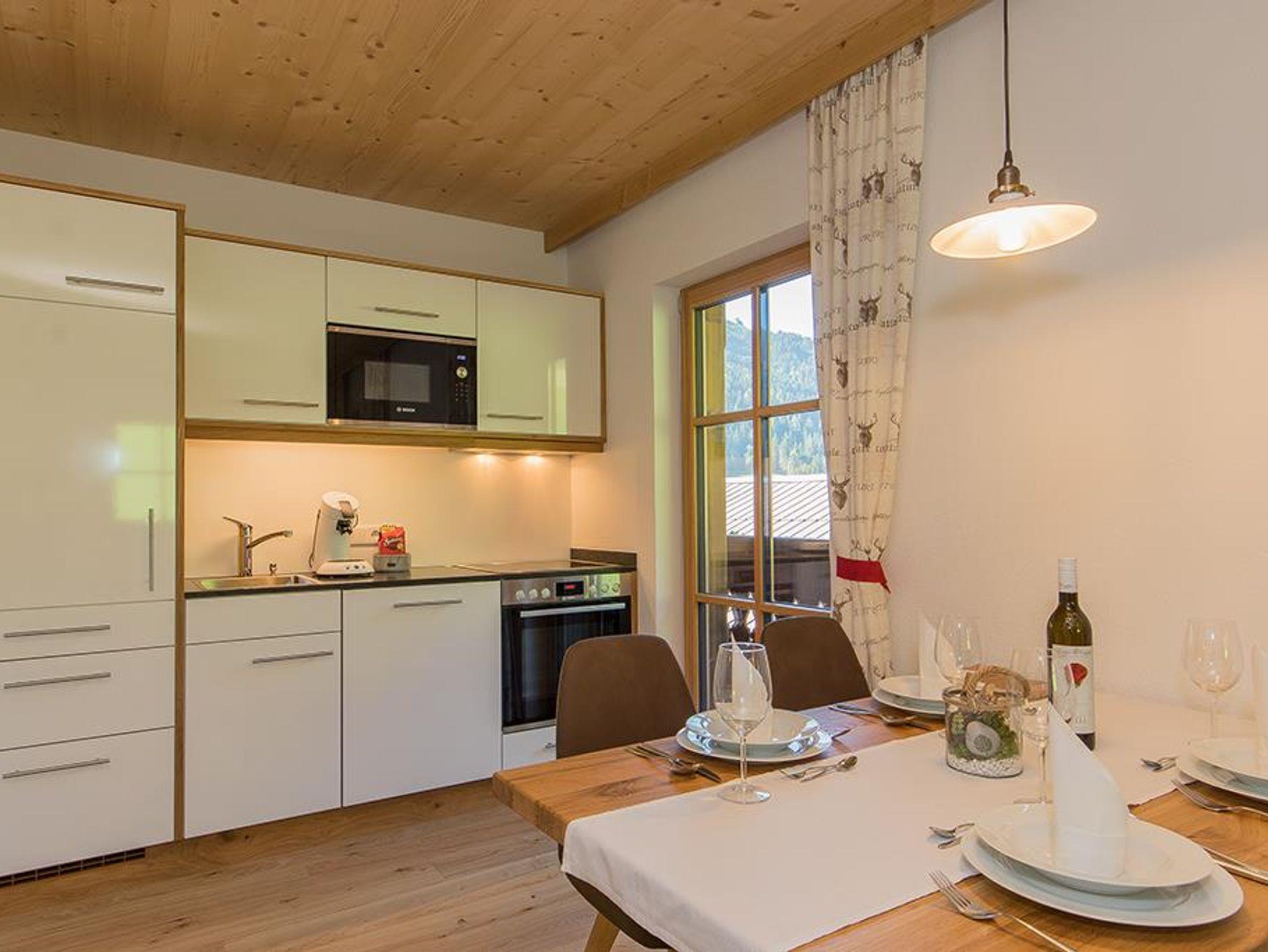 • komplett ausgestattete Küche mit Kaffeemaschine, Wasserkocher, Mikrowelle, Herd mit Backrohr & Geschirrspüler