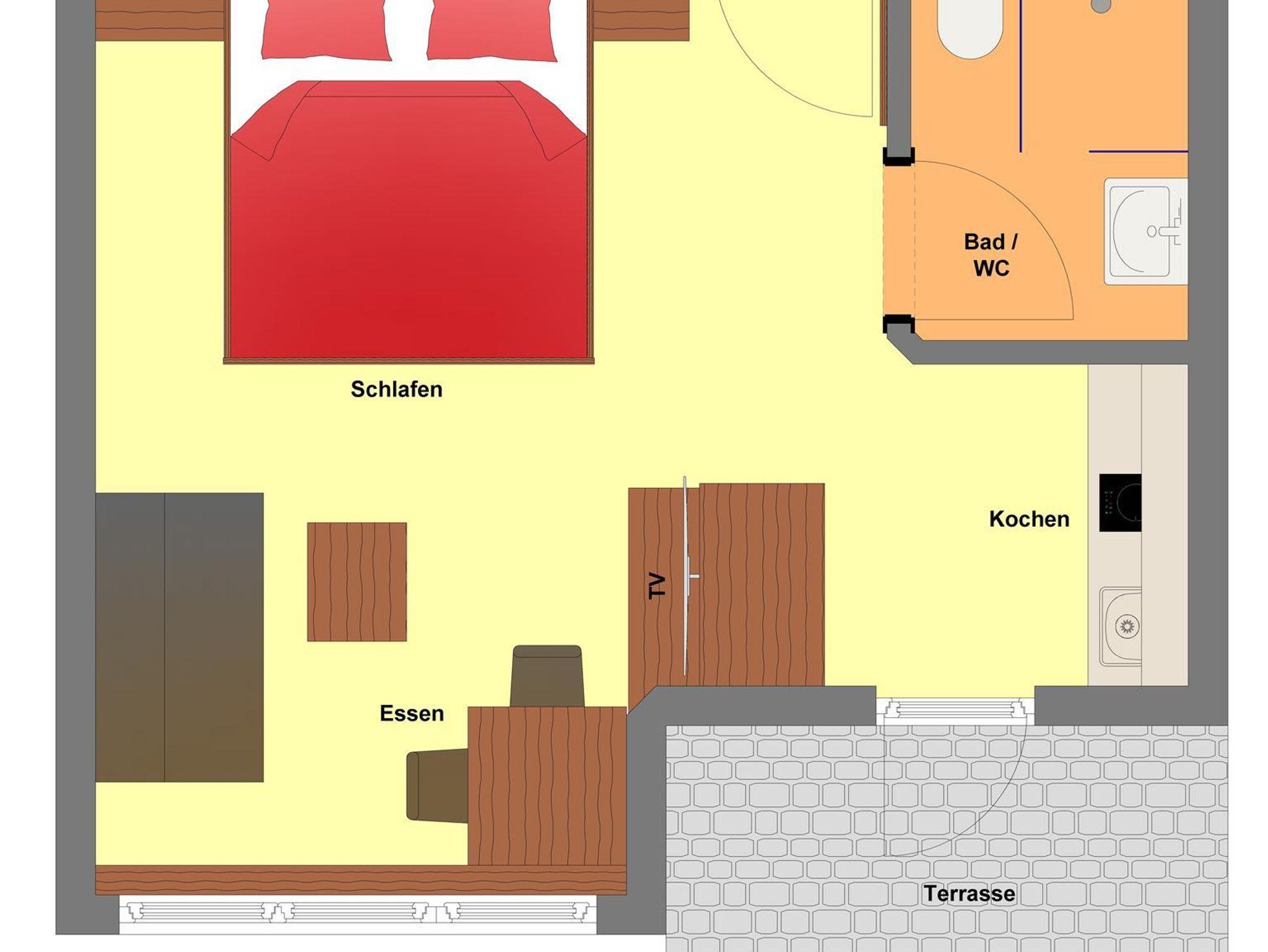 Unser Appartement A1 ist ein schönes Einraumappartement mit Dusche / WC. Es bietet neueste und qualitativ hochwertige Einrichtung und Ausstattung, die Ihren Urlaub erstklassig macht. Ein vorhandener Küchenblock erweitert die neu renovierte Wohnung.