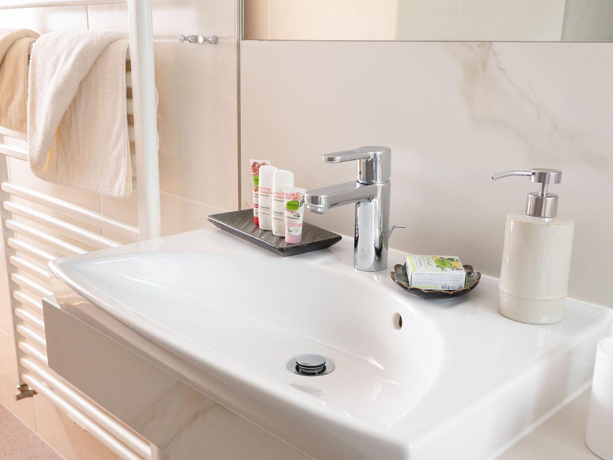 Zur Ausstattung gehören außerdem WLAN, Kabel-TV, Radio, Haarfön und ein Möbelsafe.