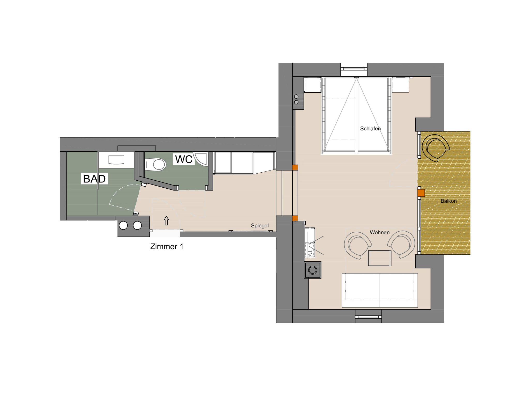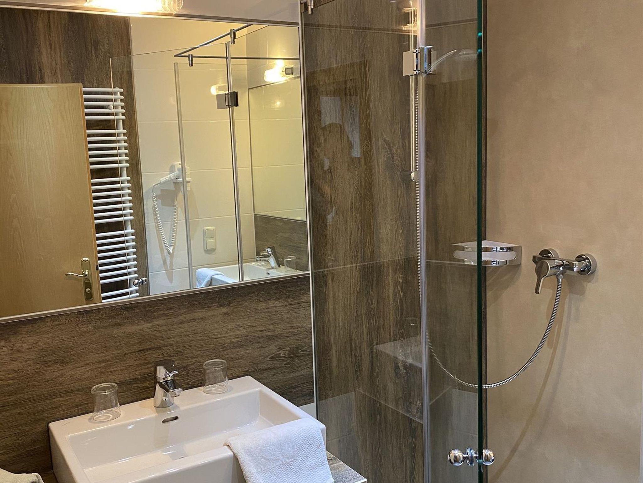 Schöne Doppelzimmer mit Dusche und WC, welche sich nicht nur für zwei Personen eignen, sondern auch zu 3.möglich ist. ( Schlafcouch)