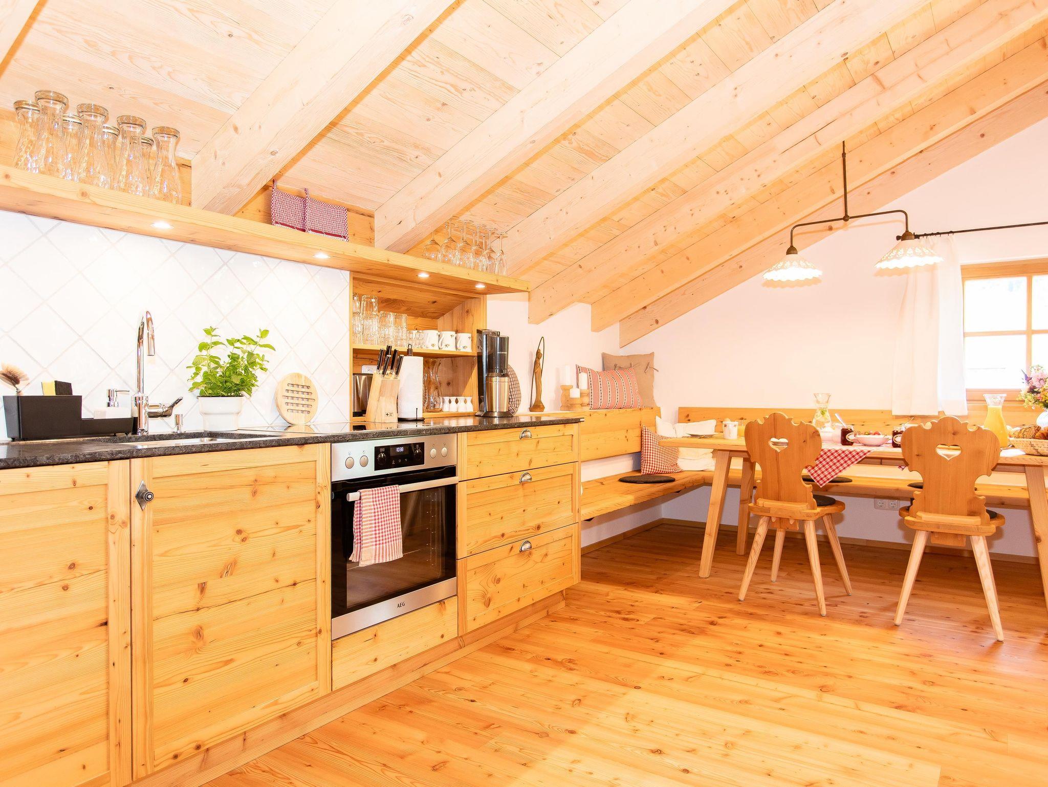 Unsere große Ferienwohnung Hochkönig ist mit ihren 83qm ideal für Gruppen oder große Familien. Bis zu 8 Personen finden Platz in dieser lichtdurchfluteten Ferienwohnung am Lankmannhof in Maria Alm. 2 Schlafräume mit je einem Doppelbett und einem Einzelbett, sowie eine Schlafkomfort-Couch in Bettqualität für 2 Personen finden sich im großzügig geschnittenen Wohn-Esszimmer mit Schwedenofen. Die vollausgestattete Küchenzeile bietet alles was es zu einem gelungenen Urlaubs-Essen braucht. In der gemütlichen Ess-Ecke mit großem Holztisch lässt es sich verweilen. Bad mit Regendusche und Doppelwaschbecken, sowie Handtuchwärmer und das separate WC runden die Ausstattung im traditionellen Alpin-Charme ab. Allergikerfreundliche Betten.