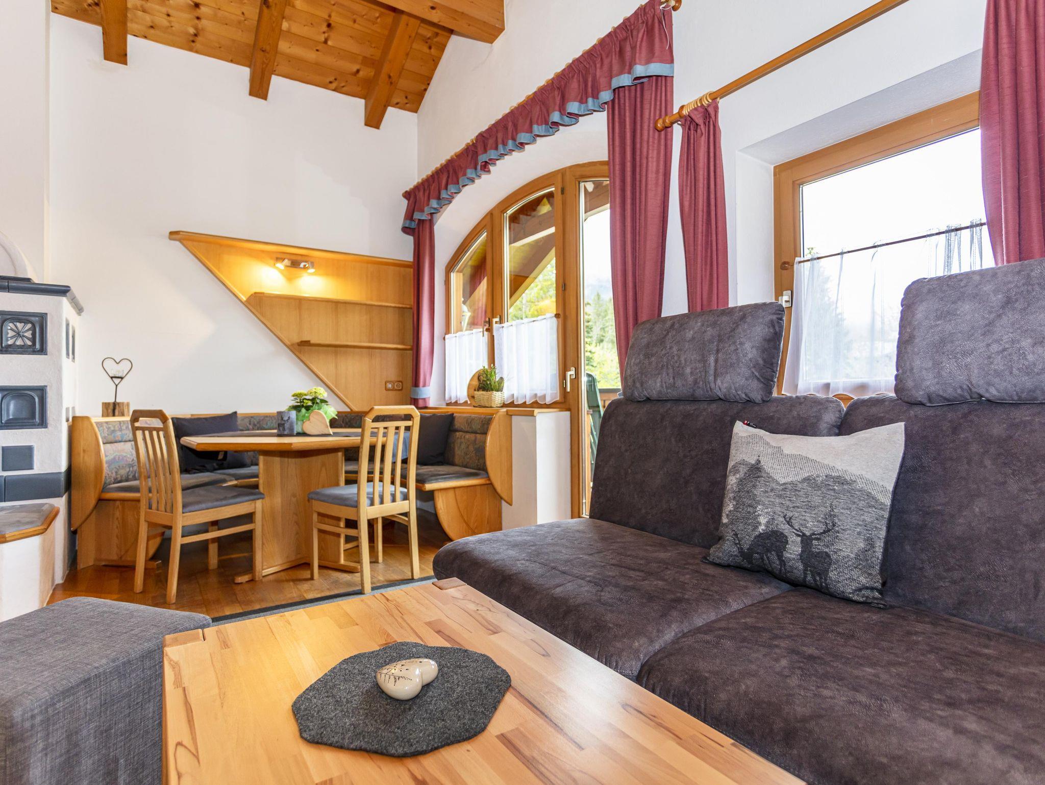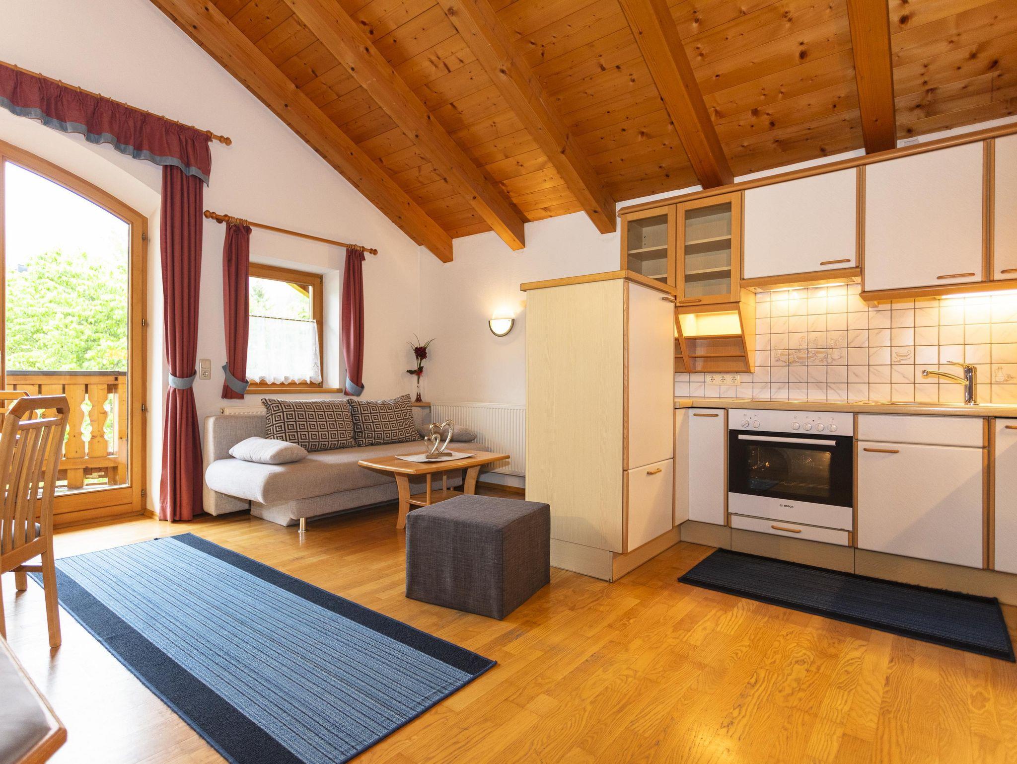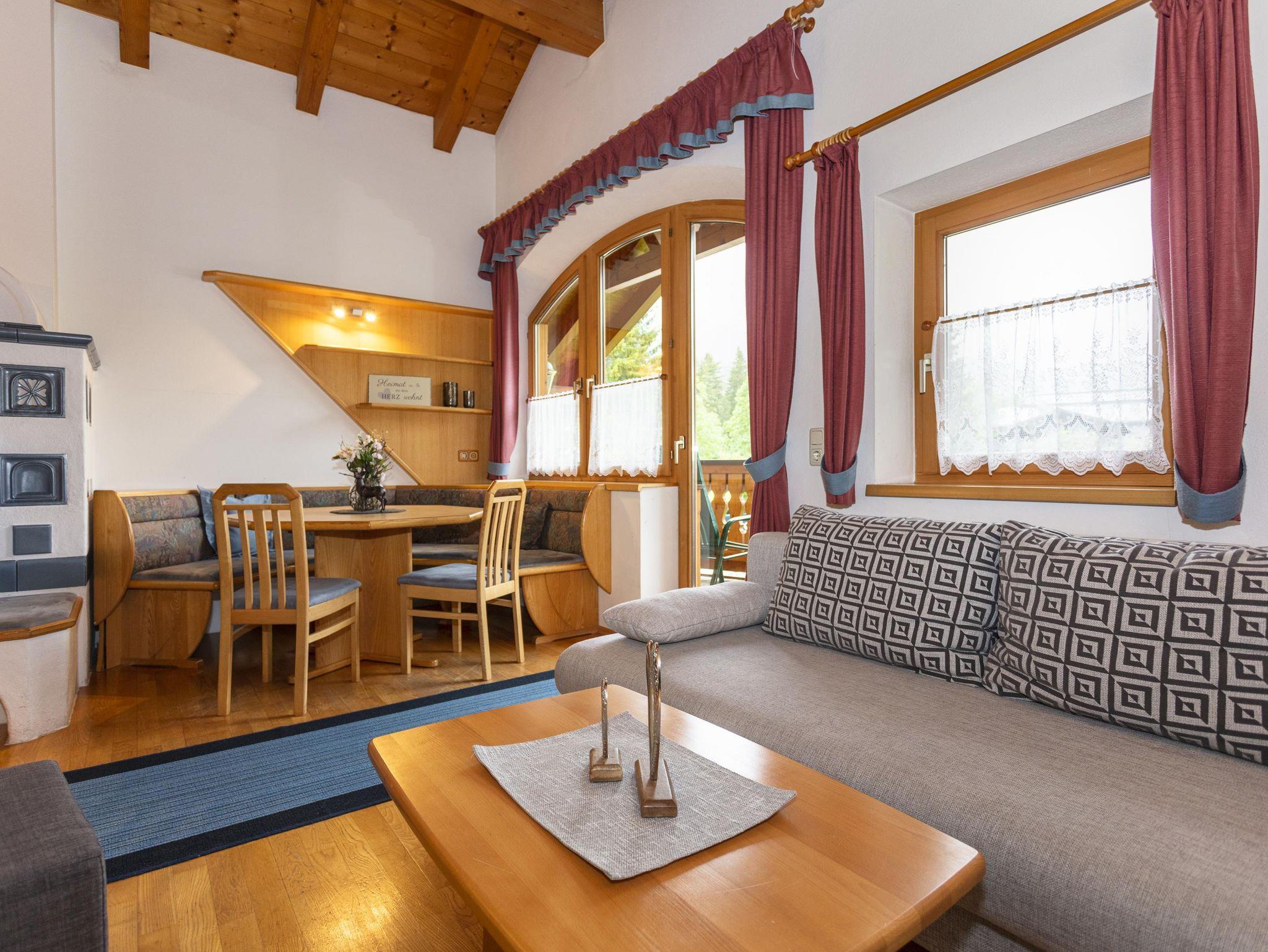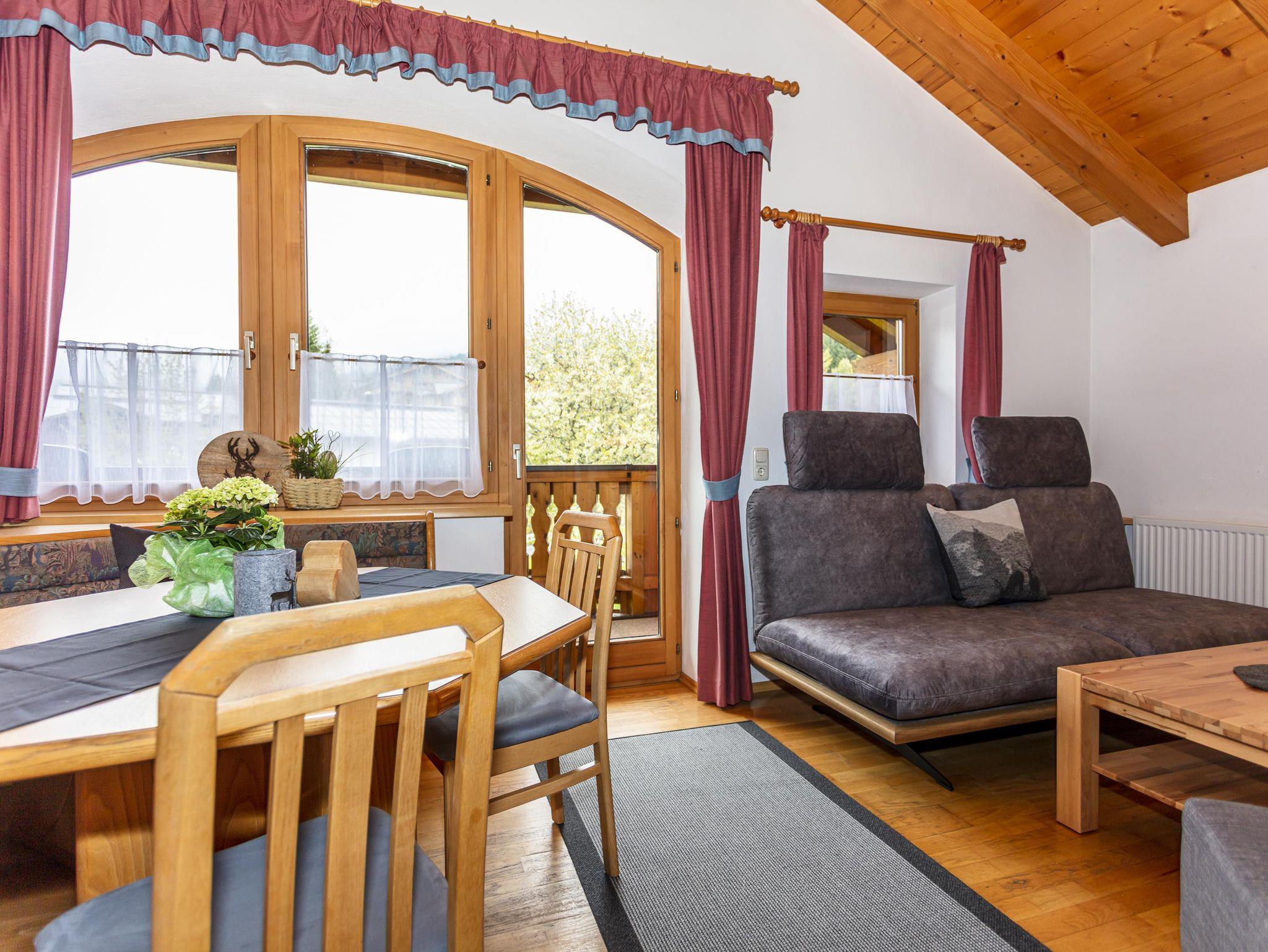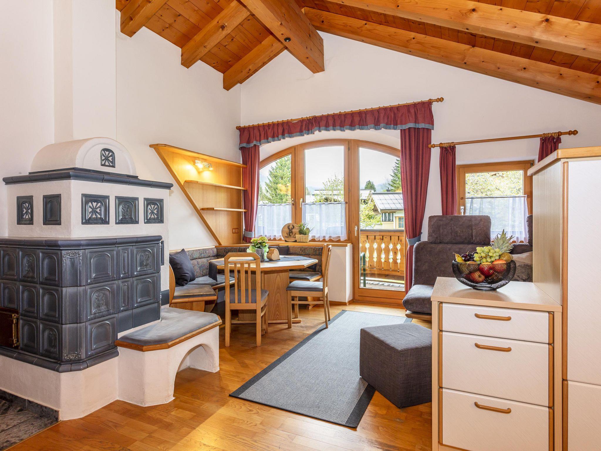 Komfortable Ferienwohnung für 2-5 Personen,gemütliche Wohnatmosphäre durch sichtbaren Dachstuhl und Kachelofen,geräumige Wohnküche mit runder Sitzecke und Couch,2Schlafzimmer,Dusch-Badewanne,separate Toilette,Kabel TV,Radio und eigenen Balkon mit Balkonmöbel. Sollten Sie zusätzliche Schlafplätze benötigen, können Sie hier ein Doppelzimmer oder Dreibettzimmer dazu buchen.