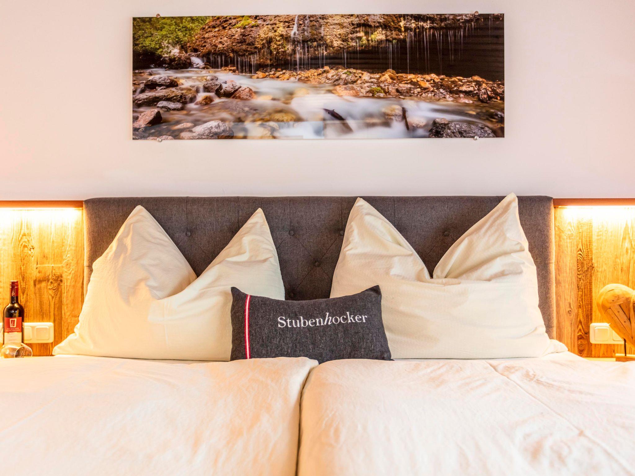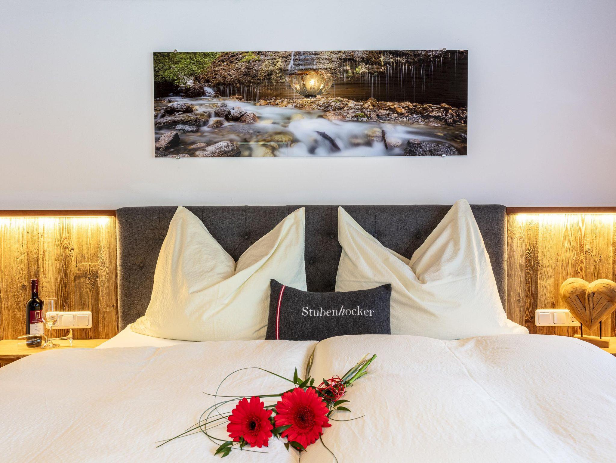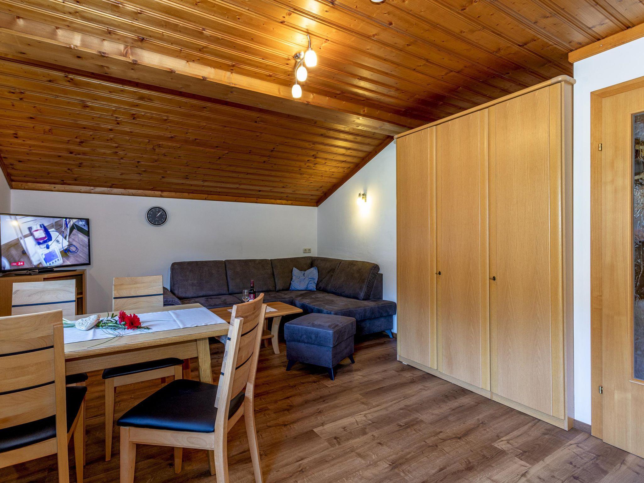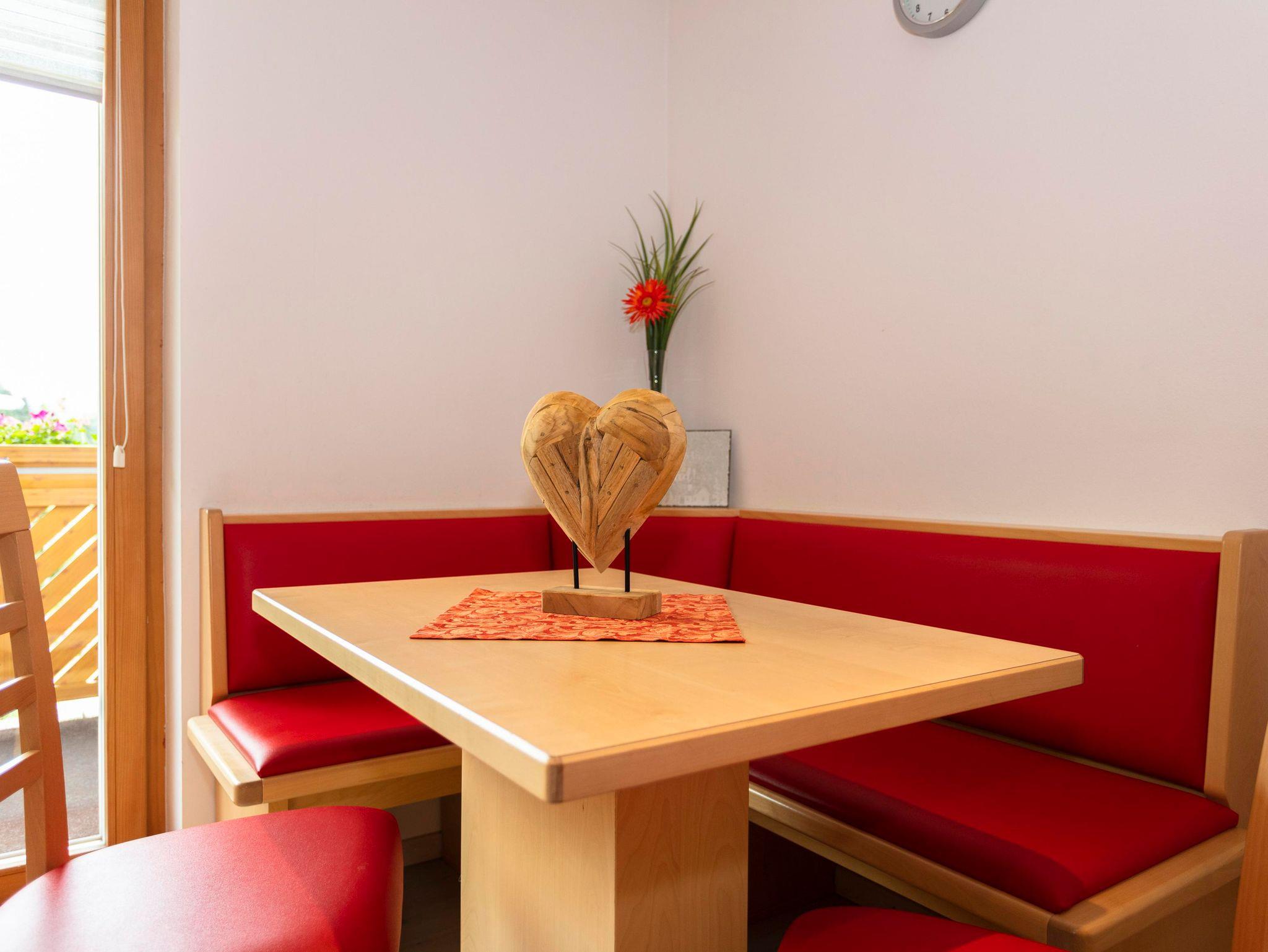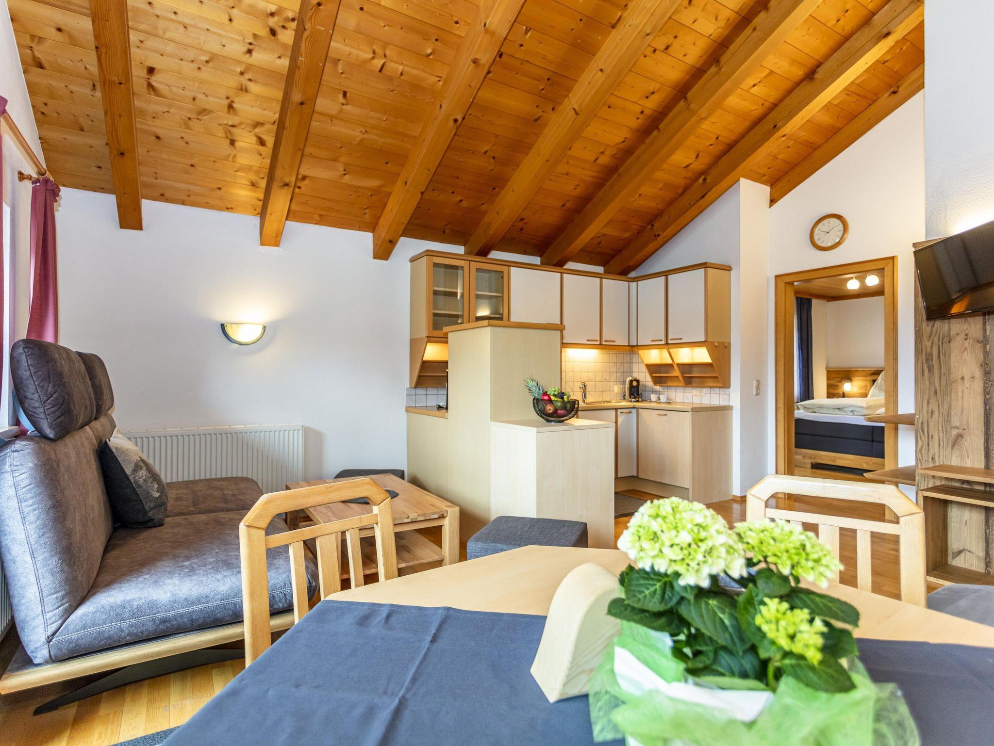 Komfortable Ferienwohnung für 2-5 Personen,gemütliche Wohnatmosphäre durch sichtbaren Dachstuhl und Kachelofen,geräumige Wohnküche mit runder Sitzecke und Couch,2Schlafzimmer,Dusch-Badewanne,separate Toilette,Kabel TV,Radio und eigenen Balkon mit Balkonmöbel. Sollten Sie zusätzliche Schlafplätze benötigen, können Sie hier ein Doppelzimmer oder Dreibettzimmer dazu buchen.