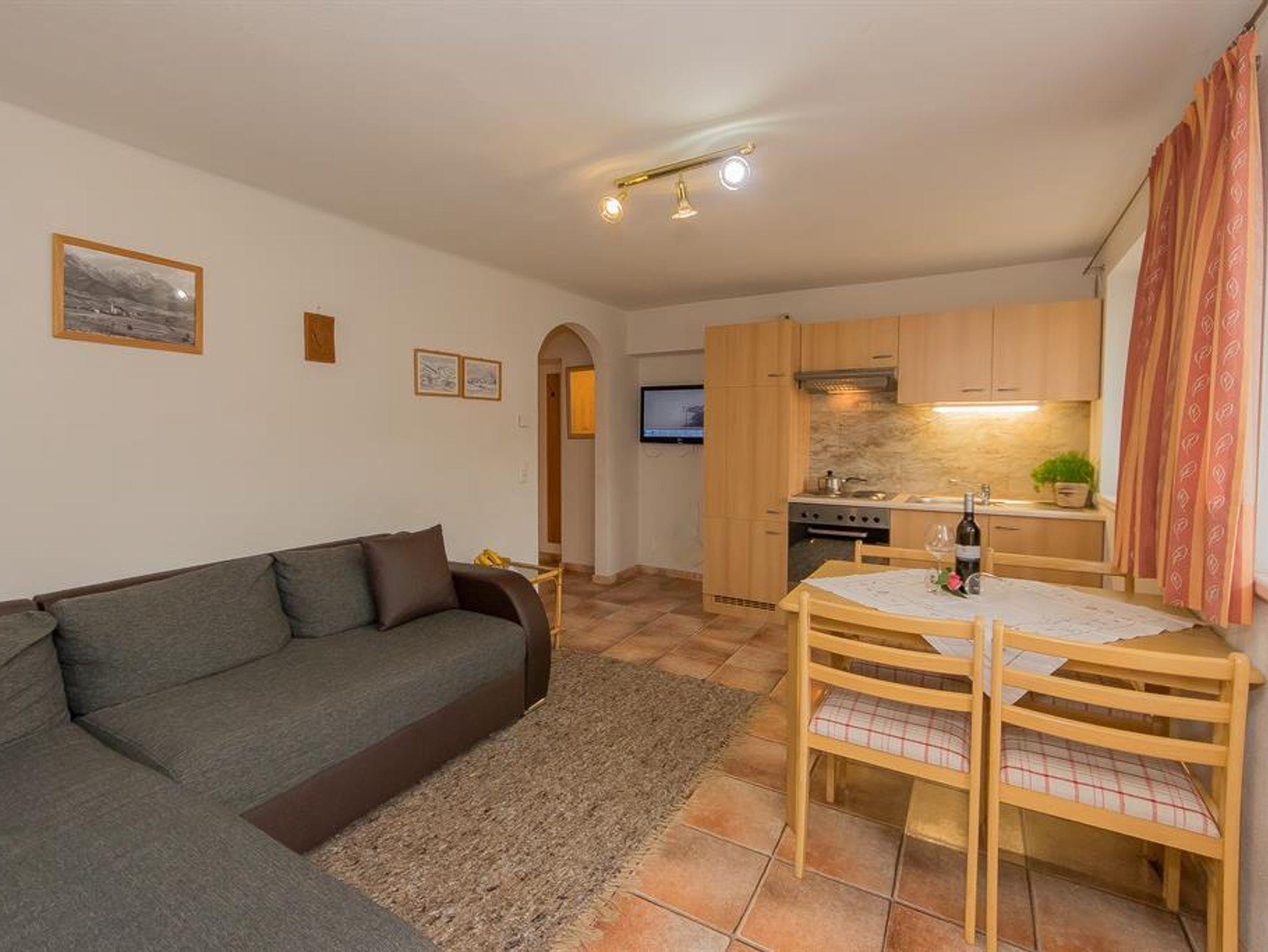 Schönes Appartment mit 2 getrennten Schlafräumen für max. 4 Personen. Badezimmer mit Dusche. WC extra. W-Lan vorhanden. Wohnküche mit Sitzecke. Balkon Südost mit Blick auf unsernen Hausberg Natrun. Balkonsitzmöbel vorhanden.