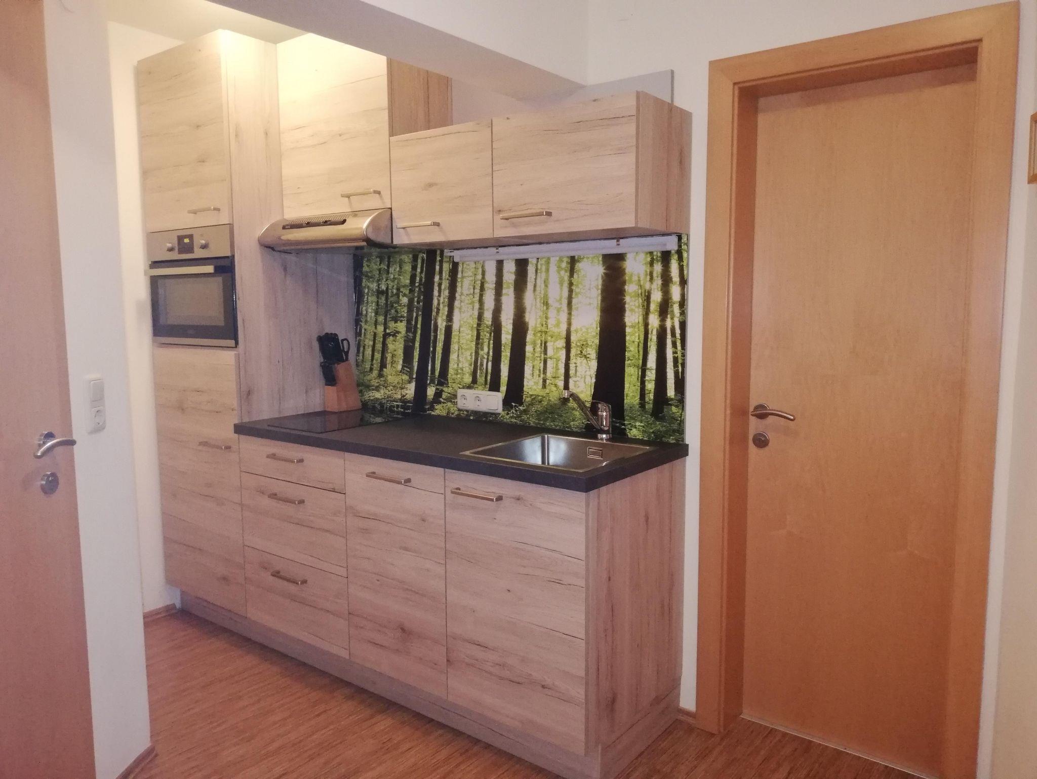 Küchen-Wohnbereich mit bequemer Schlafcouch 1,5x2 m, TV Flachbildschirm, gratis W-Lan.