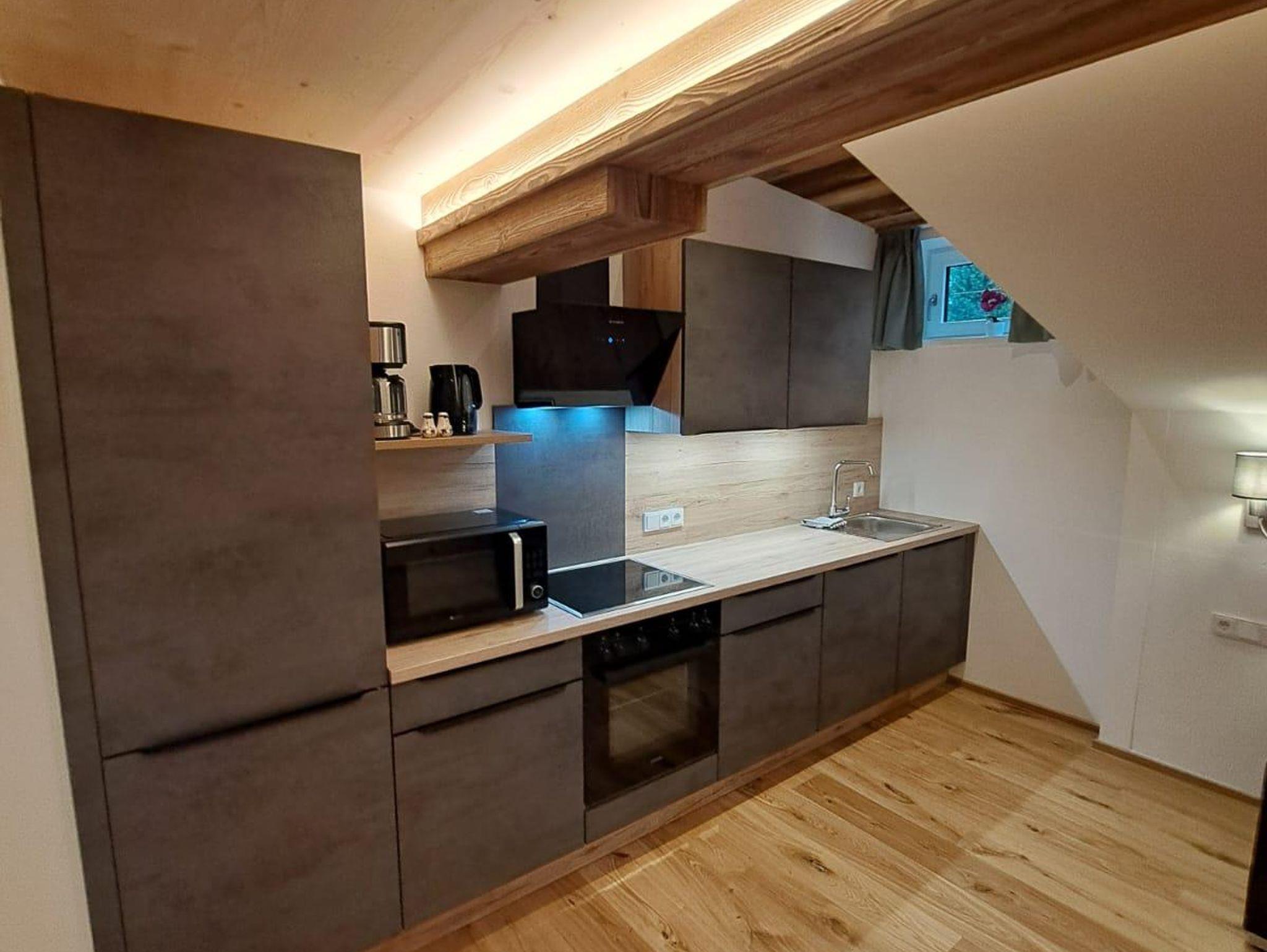Ferienwohnung mit einem Schlafzimmer in der Galerie oben, Wohnschlafraum- Küche mit Sitzecke, Bad/WC separat, Kabel-TV, Freier WLAN Zugang und Balkon.