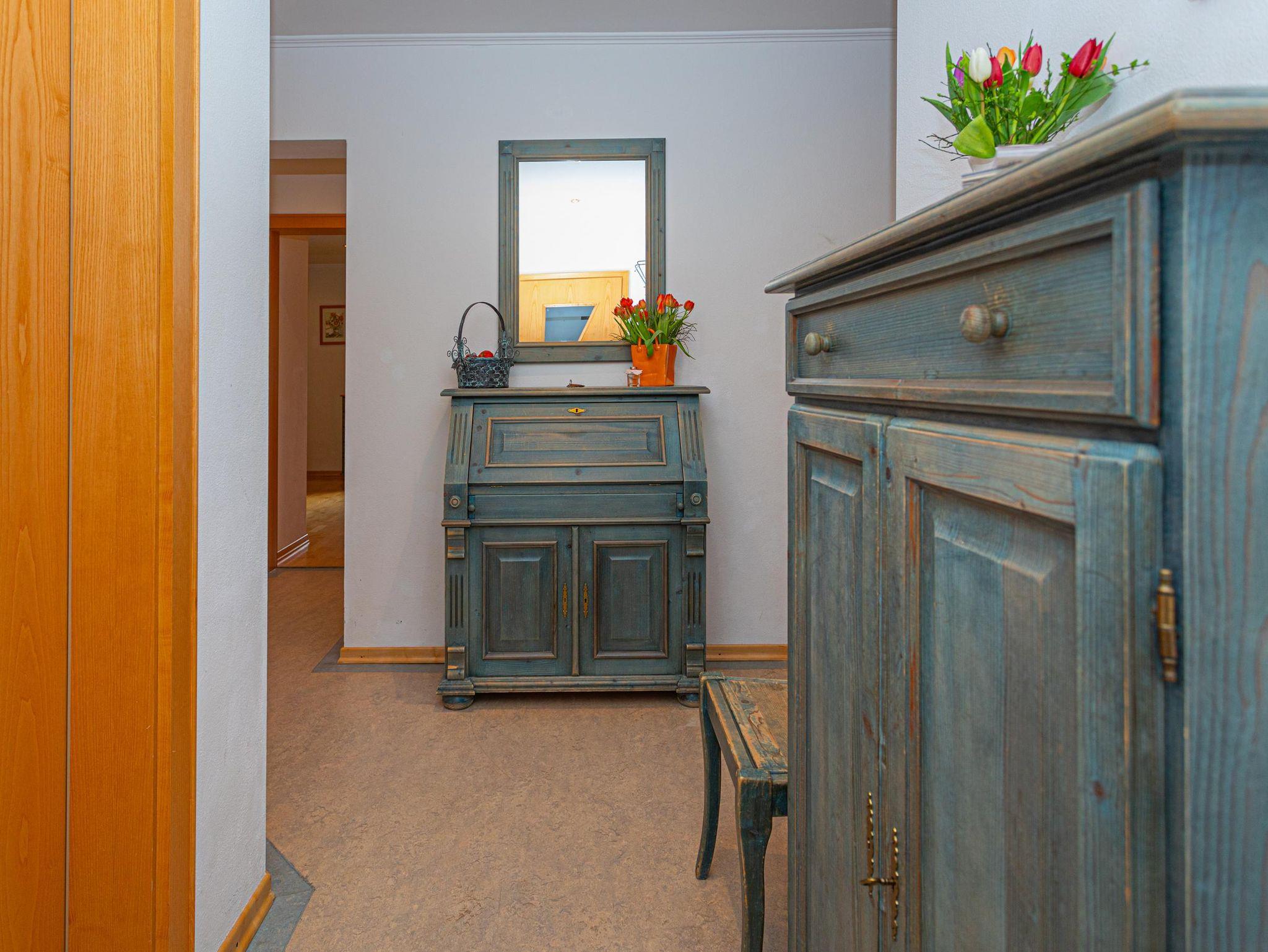 Exklusive Ferienwohnung mit 2 Doppel- und 1 Dreibettzimmer, Bad/Dusche, WC extra. Komplett ausgestattete Küchenzeile mit Mikrowelle, gemütlicher Essecke und angrenzendem Wohnbereich mit Kachelofen, Hifi-Anlage, gr.Fernseher, Internet. Südbalkon.