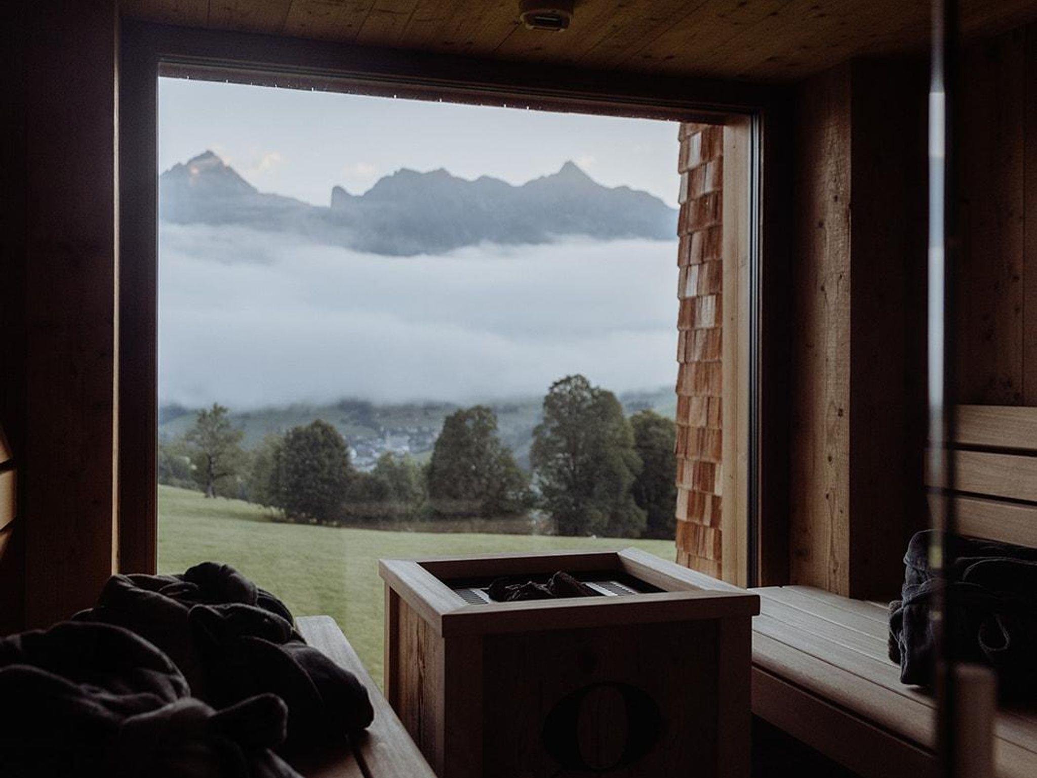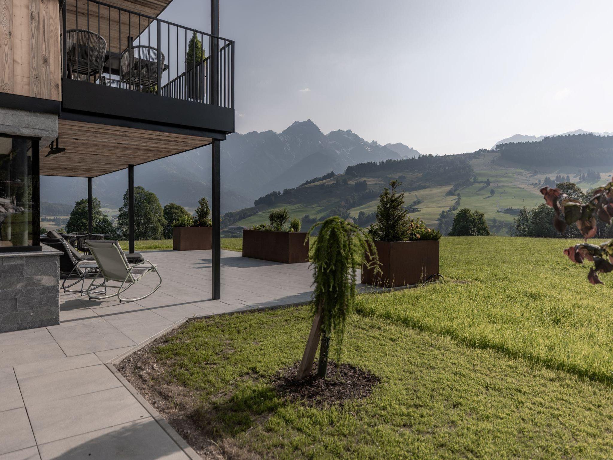 Finde Ruhe und Entspannung im Kräutergarten. Der Ausblick aus der Panoramasauna und -badewanne zeigt die schönsten Seiten der Region Hochkönig.