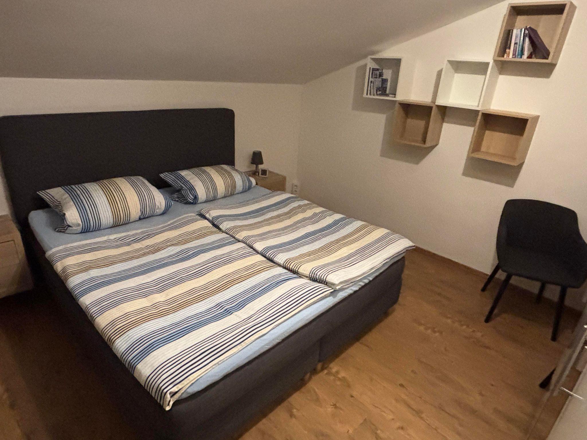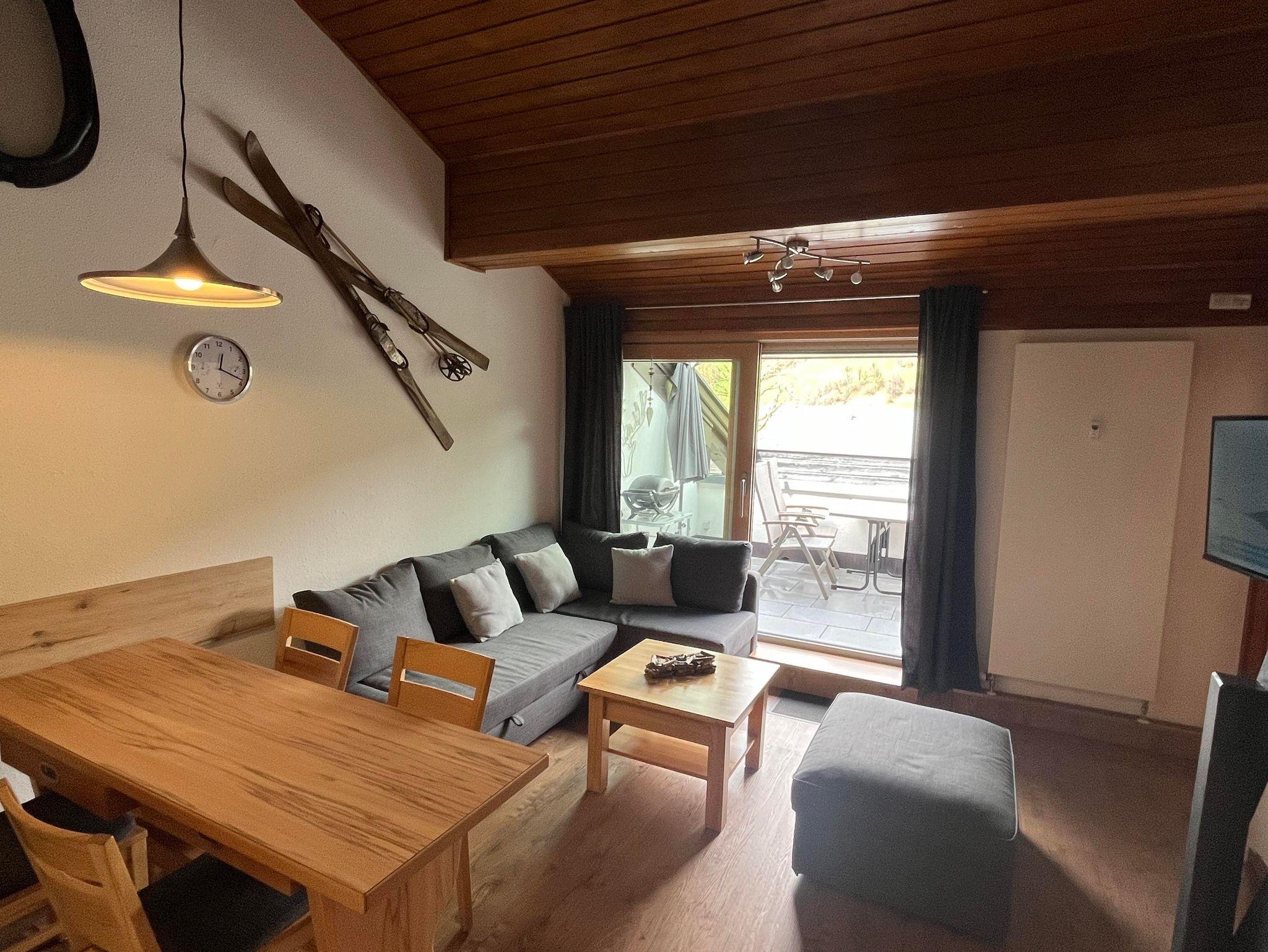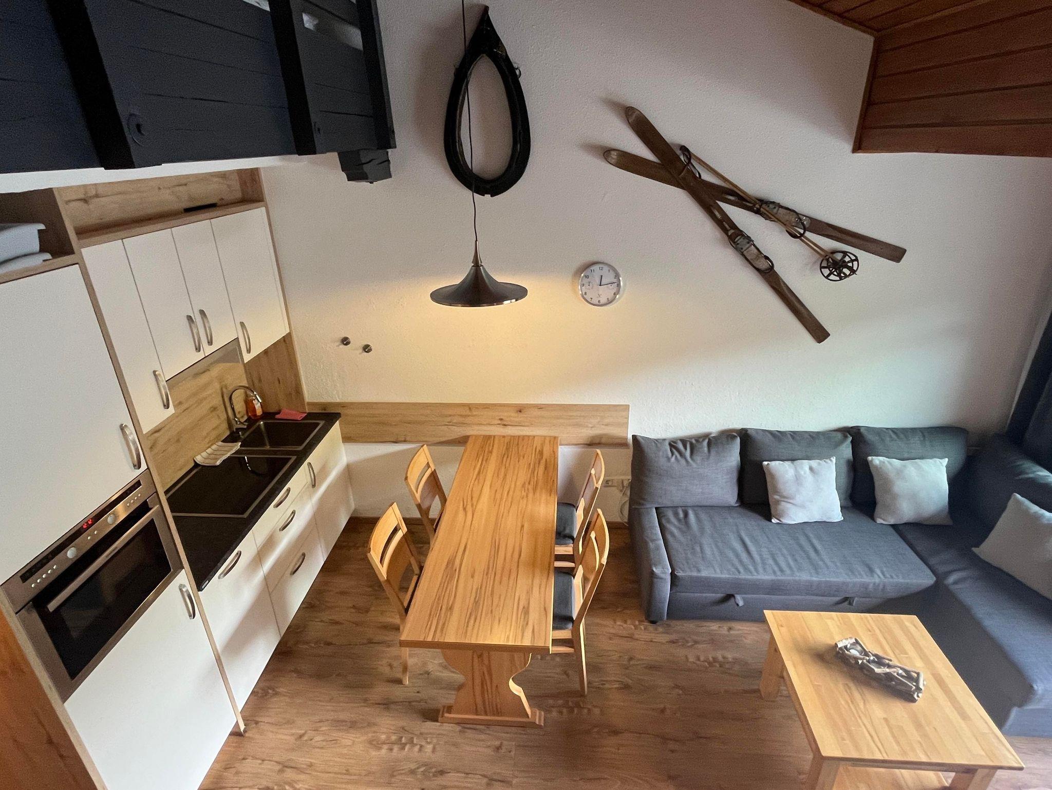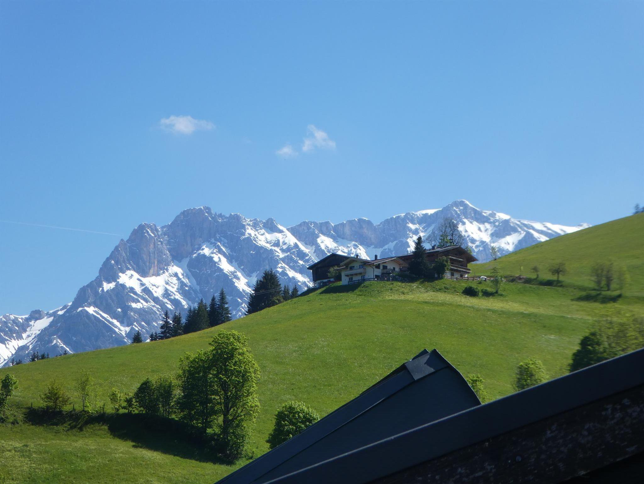 Schöne Ferienwohnung mit wundervollem Blick von der Dachterrasse auf das Steinerne Meer und auf das Hochkönig-Gebirgsmassiv. Die Wohnung verfügt über 1 Schlafzimmer mit Doppelbett und einen Wohnraum mit Sofa, TV, Küchenzeile und Essecke. Auf der offenen Galerie im Wohnraum befinden sich zwei Einzelbetten. Bad/WC, Diele mit Garderobe und Schränken.