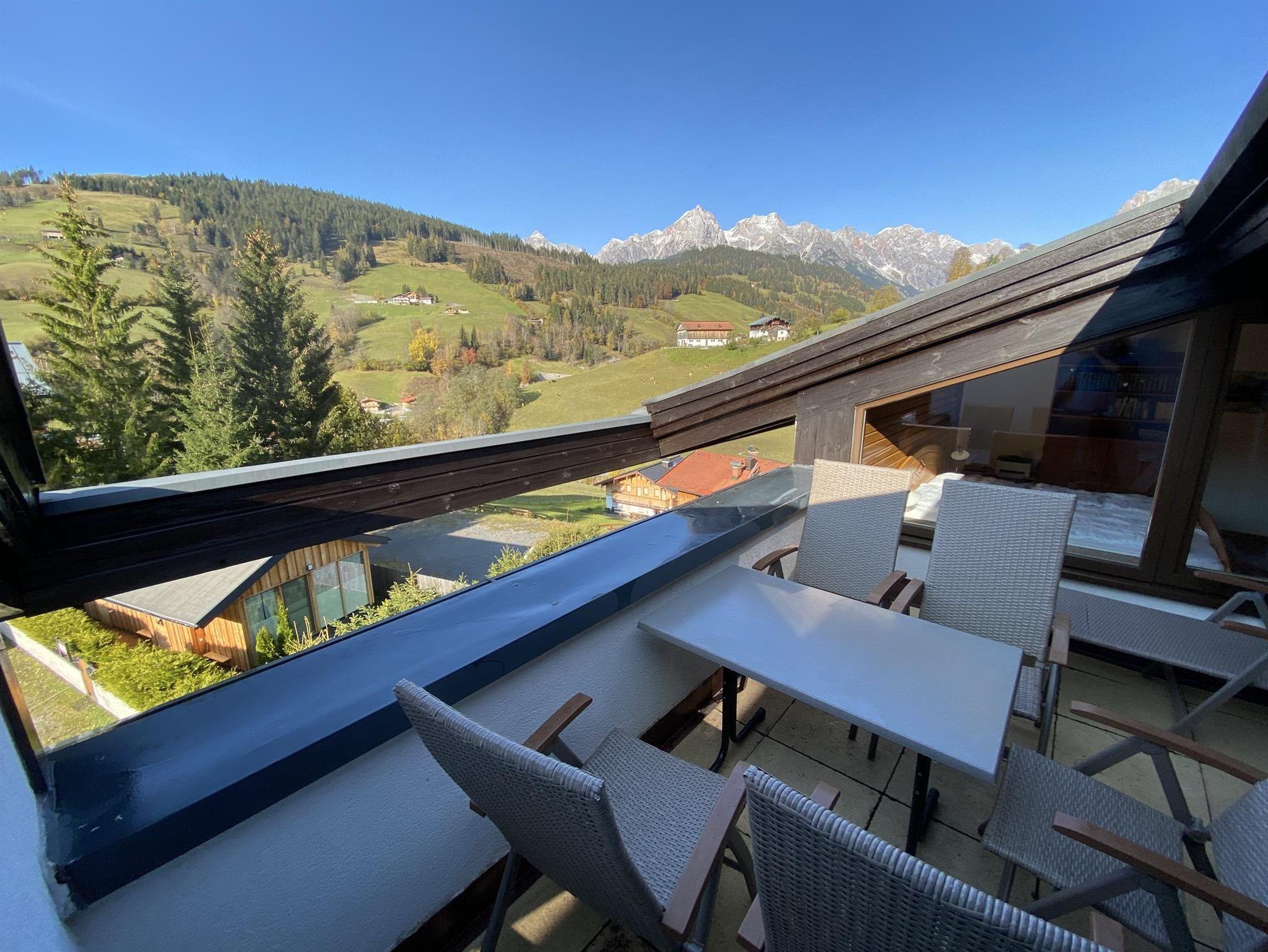 Im Dachgeschoss das Appartement 'Selbhorn' mit traumhaftem Ausblick von der Dachterrasse und im Erdgeschoss das Appartement 'Aberg' mit schöner großer Terrasse.