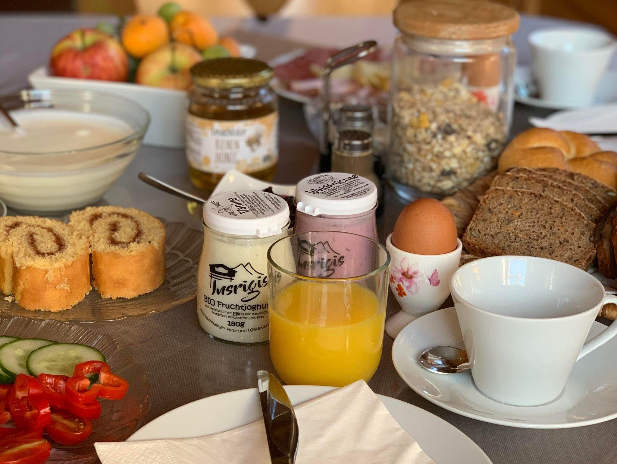 Sie starten den Tag mit einem vielfältigen, gesunden Frühstück mit frischen Produkten aus eigener Landwirtschaft.