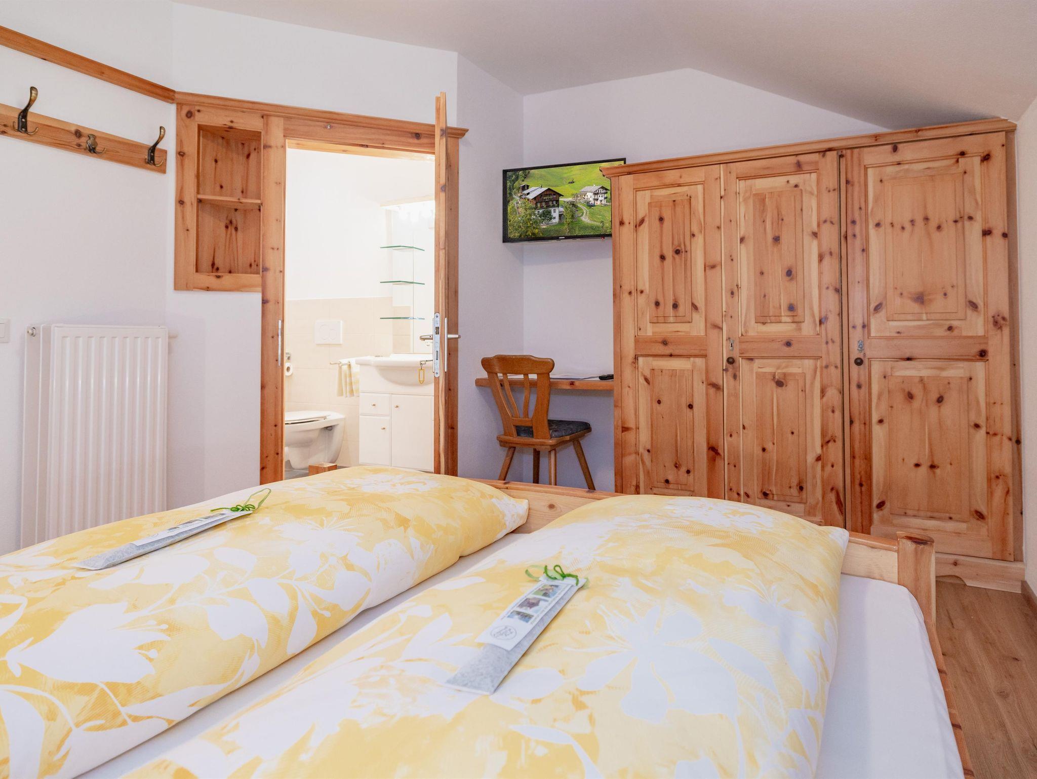 Ins Kärntnerland blickend liegt das Zimmer KÄRNTEN. Ein Doppelbettzimmer mit großem Kleiderschrank, Garderobe, Bücherregal, TV, und eigenem DU/WC. Kein Balkon. Die Morgensonne weckt Sie zeitig für Ihre nächsten Abenteuer.