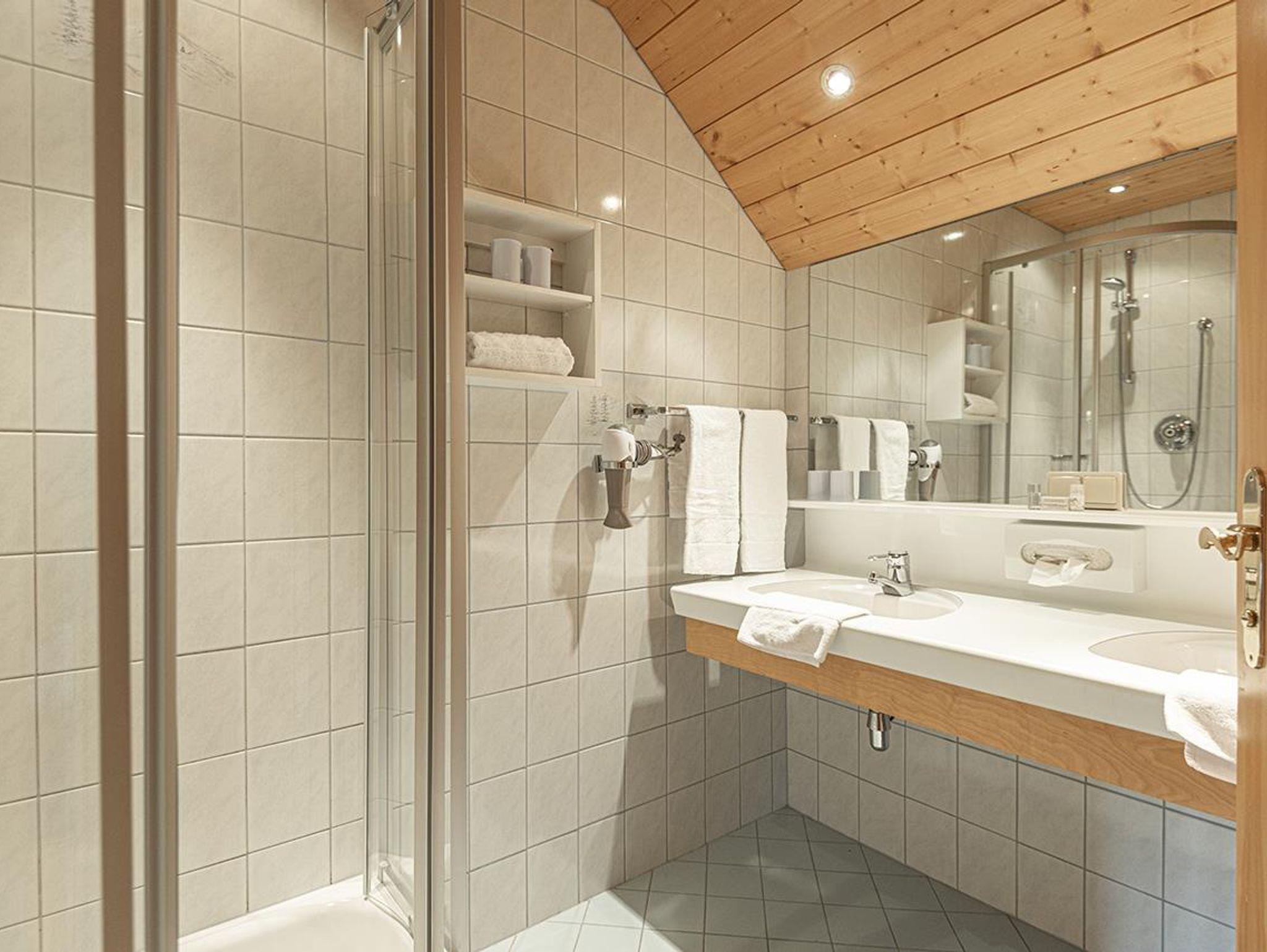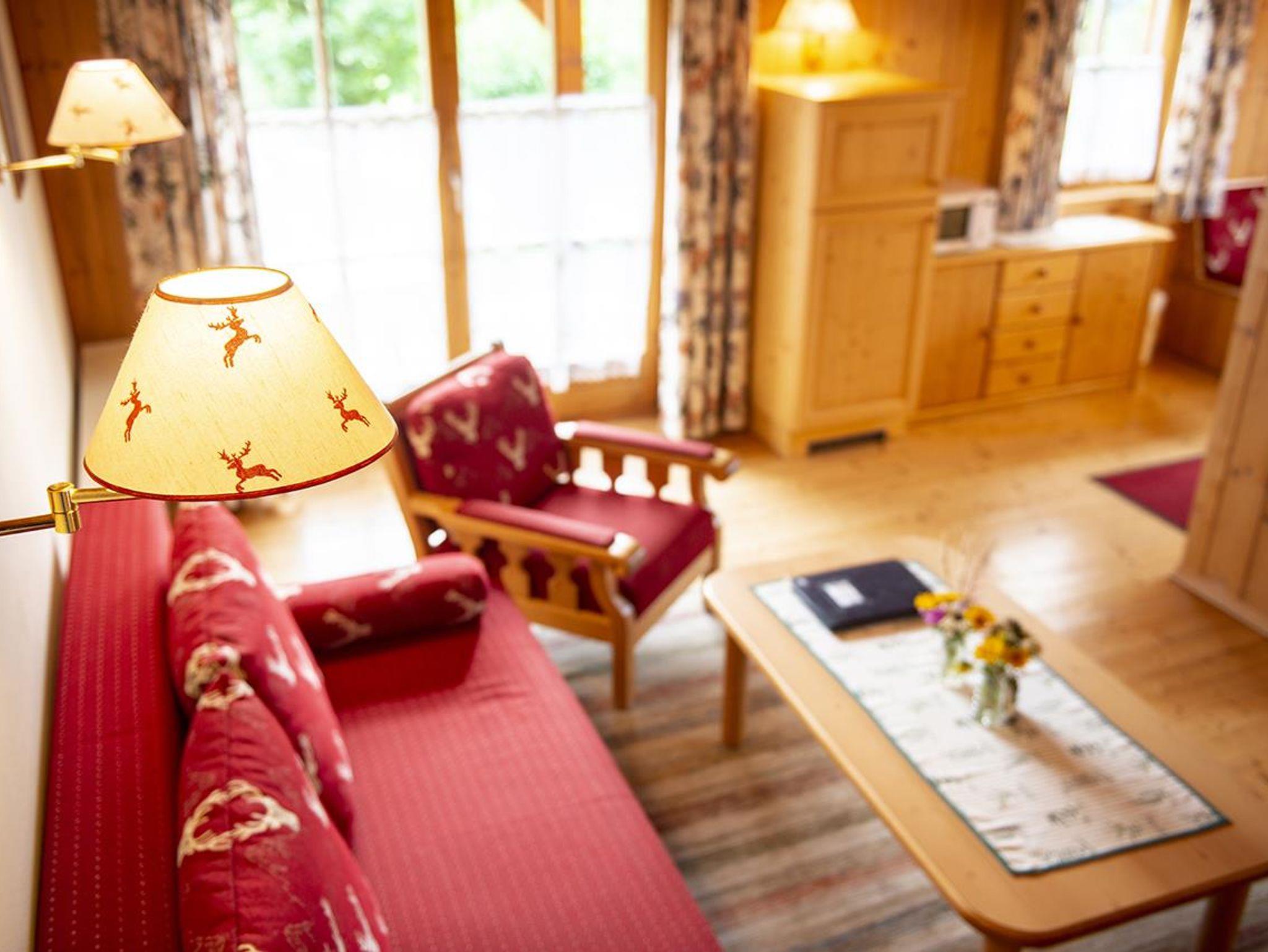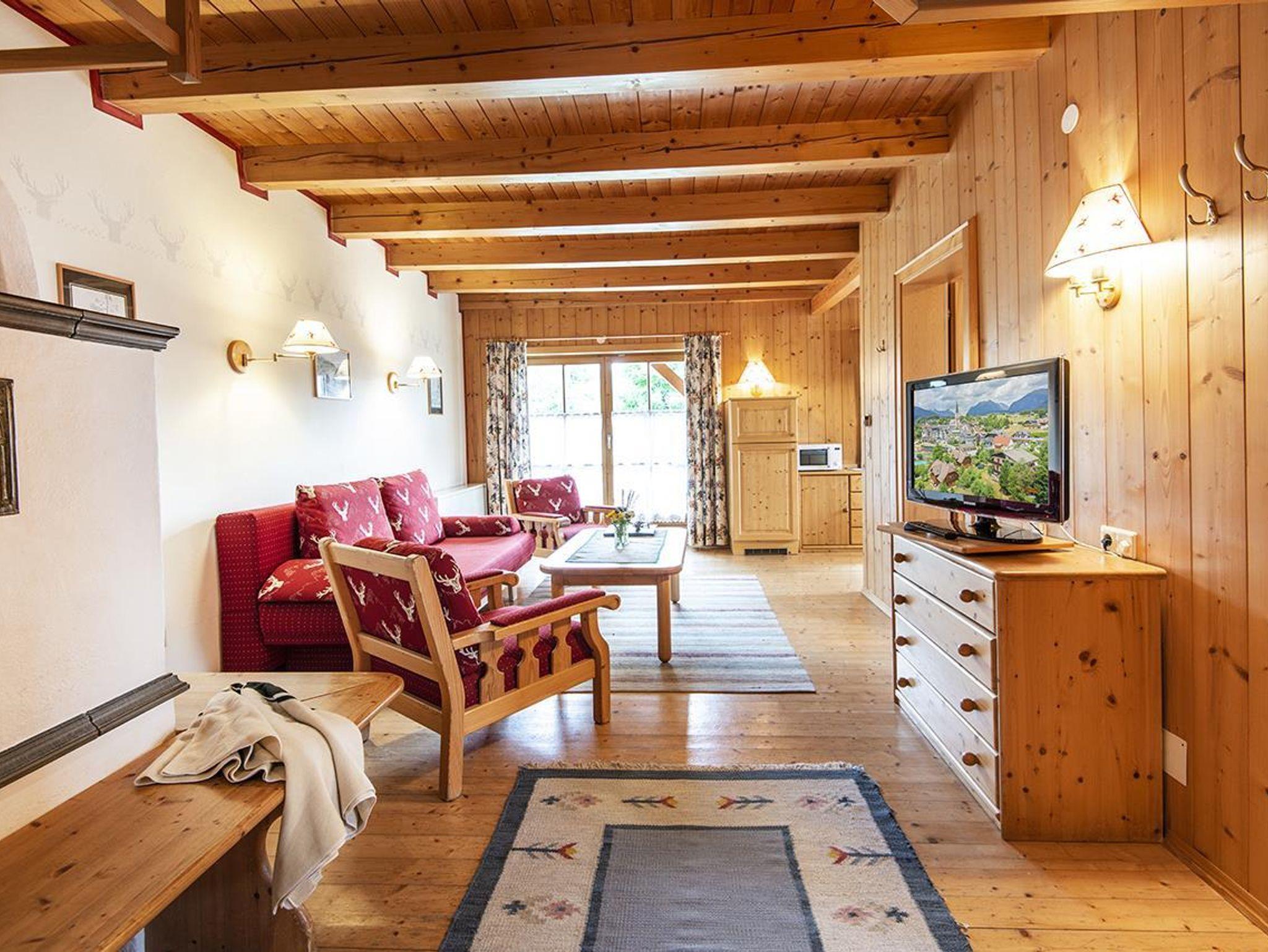 2 getrennte Schlafzimmer (1 x Doppelbett und 1 x zwei getrennte Betten), ein gemütlicher Wohnraum mit Sitzgarnitur/Couch (ausziehbar für die 5. und 6. Person), Kachelofen, Flatscreen-Kabel-TV, W-LAN, Zimmersafe, Radiowecker, Kochnische (2 Ceranfeld-Platten, Kühlschrank mit großem Gefrierfach, Geschirrspüler, Abwasch, Kaffeemaschine, Koch- und Essgeschirr, Mini-Backofen, Mikrowelle), Tisch-, Bett-, und Toilettwäsche, Esstisch, Loggia bzw. Terrasse mit Gartenmöbel, Badezimmer mit Doppelwaschbecken und Dusche, Haarfön, separates WC, Holzfußboden, Elektroheizung, Autoabstellplatz bzw. Garage (Einzelbox).