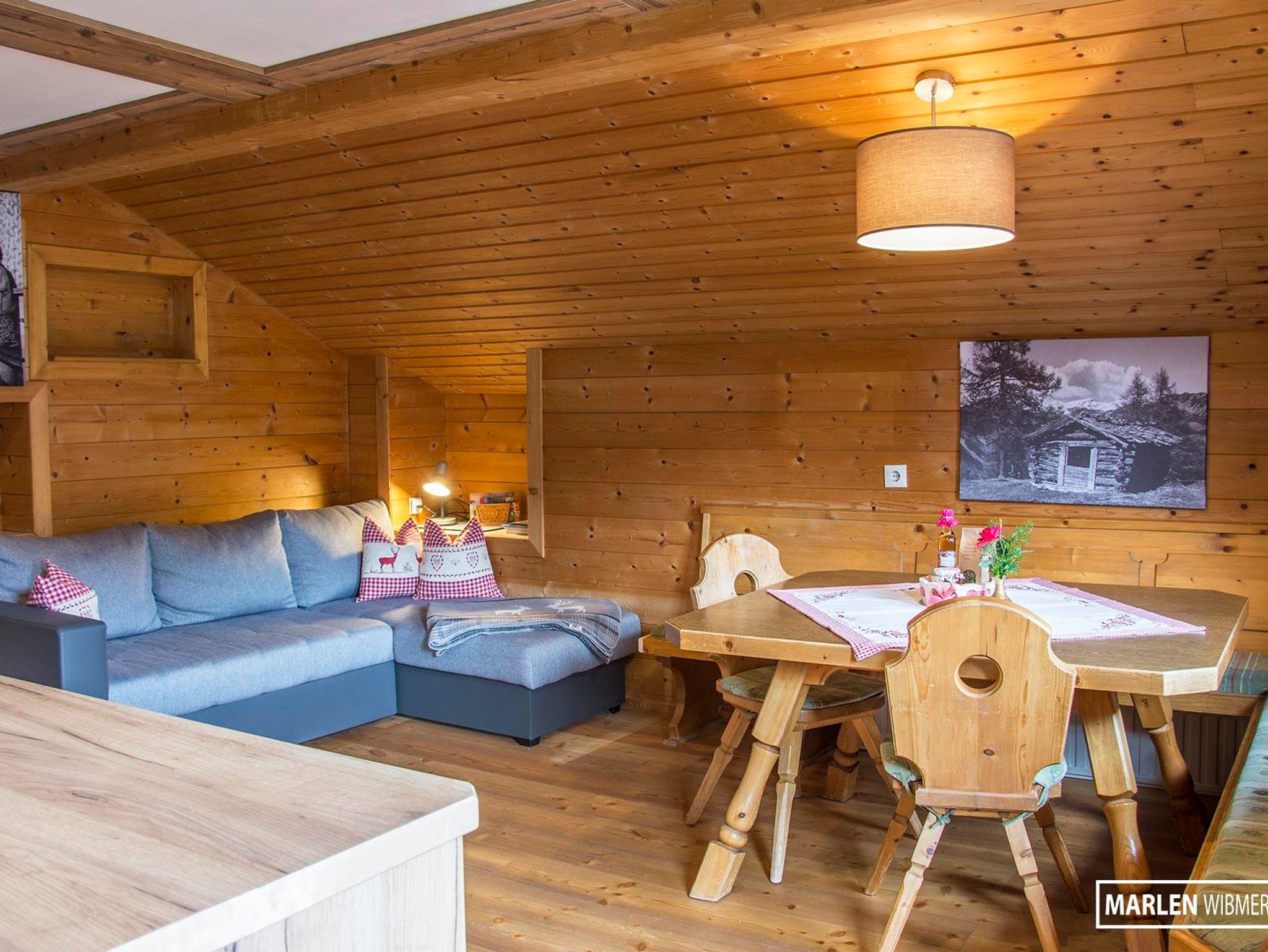 Fewo Matrei ist ausgestattet mit Wohnküche (neuem Küchenblock) u. Südbalkon, neu renovierter Dusche/WC, Doppelbettzimmer mit dahinterliegendem Dreibettzimmer, im rustikalen Stil mit viel Holz, Garderobe und Abstellraum. Koch-,u. Tafelgeschirr, sowie Handtücher, Föhn und Bettwäsche sind ausreichend vorhanden.
