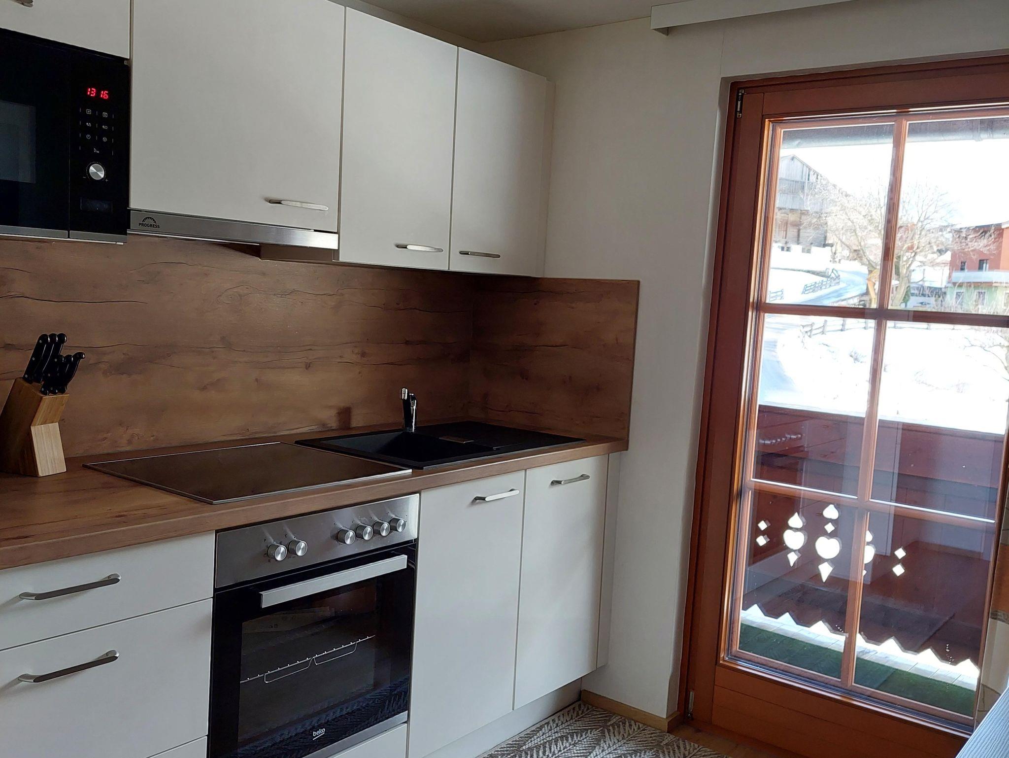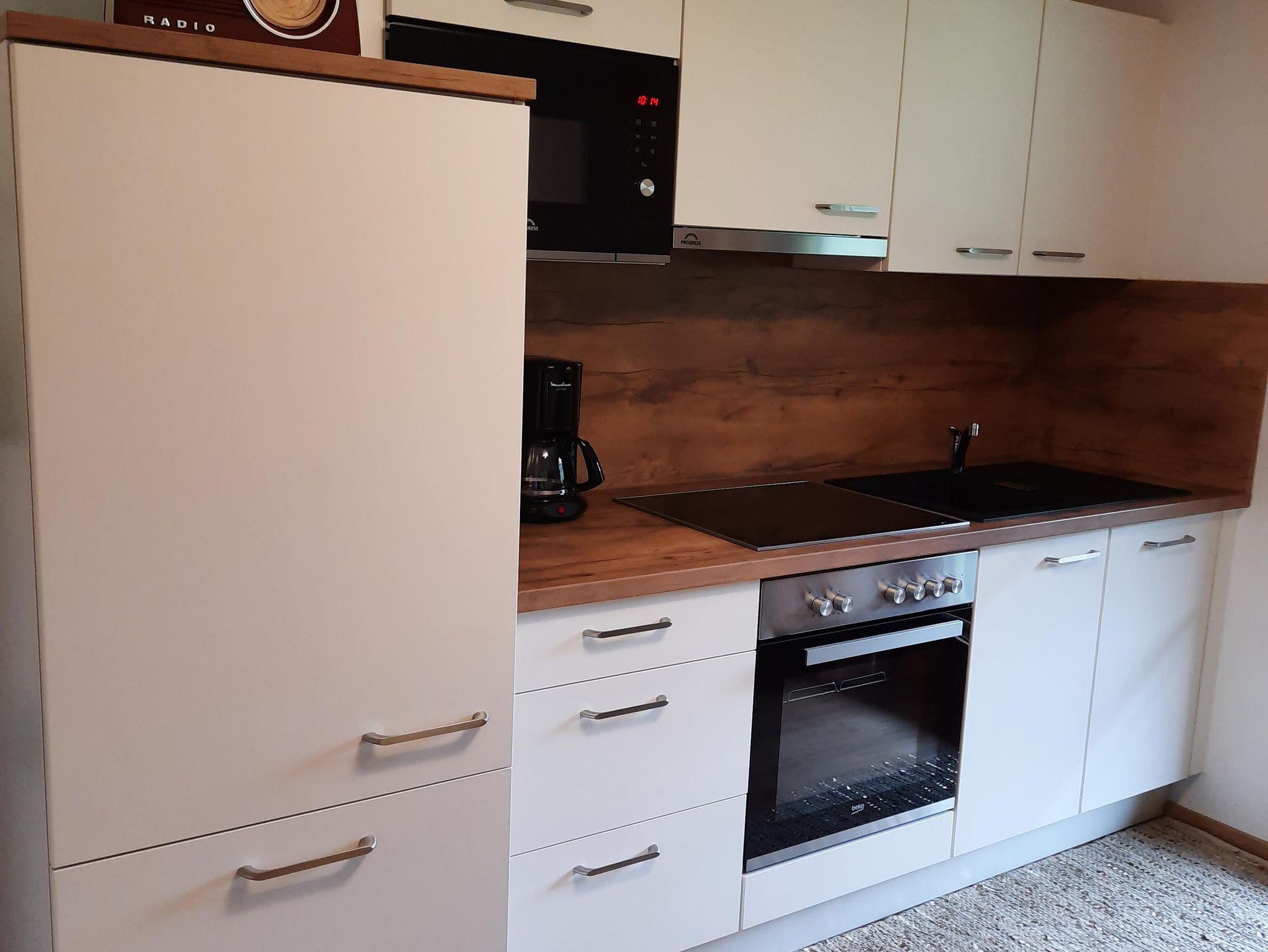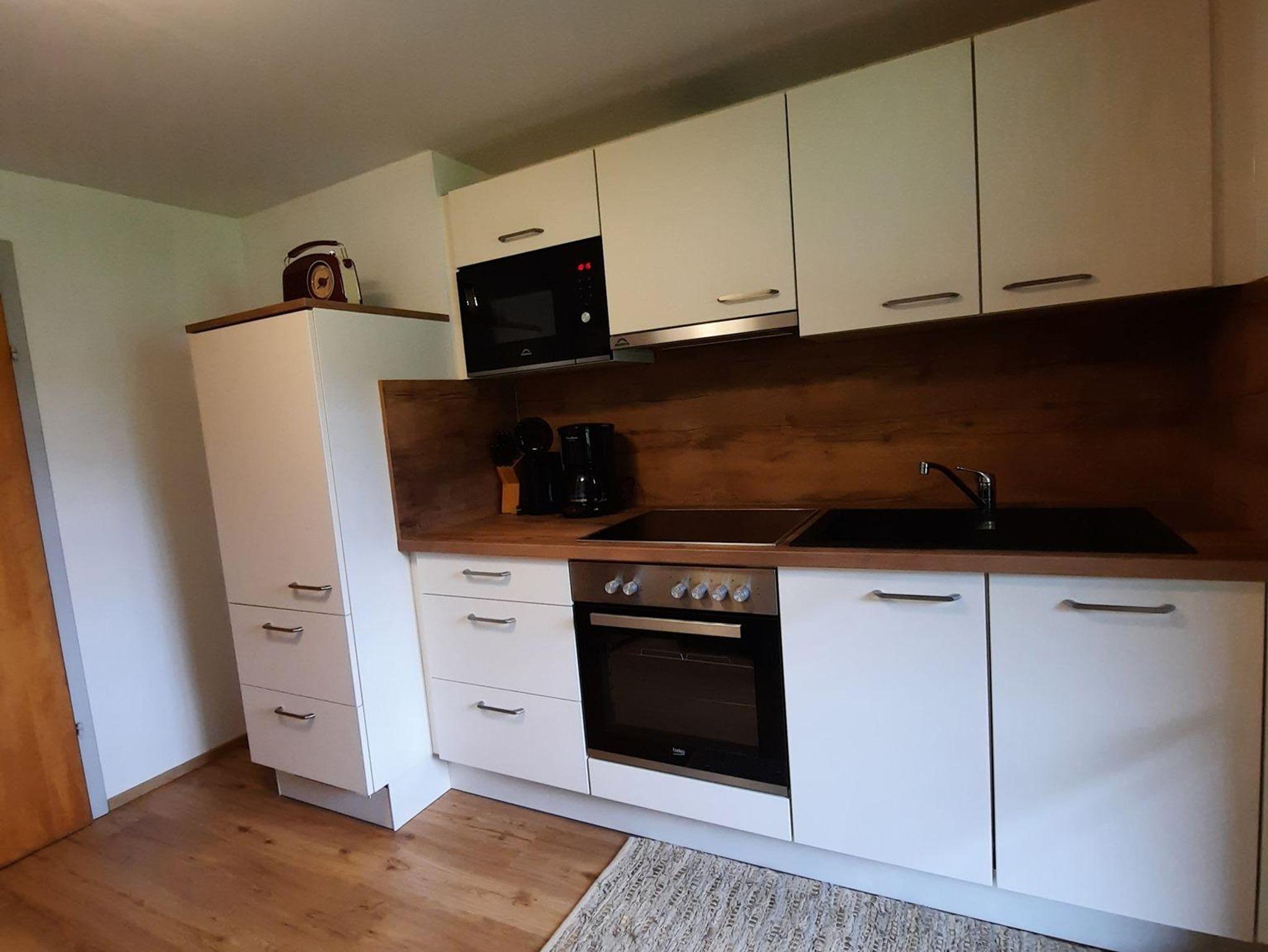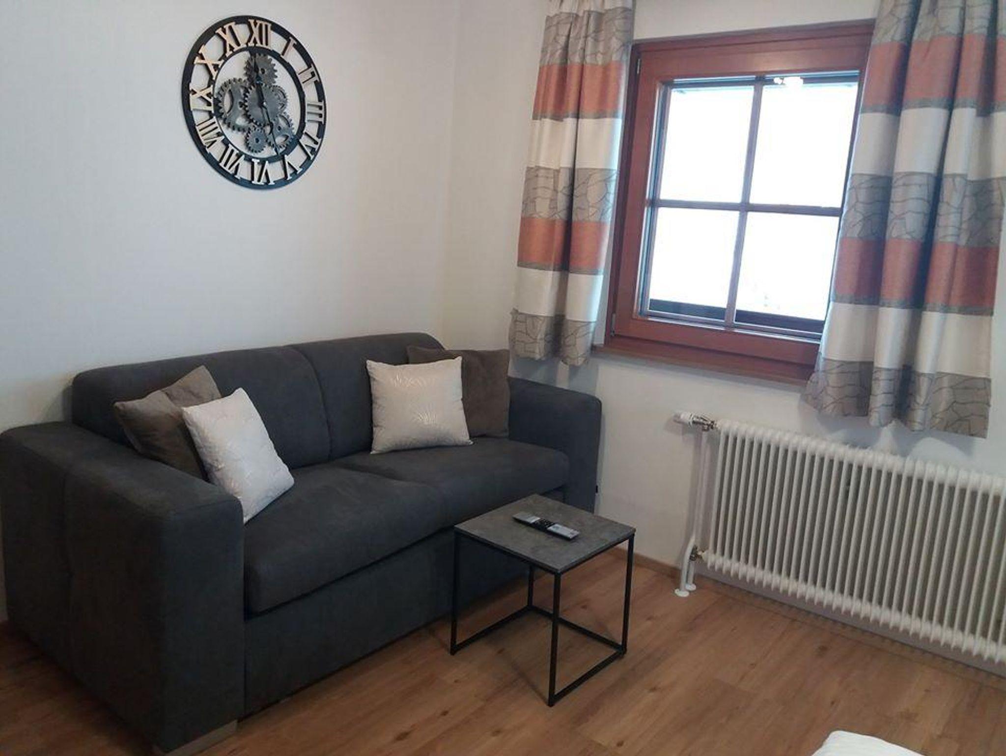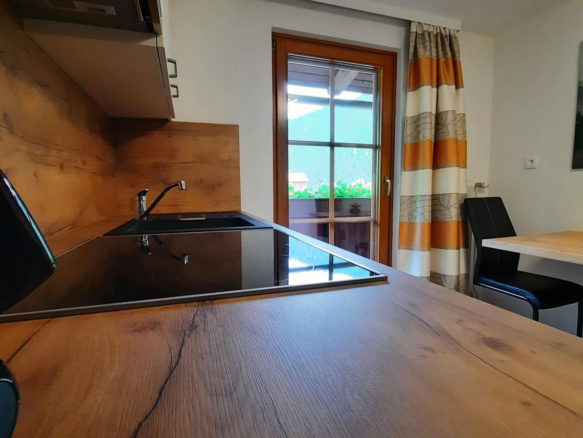 Apartment mit Wohnschlafraum, Doppelbett, Couch, Tisch mit Stühlen, SAT-TV , einer voll ausgestatteten Küche, DU/WC u. Balkon mit herrlicher Aussicht nach Matrei u. ins Virgental.
