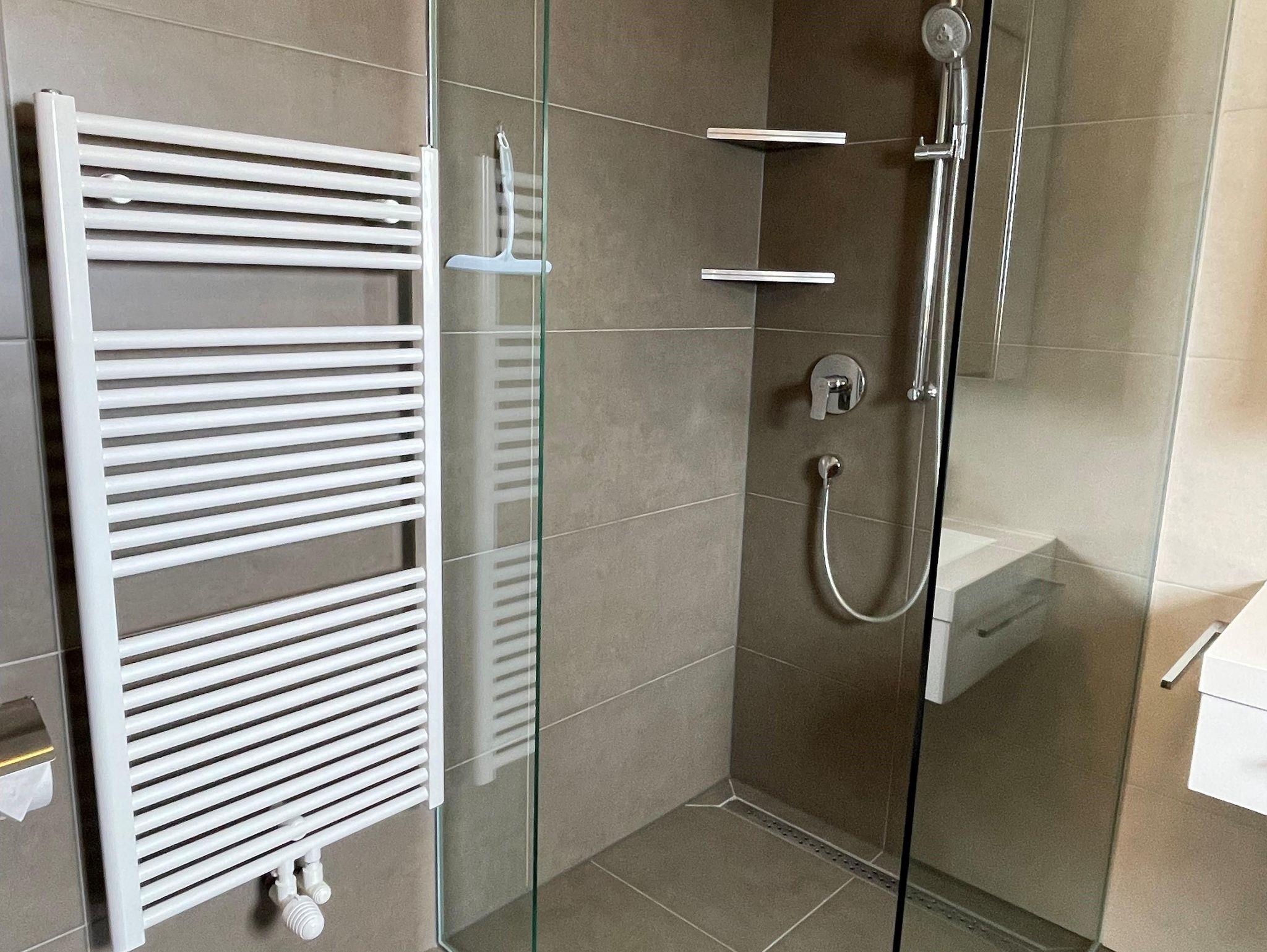 Beide sind mit einer modernen, komplett ausgestattet Küche und Sitzecke möbliert. Ein Flachbildschirm (Sat-TV), Radio, Gratis WLAN und ein Weinkühlschrank lassen Ihren Urlaub noch gemütlicher und erholsamer werden. Das WC befindet sich im Badezimmer plus einer bodengleichen Dusche, die das Bad komplimentiert. Alle Räume sind mit Fußbodenheizung verlegt. Private Parkplätze sind ausreichend vorhanden.