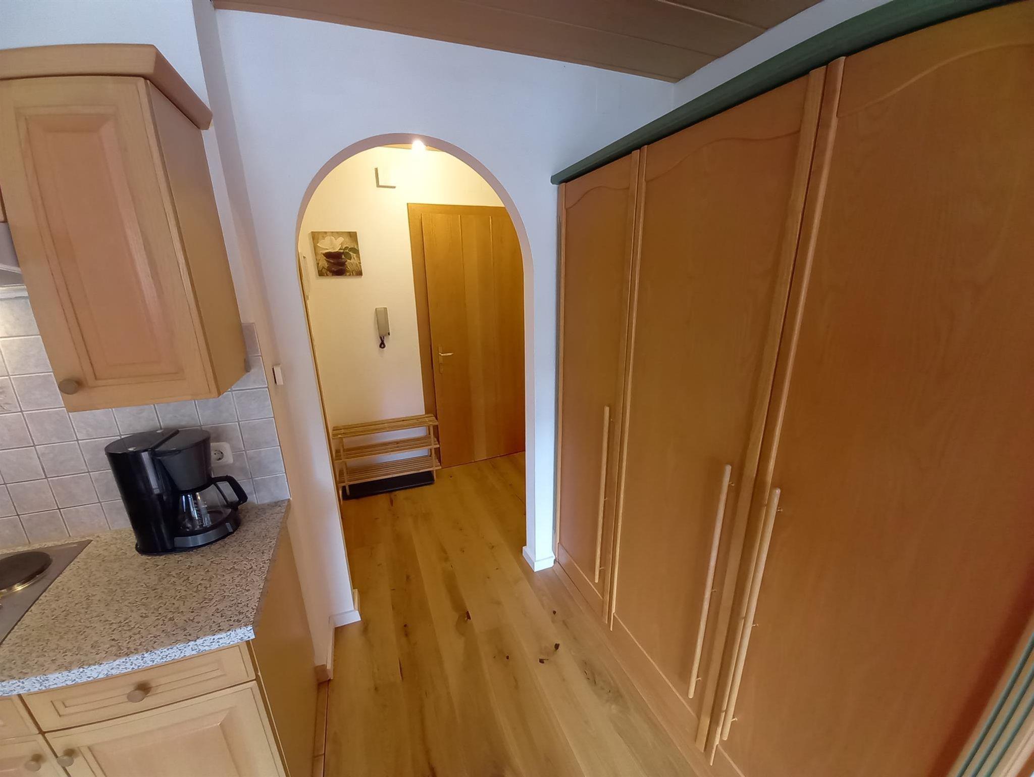Vorraum/Garderobe, DU/ WC, Wohn-Schlafraum, Doppelbett, Kochnische, Balkon mit Seeblick und ins Karwendelgebirge.