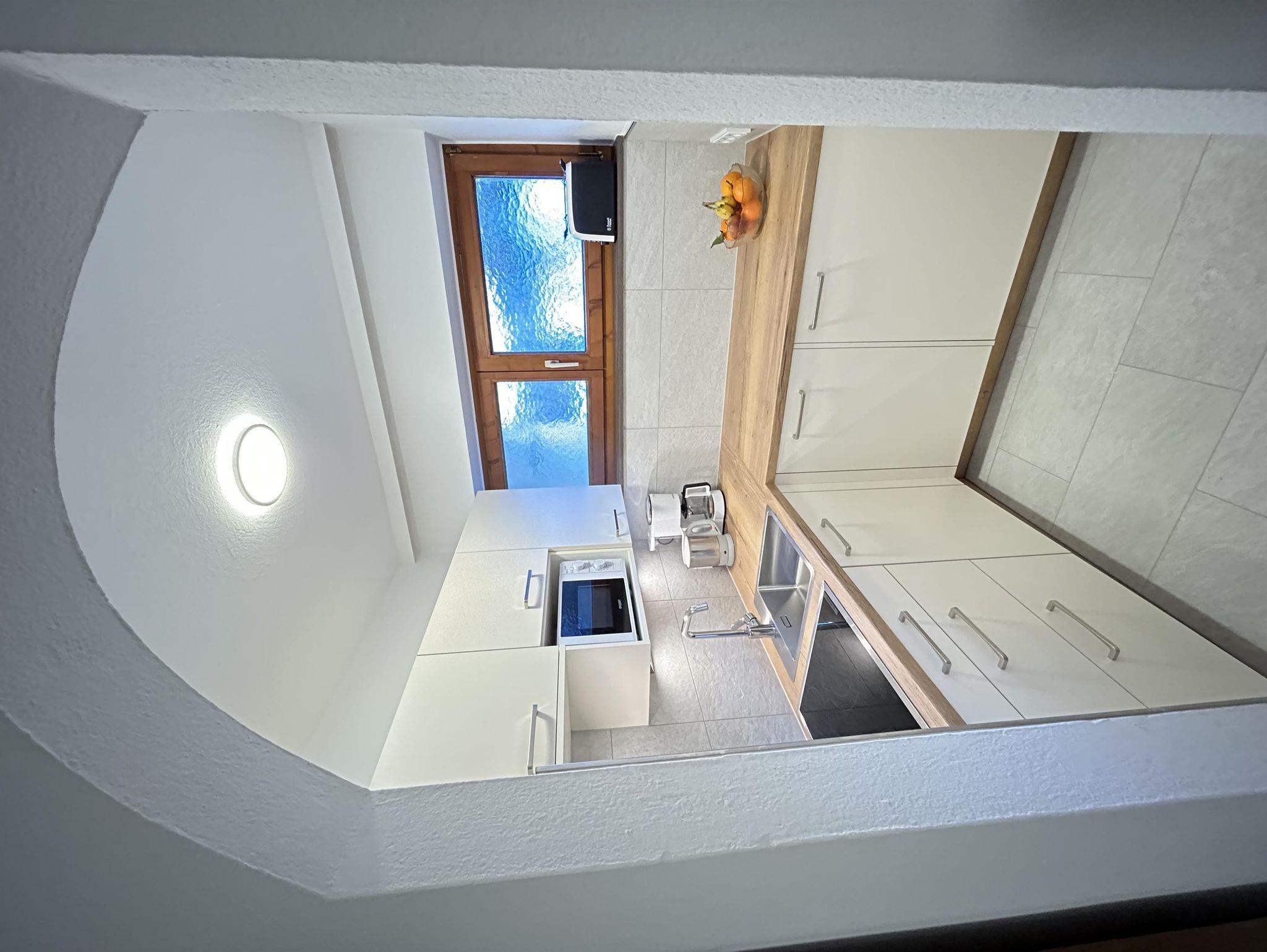 Wohnschlafzimmer mit Doppelcouch, gepolsterter Eßecke und Bauernkomode. Zweibettzimmer mit 2 Fauteuils und Tischchen, Wandvertäfelung. Große Schiebetüre zum Liegebalkon bzw. zur Gartenterasse. Vorraum mit Schrank. Frisch renoviertes Badezimmer mit Dusche, Waschbecken, WC und Heizstrahler. Seperate Küche mit 3-Platten-Herd, Dunstabzug, kompl. Geschirr, Kühlschrank, Geschirrspülmaschine, Mikrowellenherd, Kaffeemaschine. Farb-TV, Safe, Internetanschluss.
